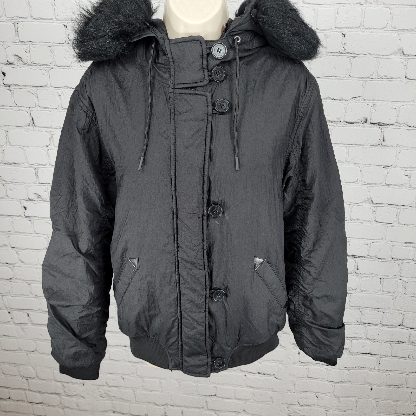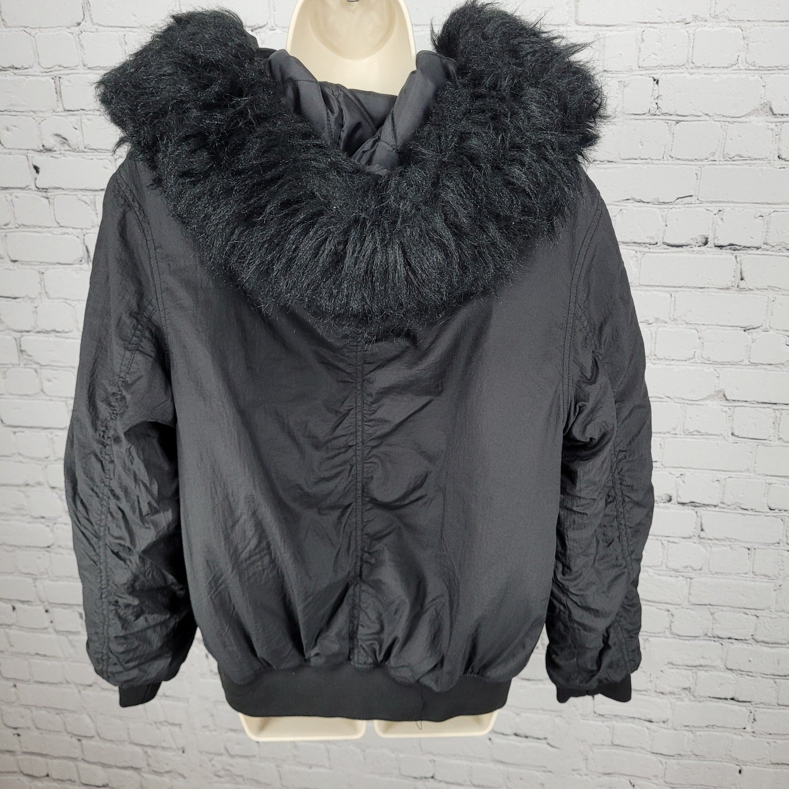 Urban Outfitters Black Hooded Removable Fur Insulated Lightweight Jacket Size XS