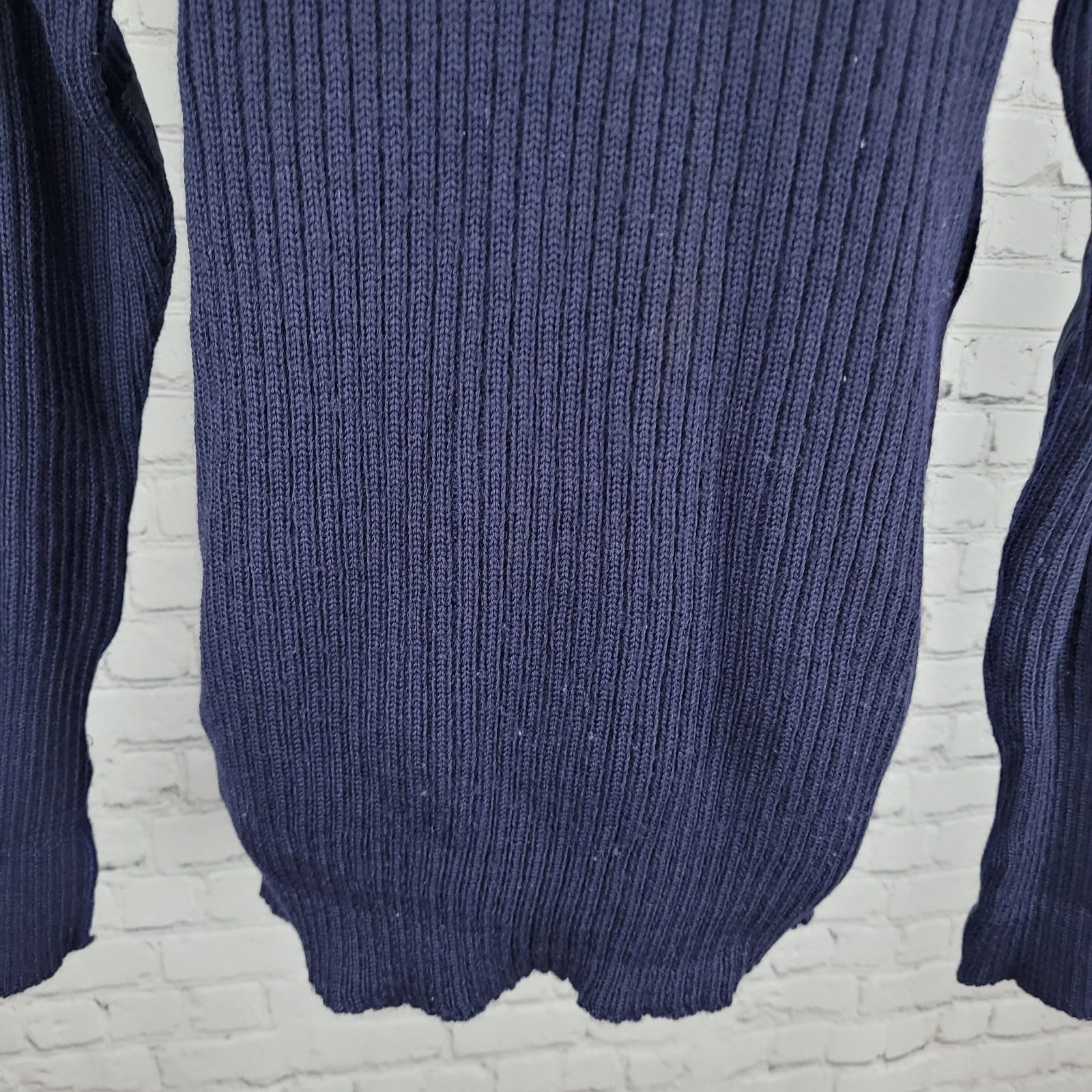 The USMC Marine Corp Navy 100% Wool Jersey Heavy Patches Pullover Sweater in size 5 is a stylish and patriotic piece of clothing for men. Made from high-quality wool in a classic blue color, this sweater features a pullover style with patches. The sweater is designed to provide both comfort and warmth, making it a practical and fashionable choice for any Marine enthusiast or collector. Perfect for cooler weather, this sweater is a must-have for those who appreciate military tradition and quality craftsmanship.