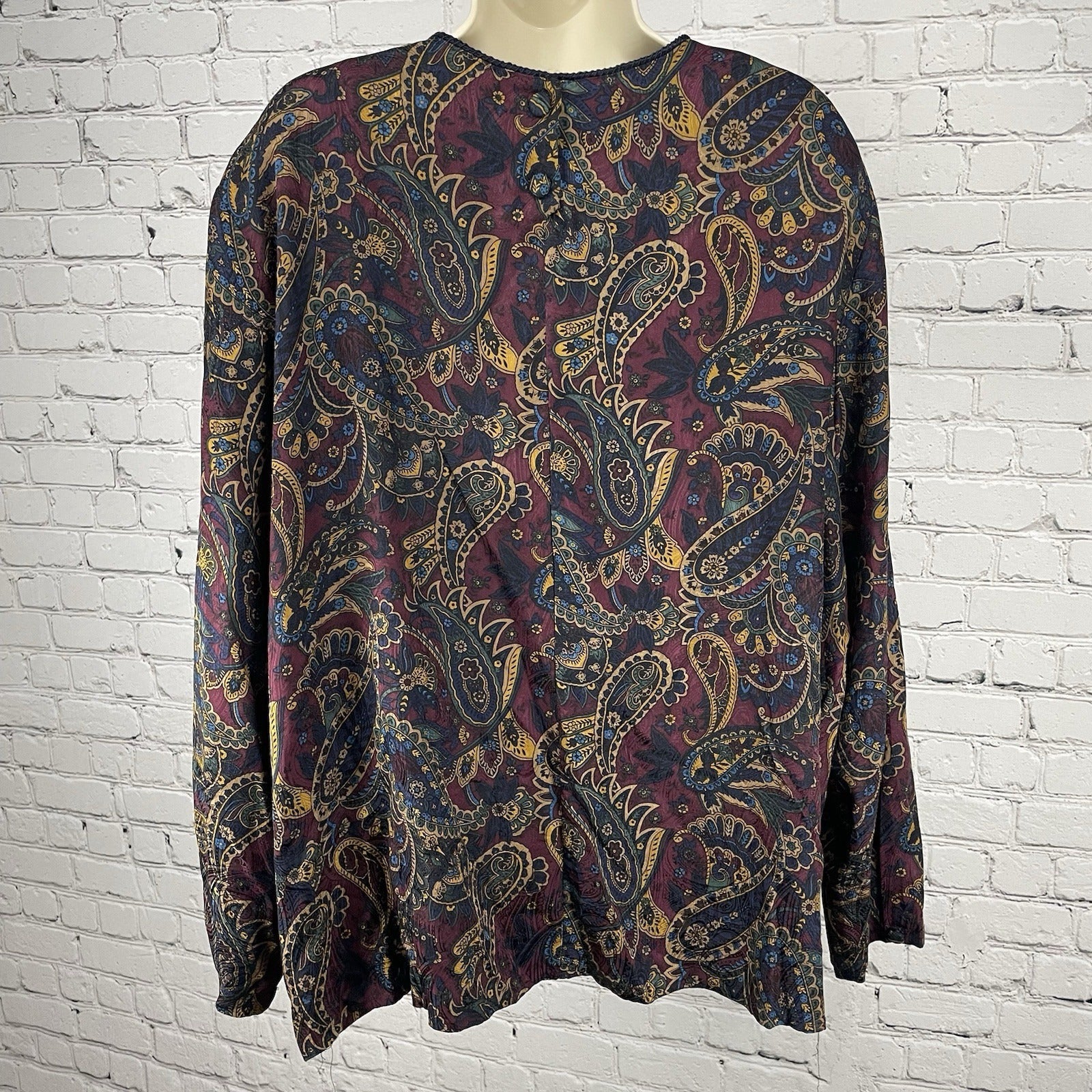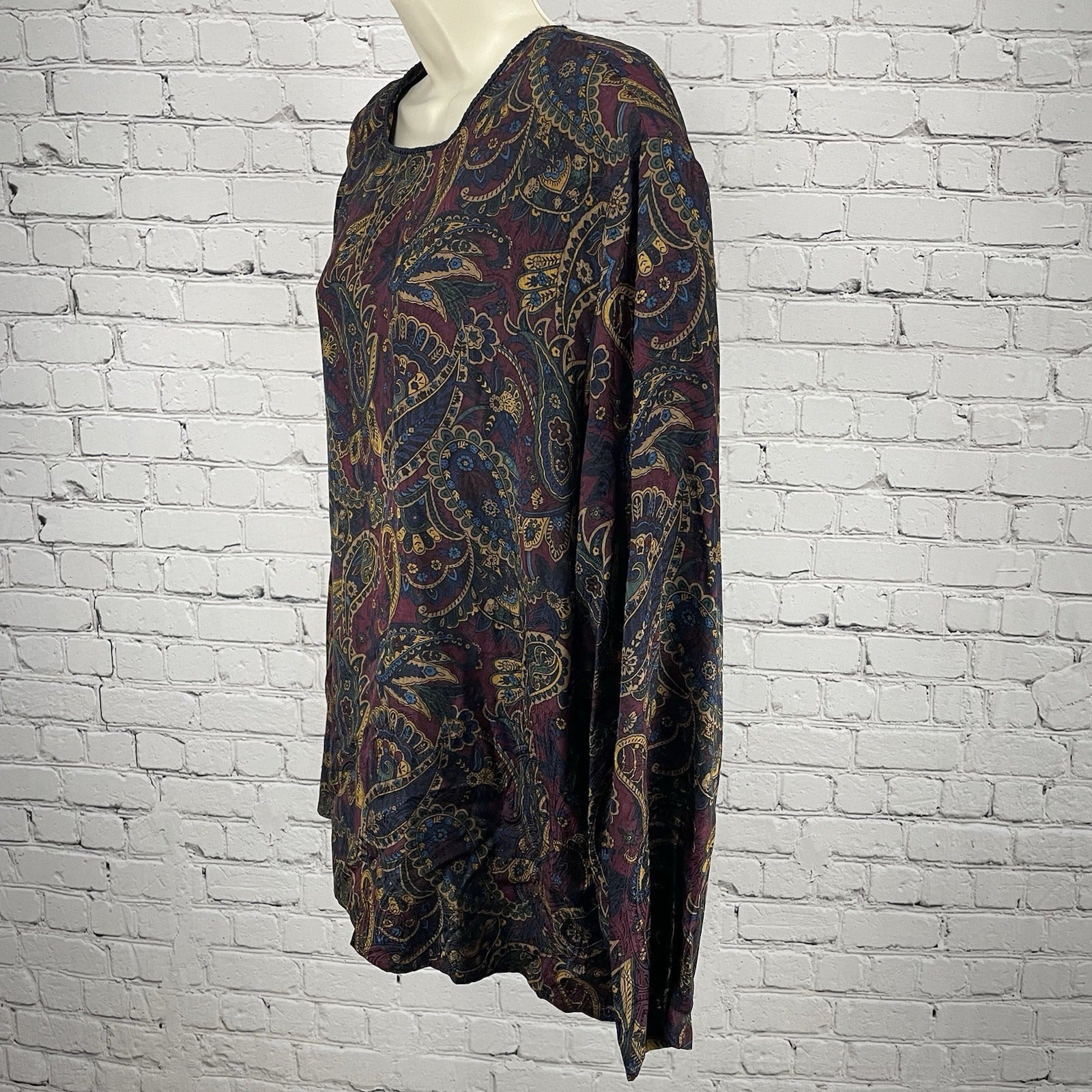 Valerie Stevens Paisley 100% Silk Lightweight Long Sleeve Tunic Blouse Size 24