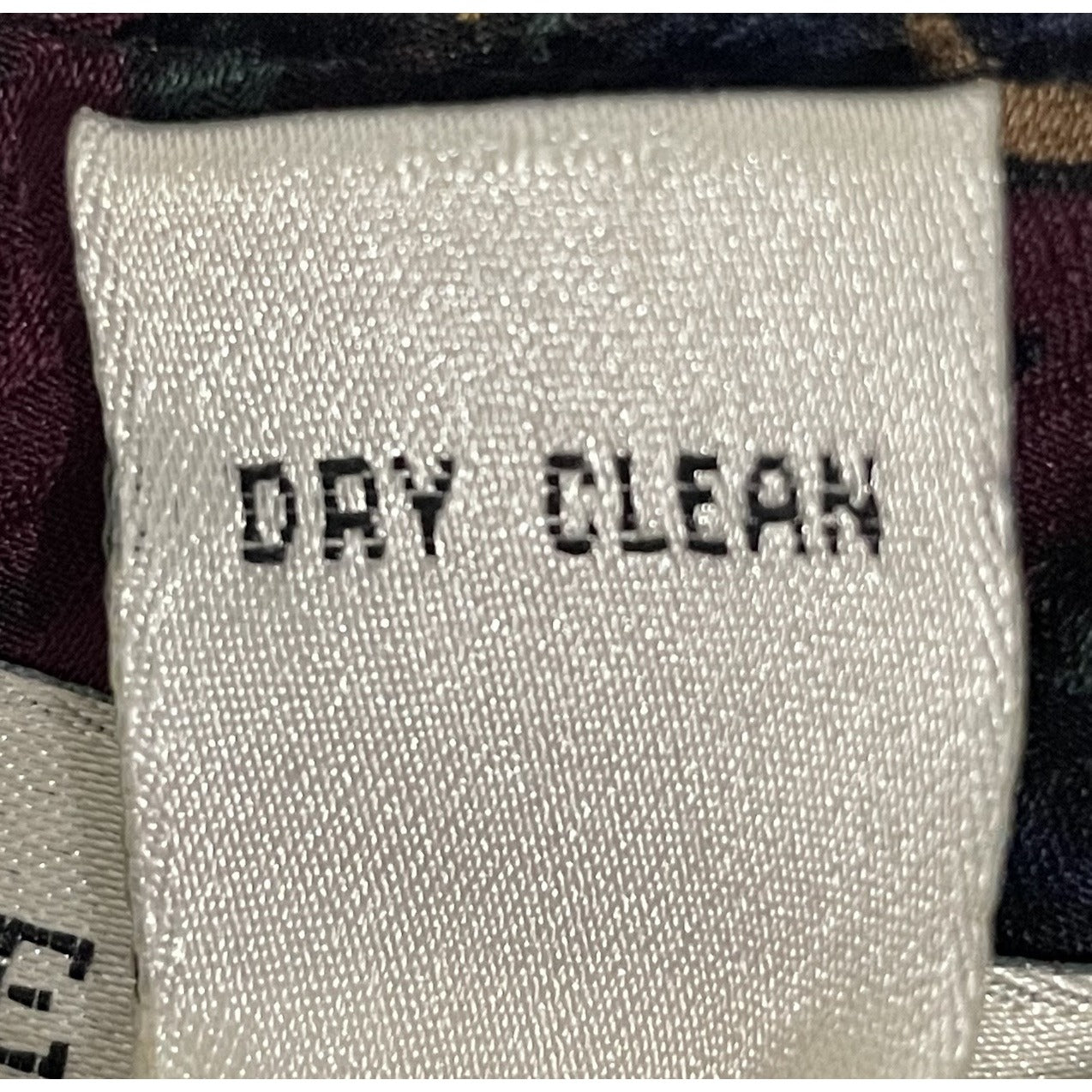 This Valerie Stevens tunic blouse is crafted from 100% silk, featuring a stylish paisley pattern in multicolor. The blouse has long dolman sleeves and a round neckline with a button closure. Designed in a size 24 for plus-size women, it is lightweight, breathable, and unlined, making it suitable for various occasions including travel, parties, casual outings, and workwear. The garment care instructions recommend dry cleaning only, showcasing its luxurious quality and intricate design.