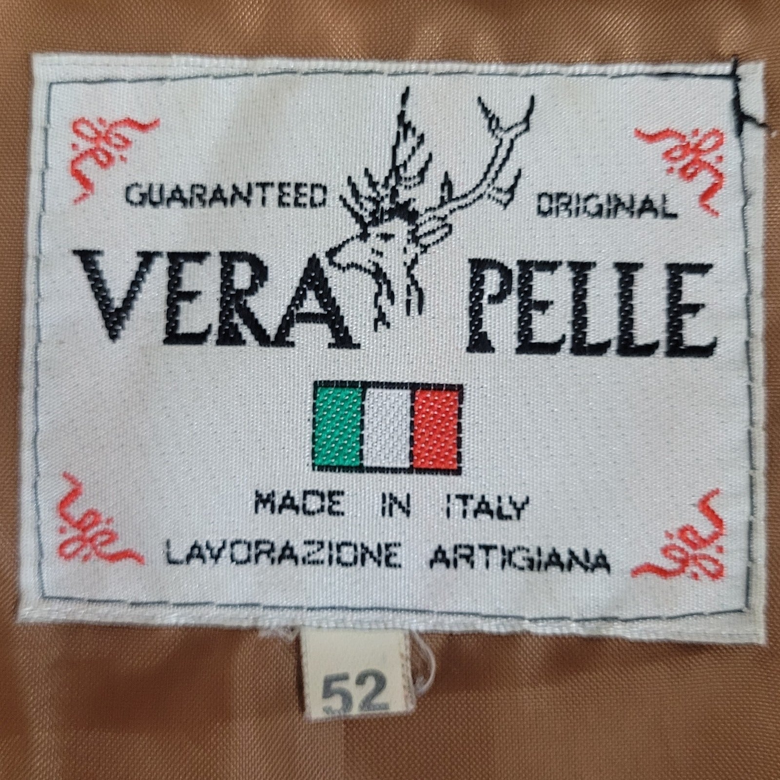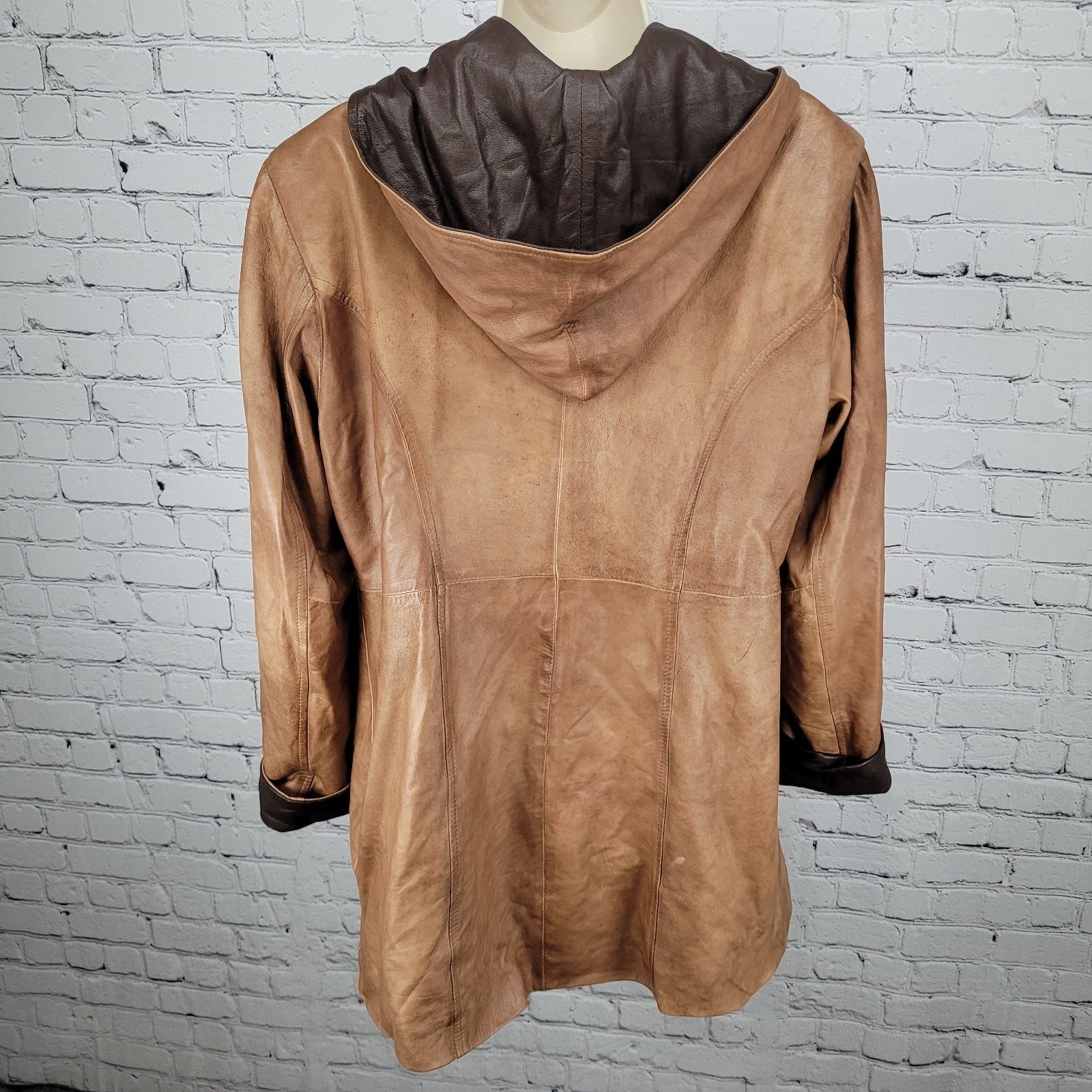 Vera Pelle Brown Soft Leather Removable Hood Zip Jacket Italy Made Size 52