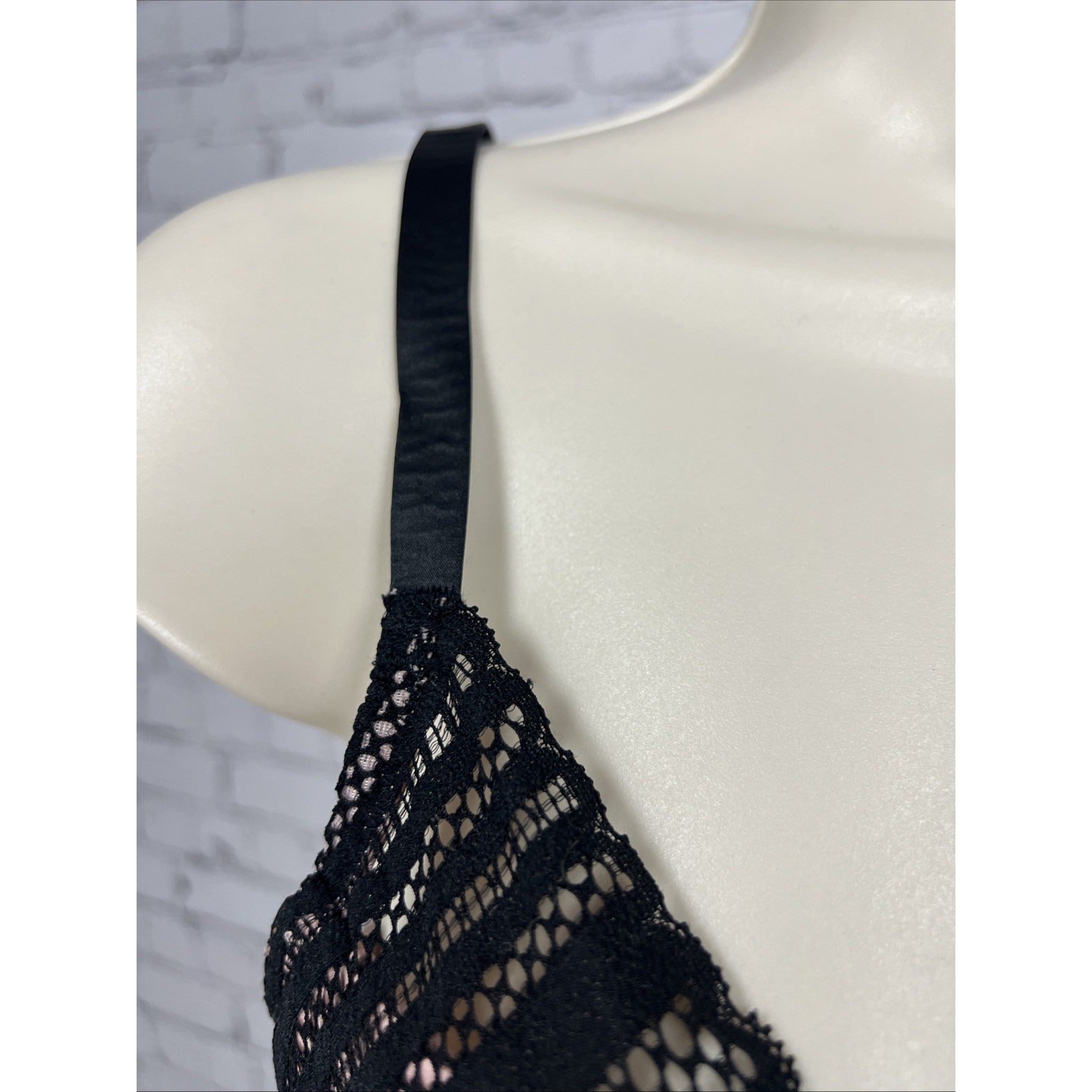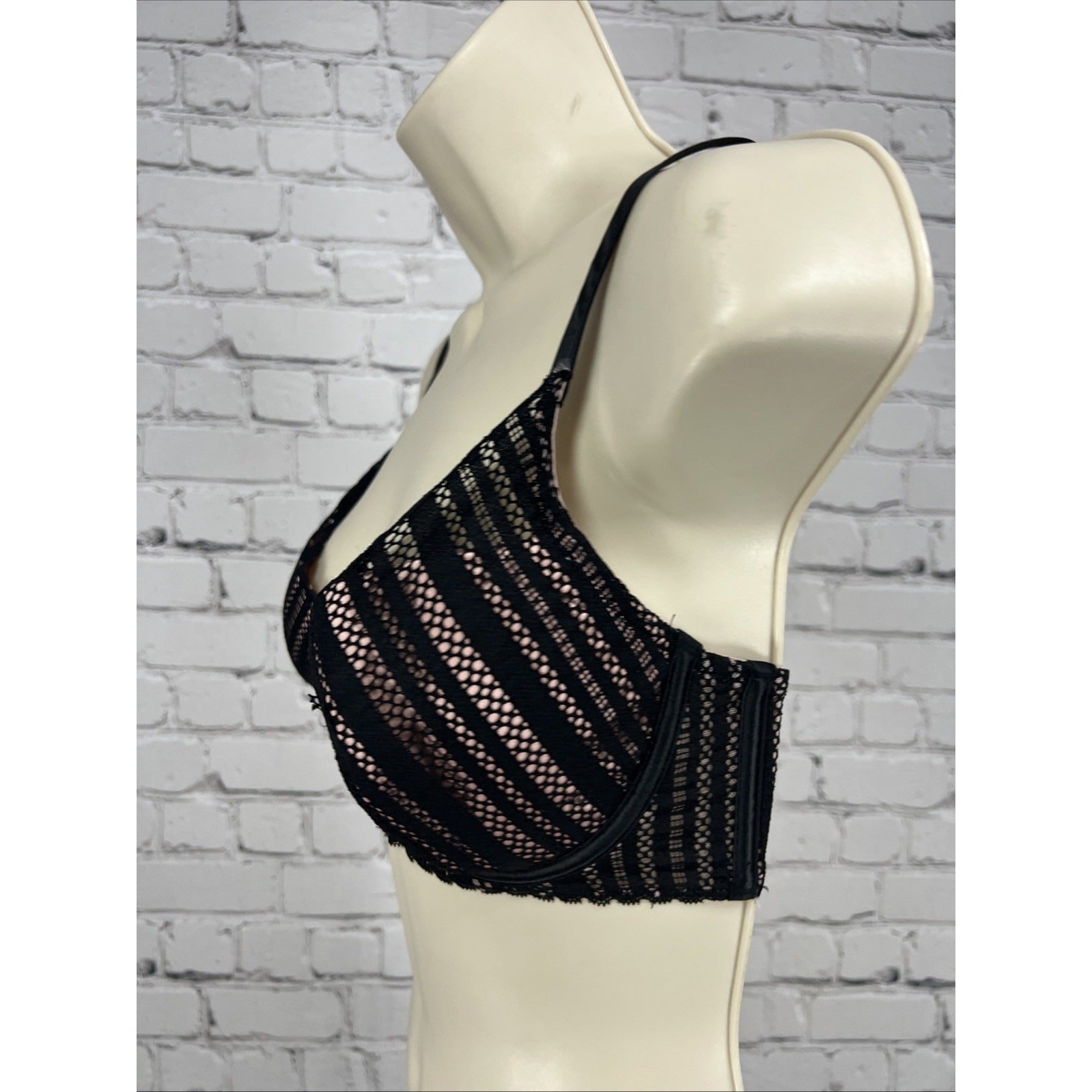 Victoria’s Secret Black Pink Mesh Opaque Light Lined Plunge Balconette Bra 32DD