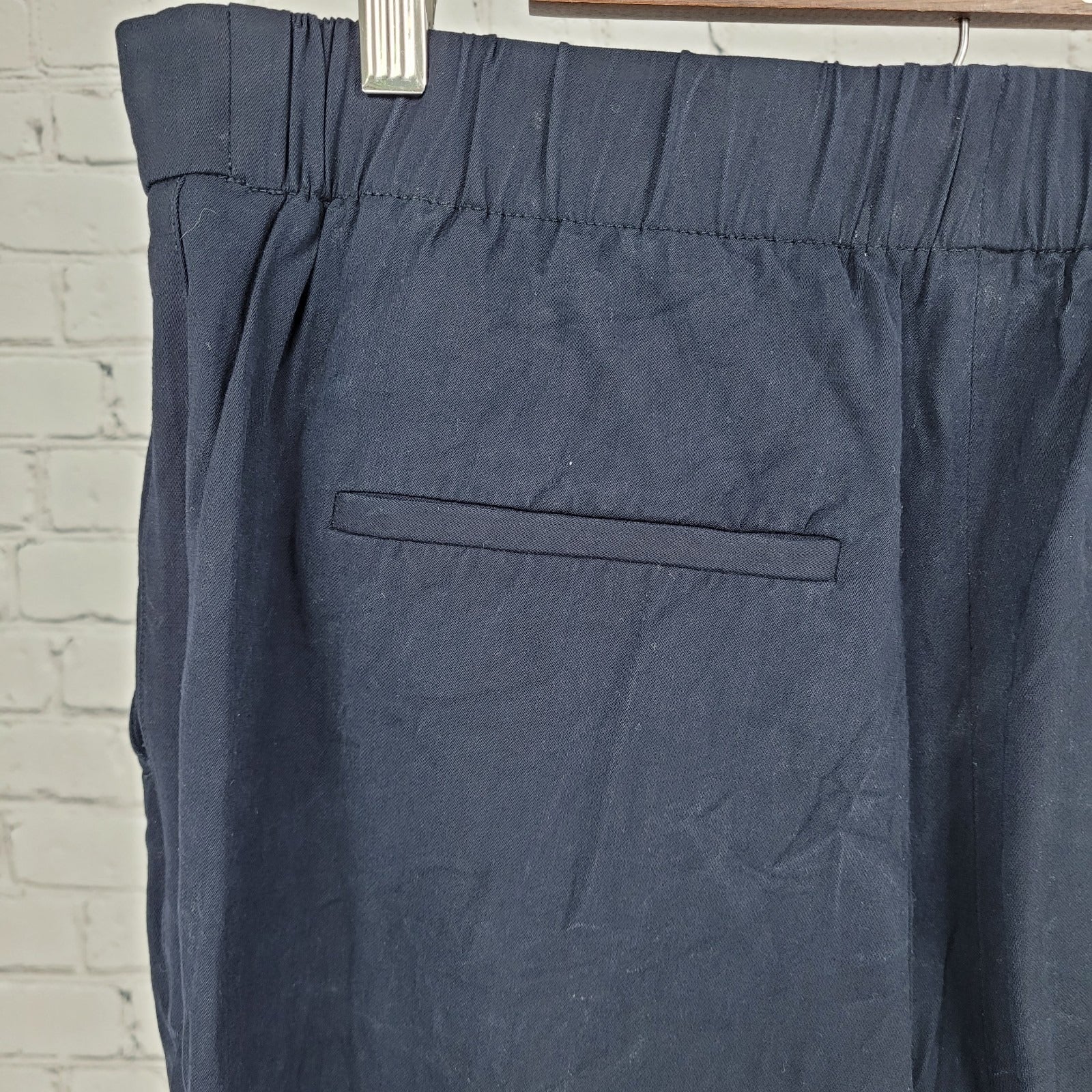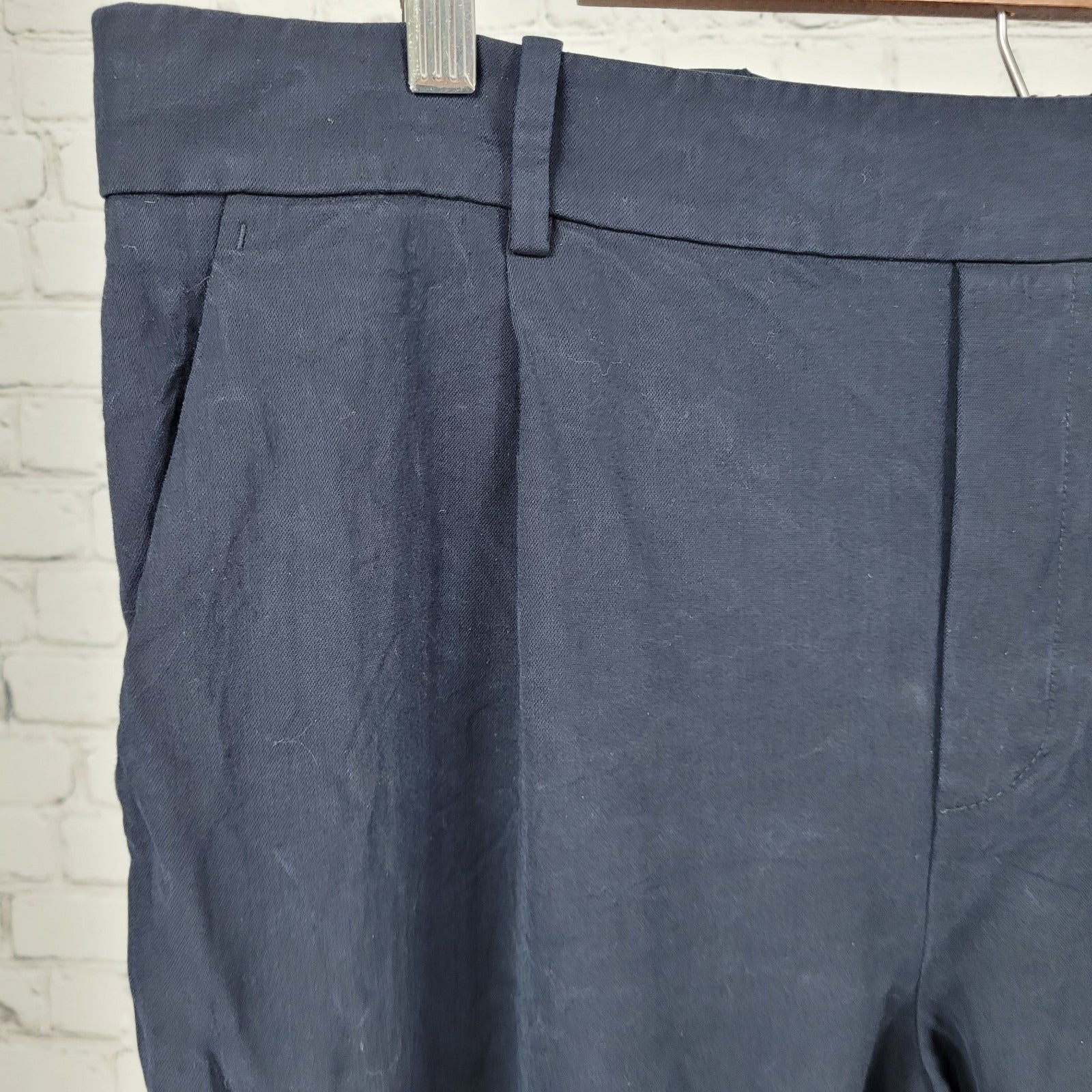 Vince Dark Blue Pleated Elastic Waist Pull On Stretch Crop Pants Size XL (35x25)