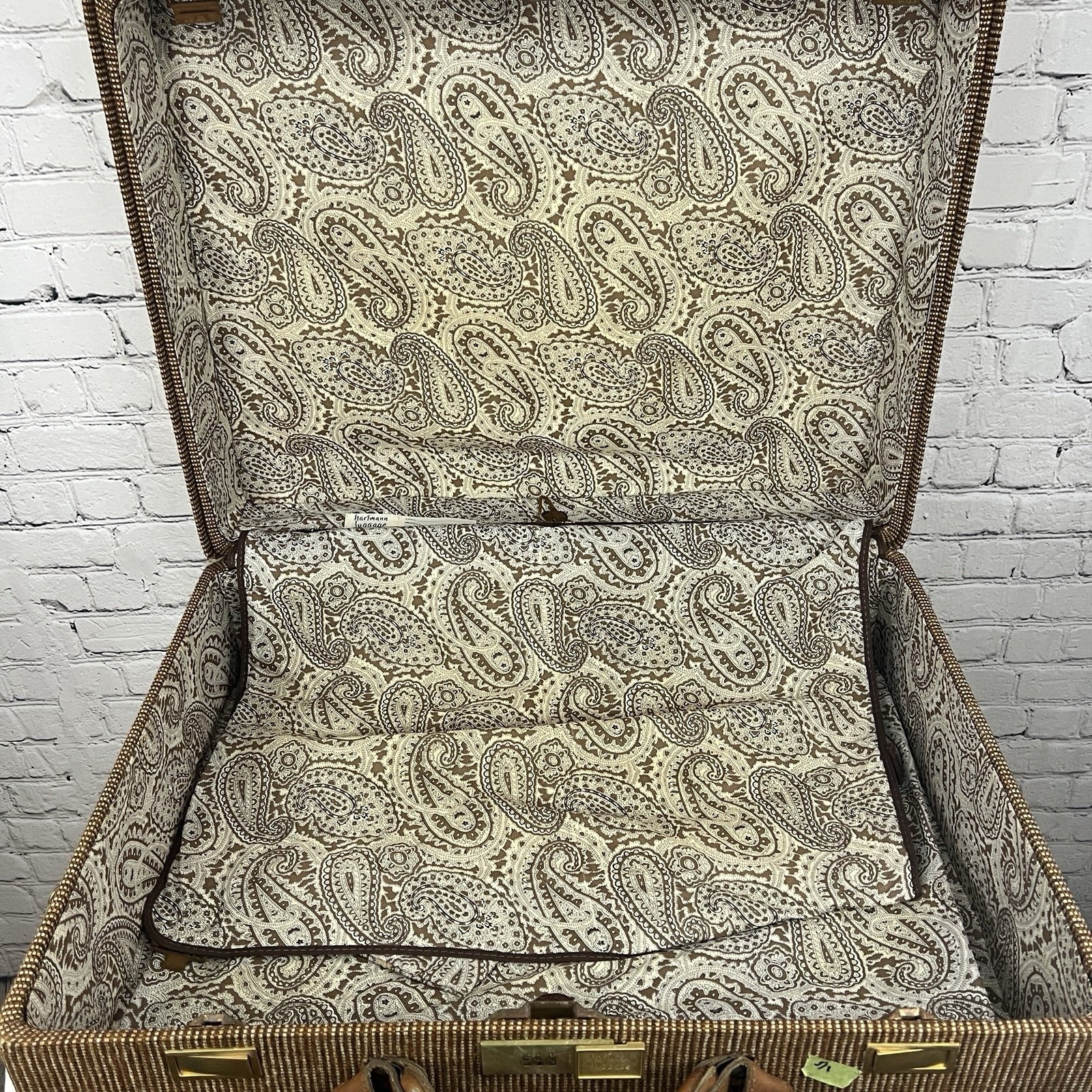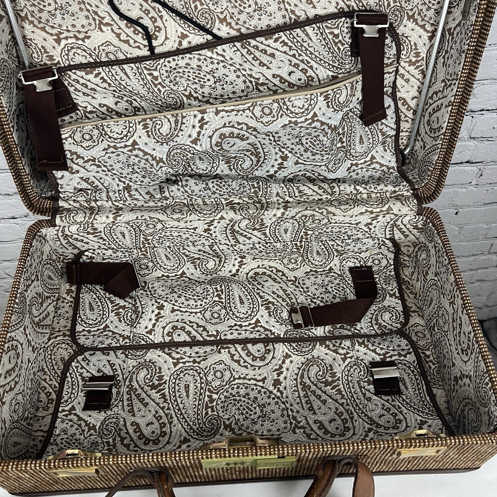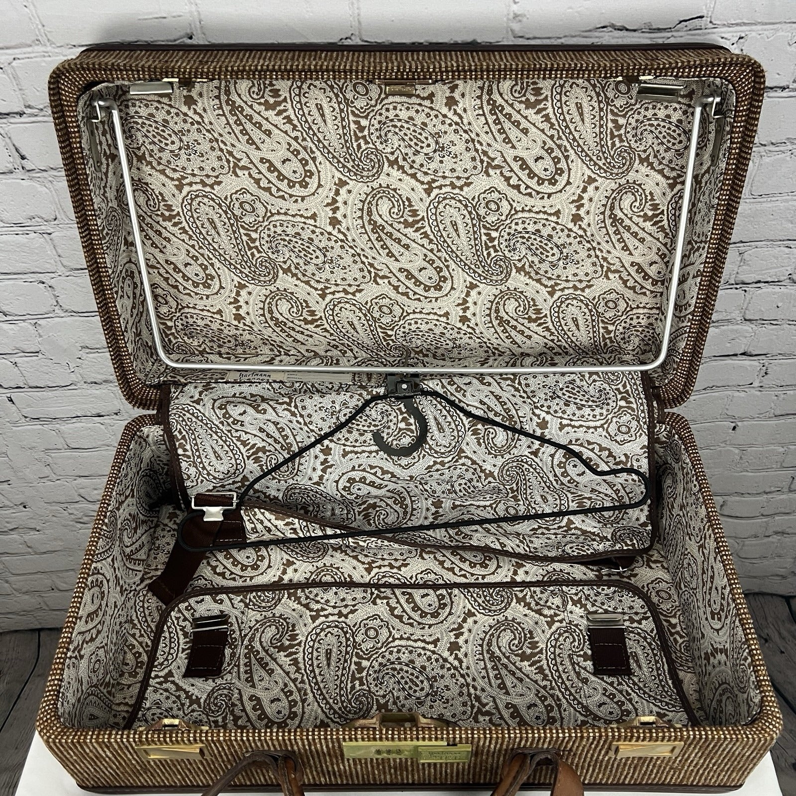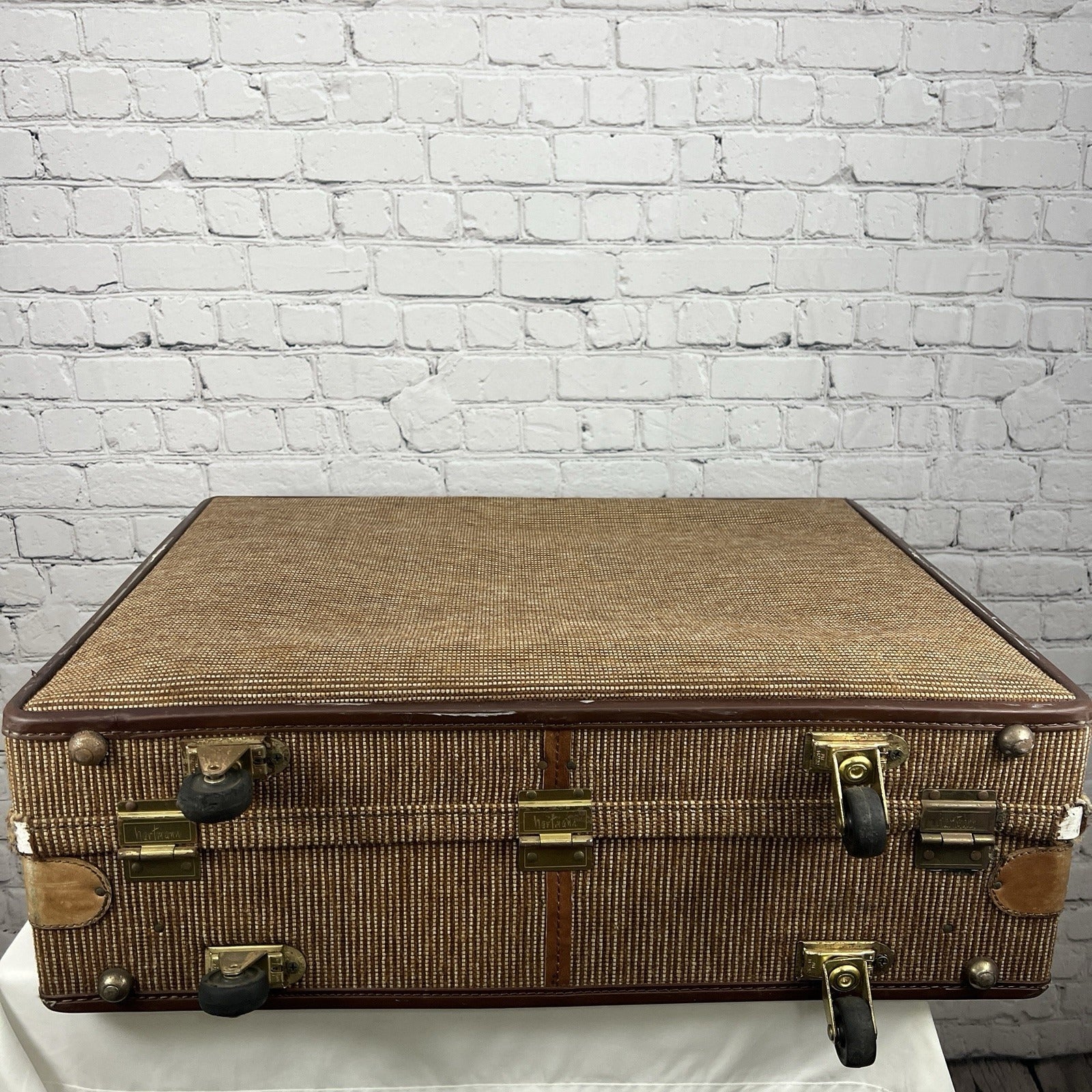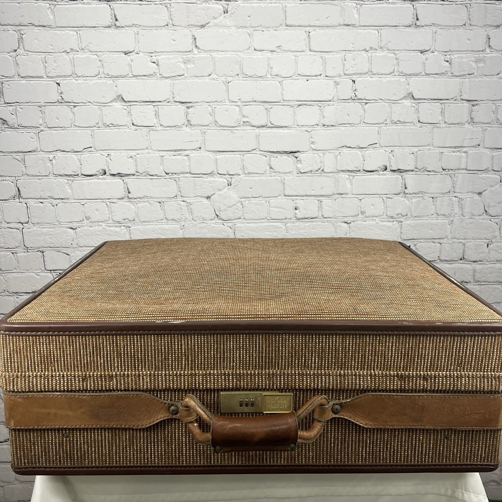 This Vintage Hartmann Brown 2 Piece Suitcase Leather Tweed Wheeled Luggage Combo is a classic set of luggage from the 1980s, featuring a tweed design in a timeless brown color. With its true vintage appeal and heavy-duty construction, this set includes extra compartments for organization and a secure lock for peace of mind. The spinner wheels make it easy to maneuver, while the soft casing adds a touch of luxury to your travel experience. Perfect for vintage travel enthusiasts looking for style and functionality.