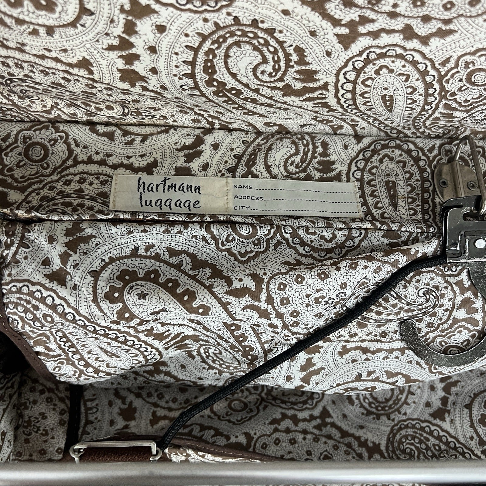 Vintage Hartmann Brown 2 Piece Suitcase Leather Tweed Wheeled Luggage Combo Lock