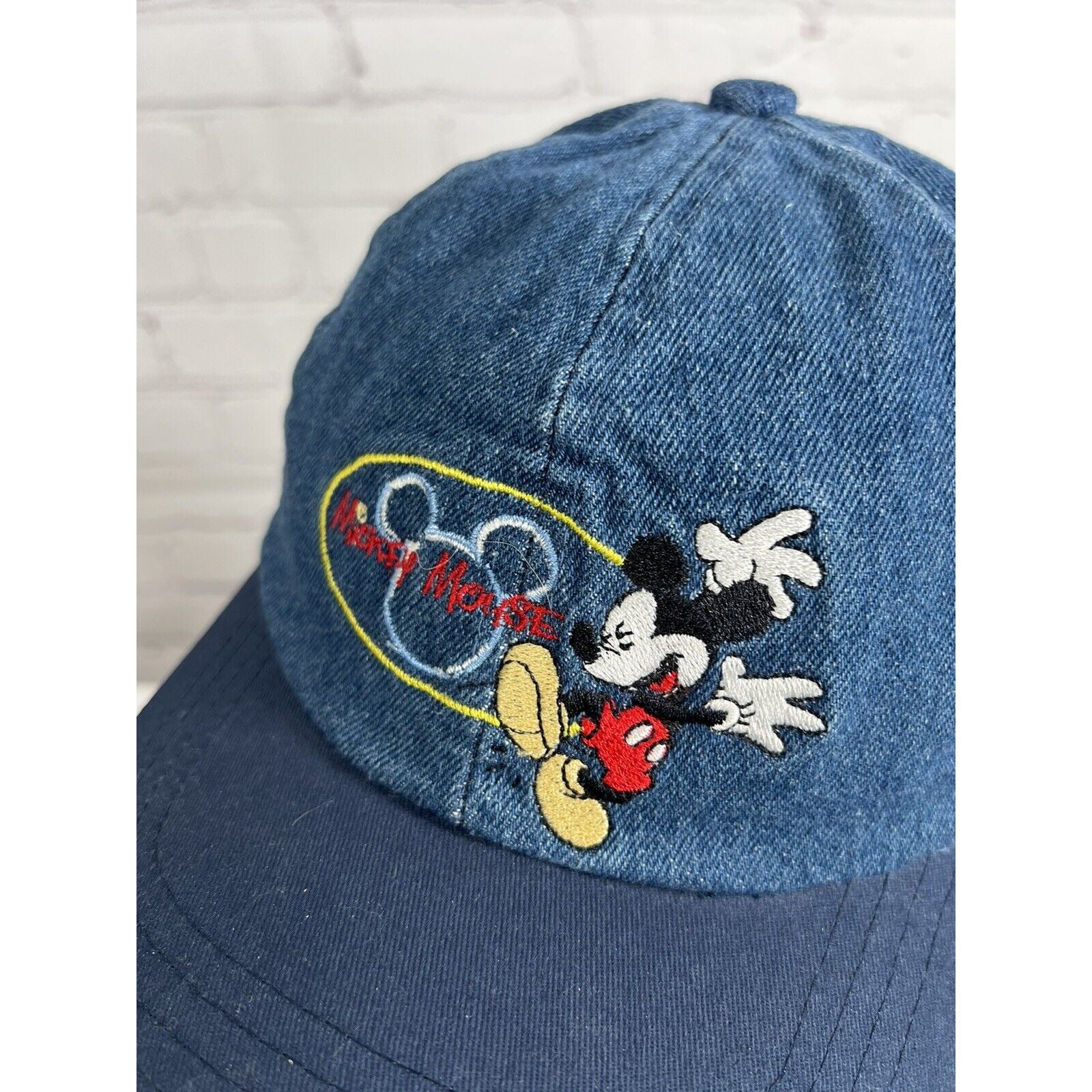 Get your hands on this vintage Mickey Mouse Unlimited denim hat cap, perfect for any Disney fan! The hat features a stretchy band for a comfortable fit and is suitable for both men and women. The blue denim color and classic Mickey Mouse design make it a great addition to any Disneyana collection.