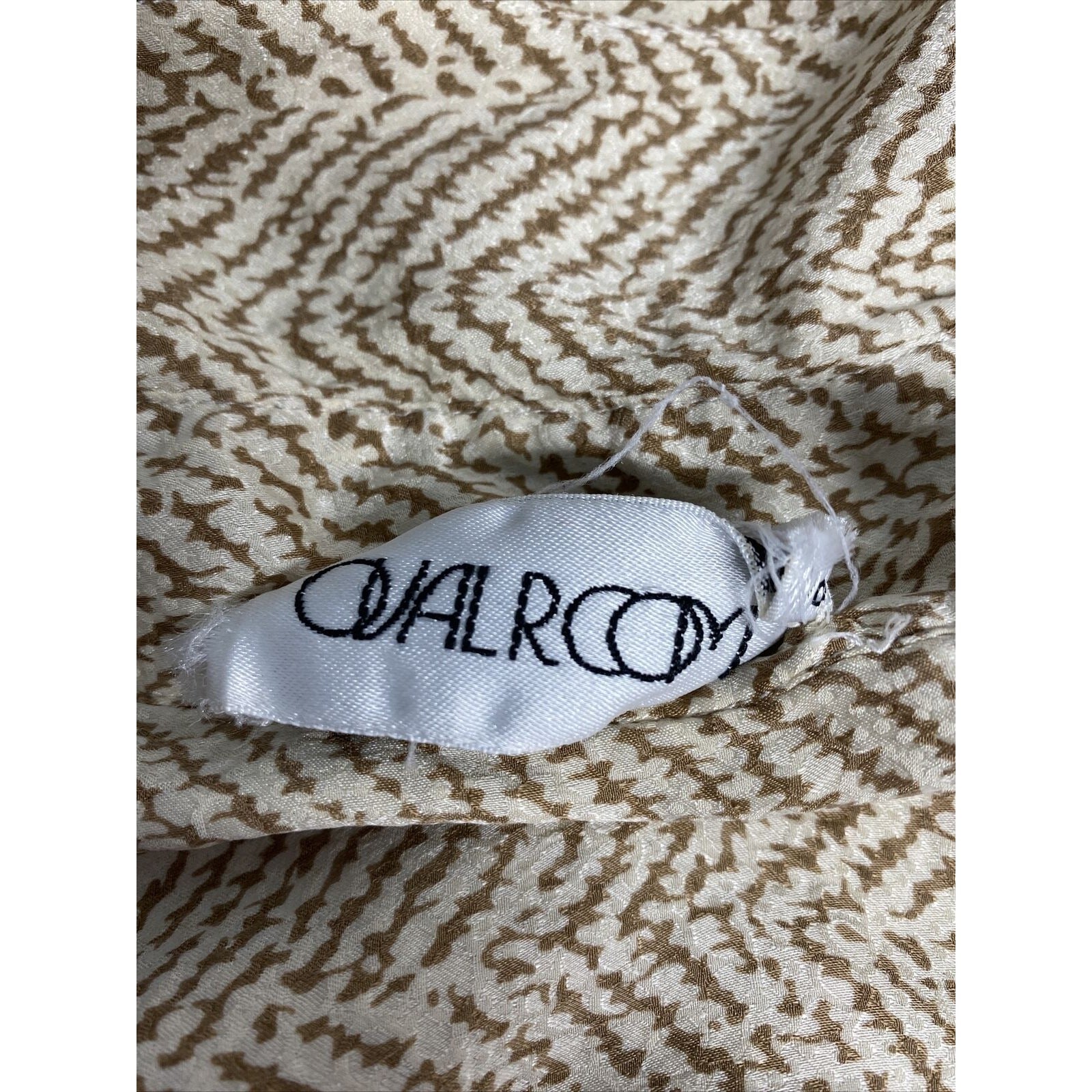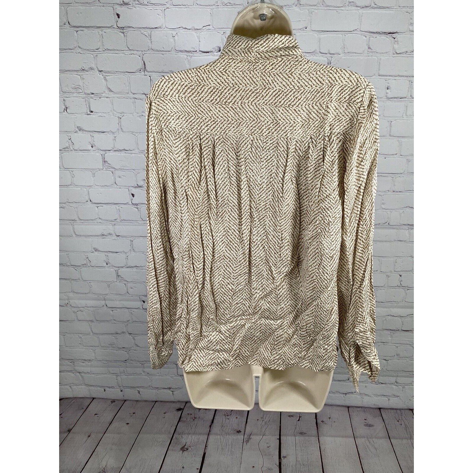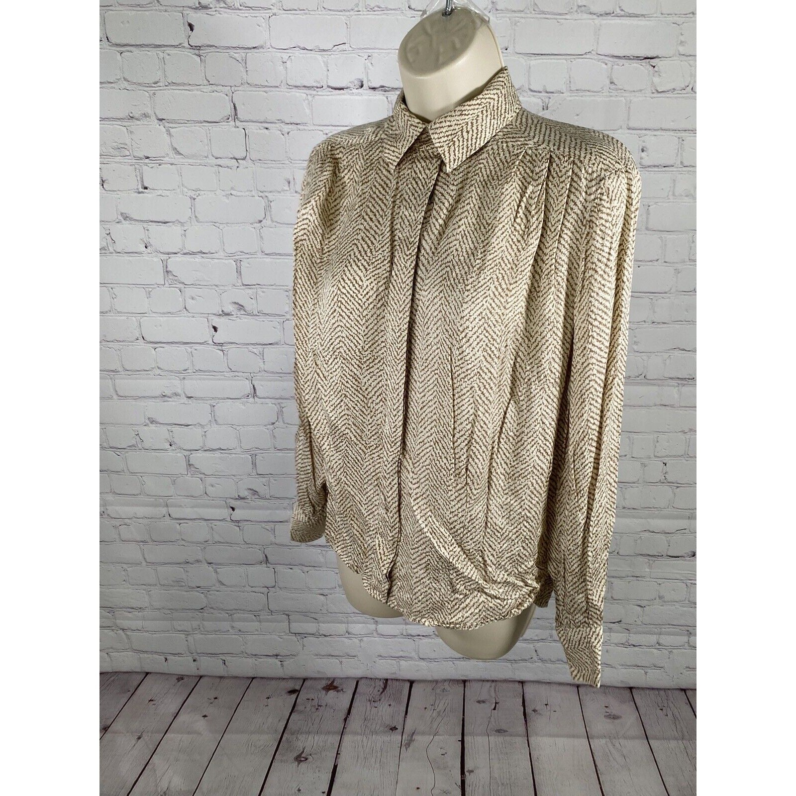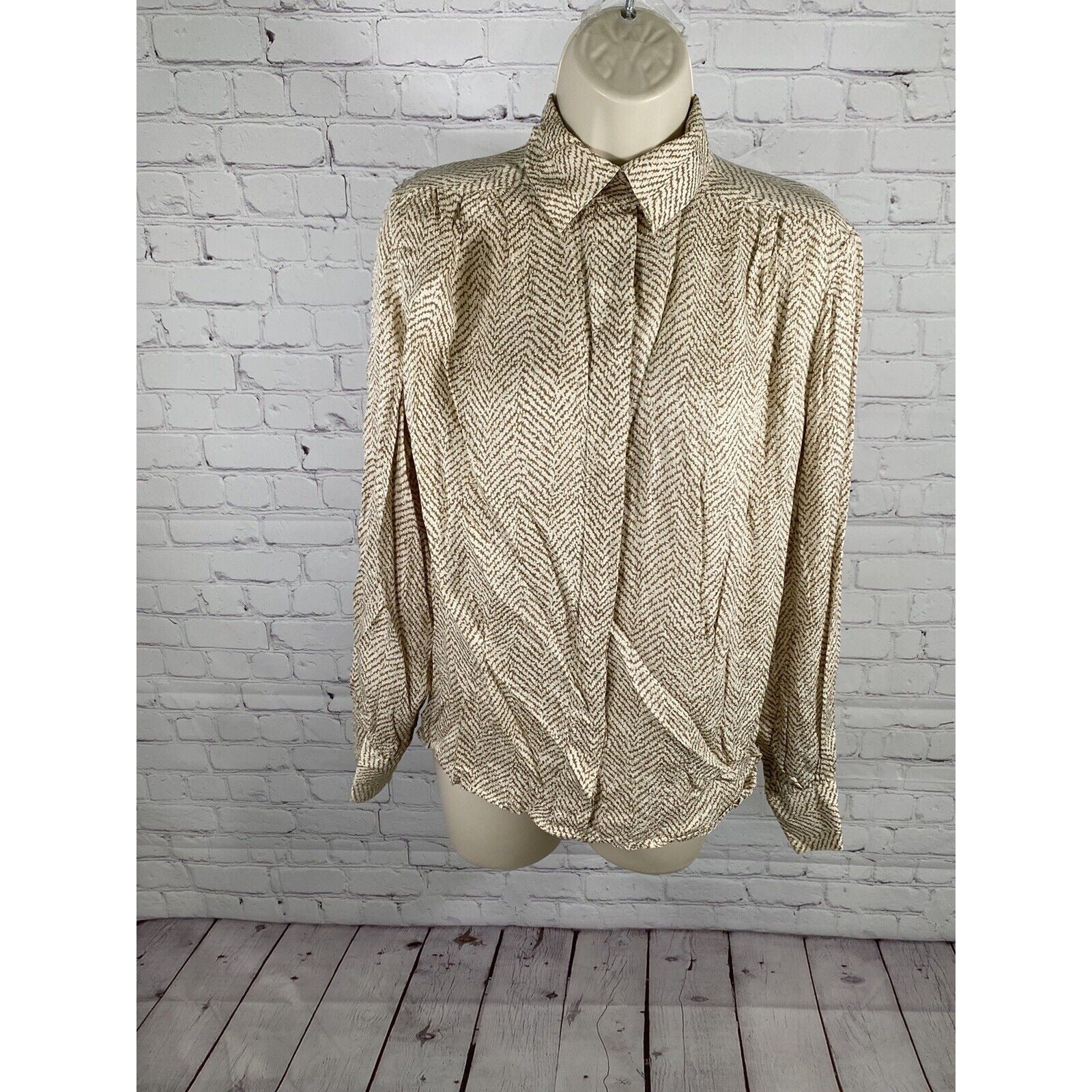 Vintage Oval Room All Silk Brown White Long Sleeve Button Up High Neck Shirt 10