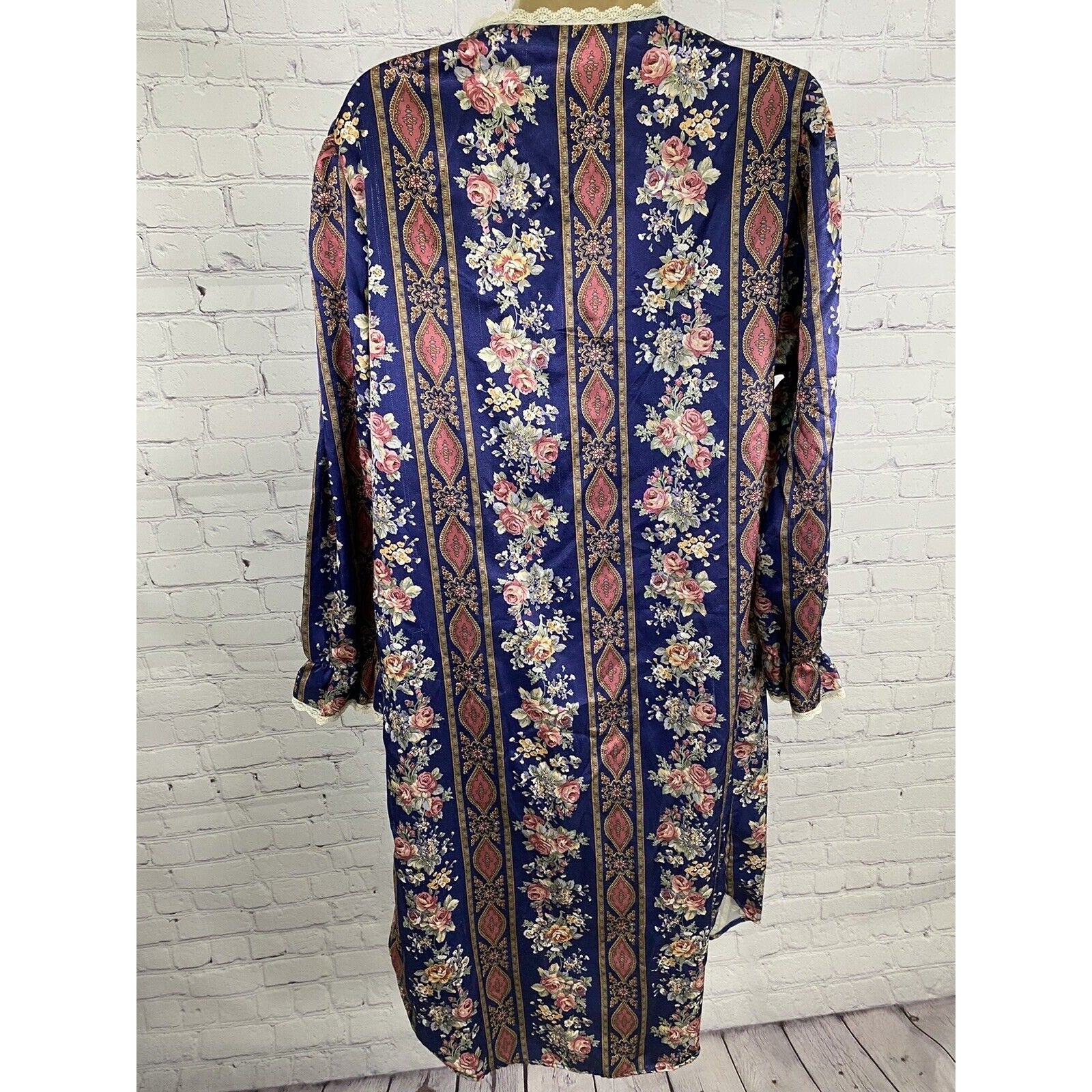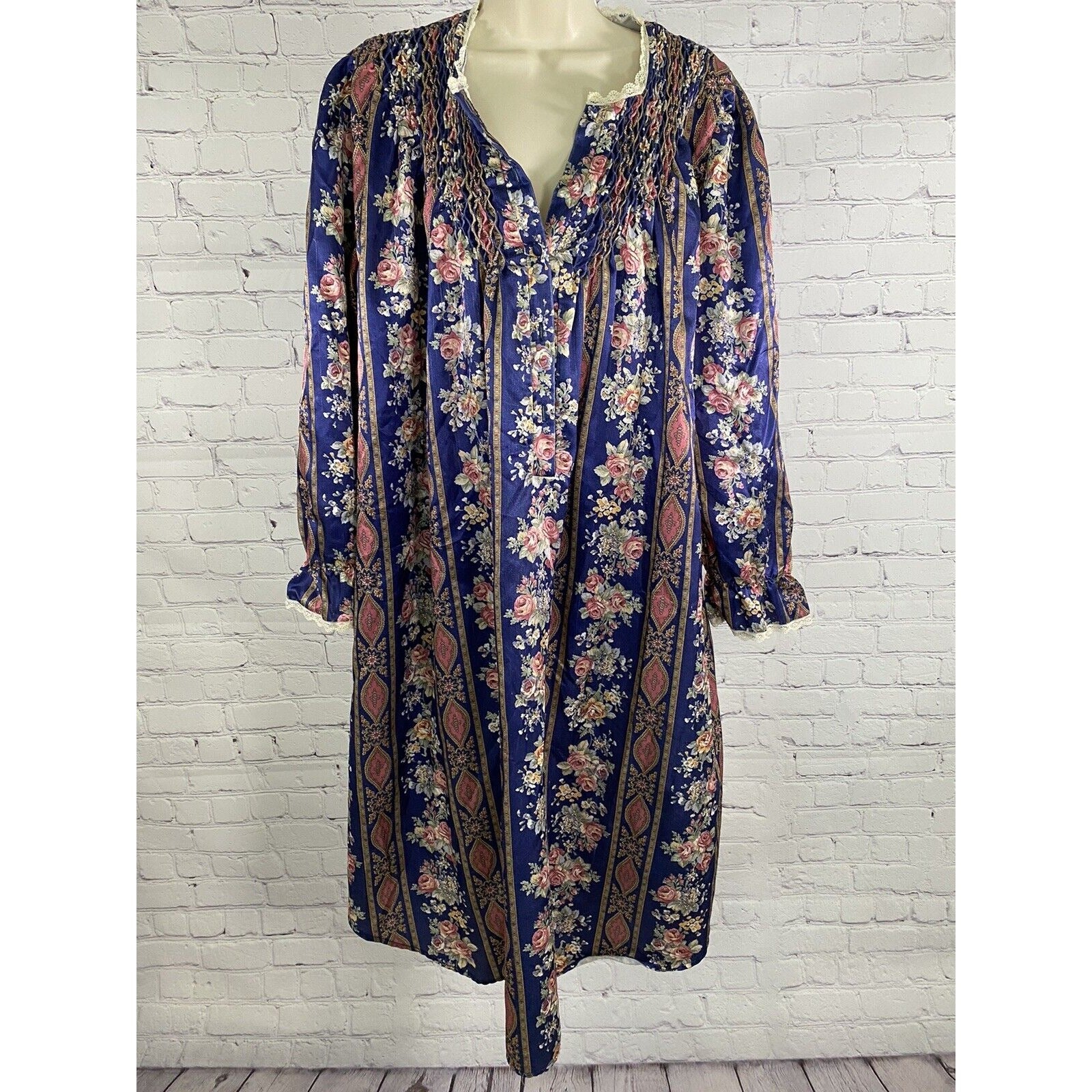 Vintage Romantic Moods Floral Long Ruffle Sleeve Lace Accent Sleep Dress S Small