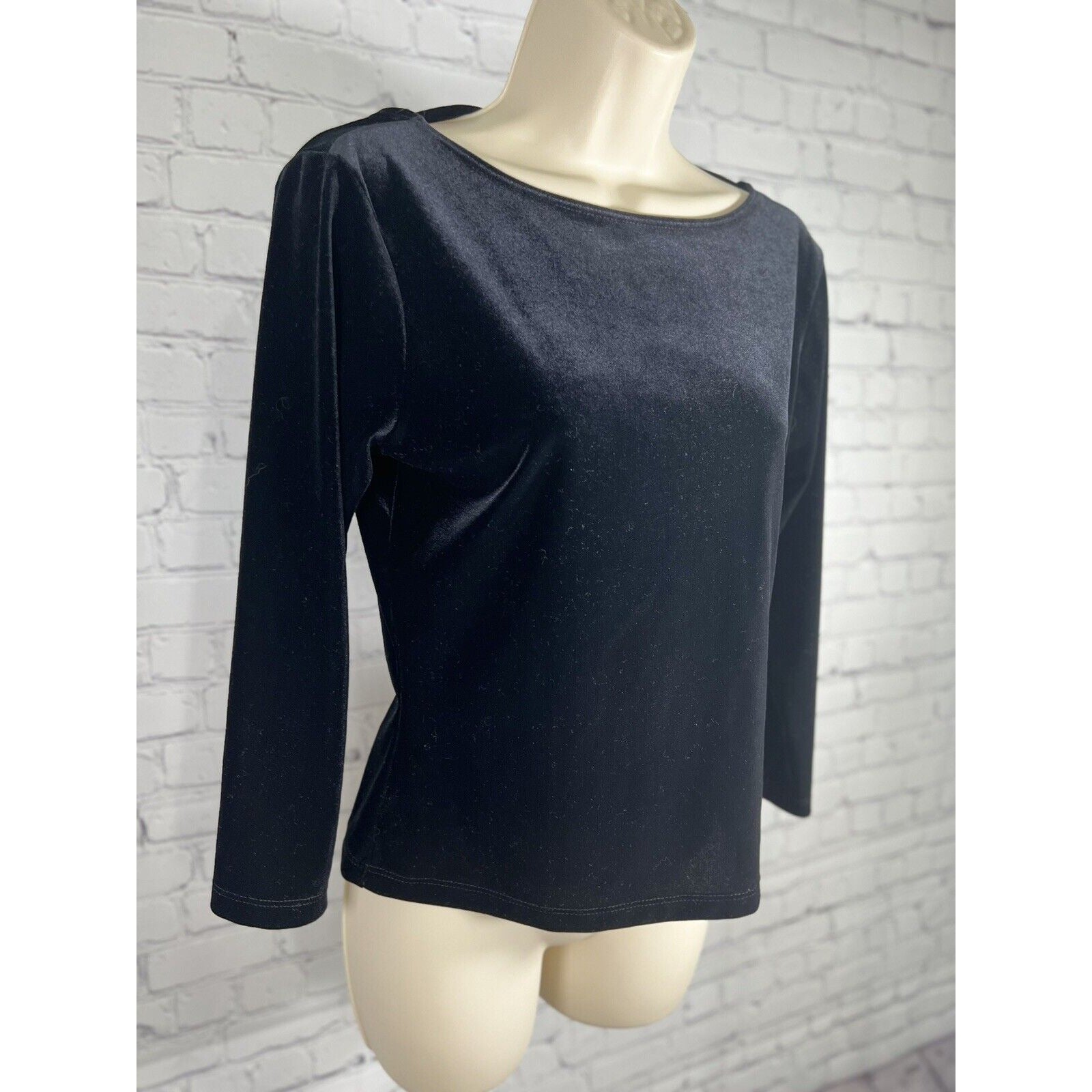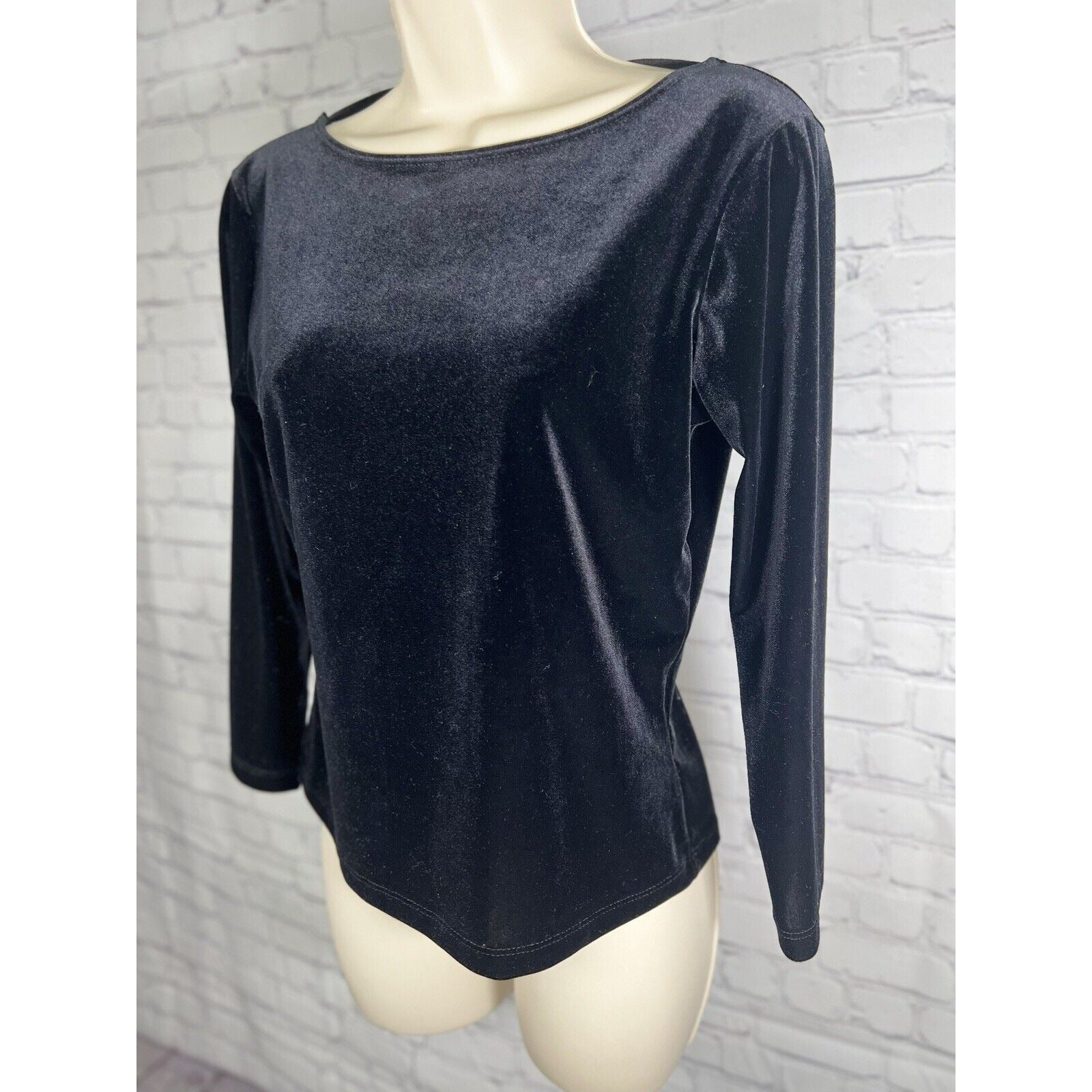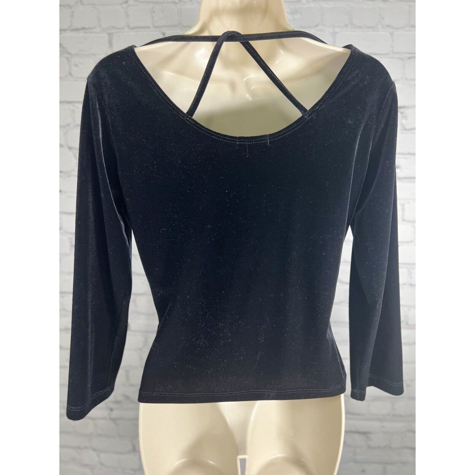 Vintage Star CCC Black Velour Back Crisscross Detail Long Sleeve Blouse