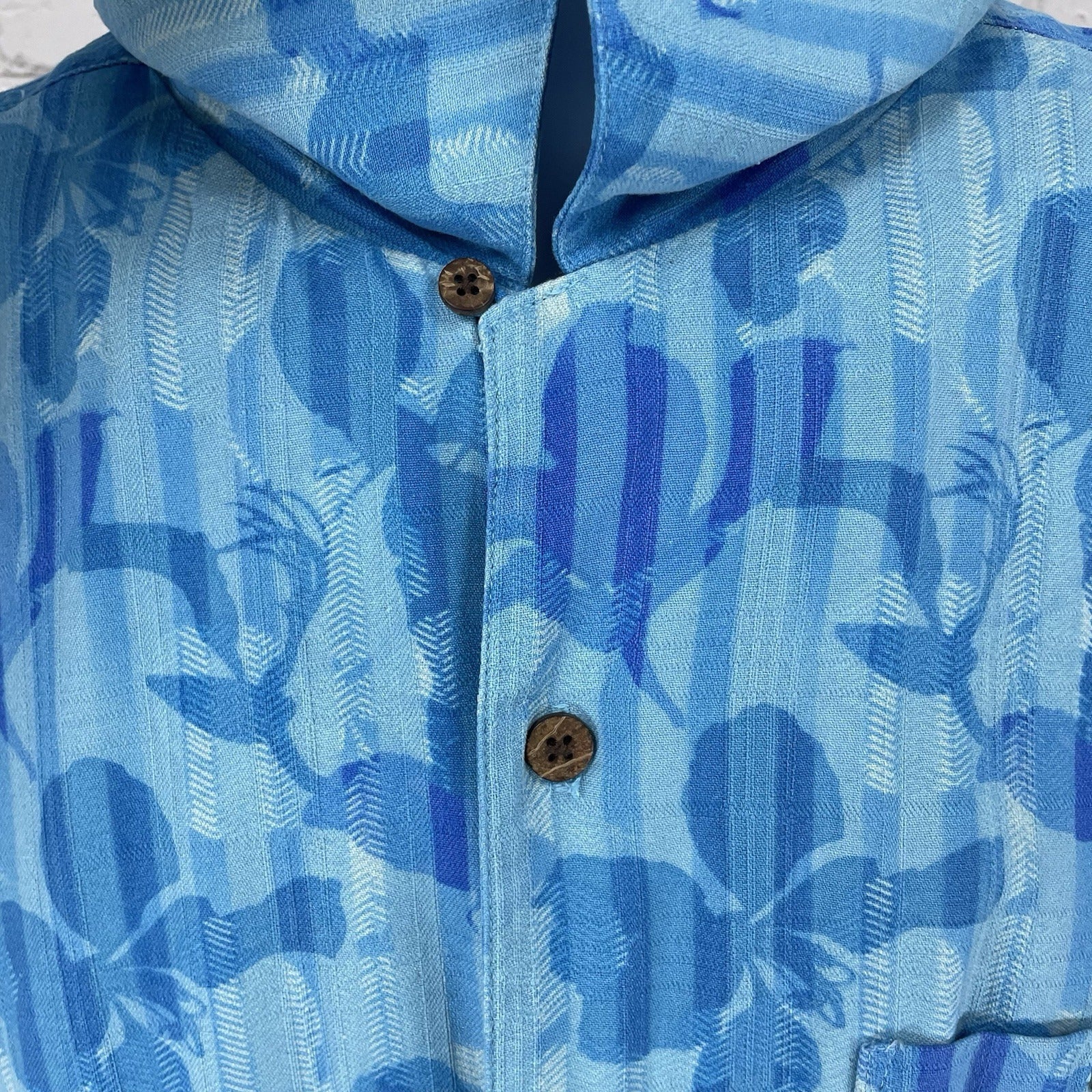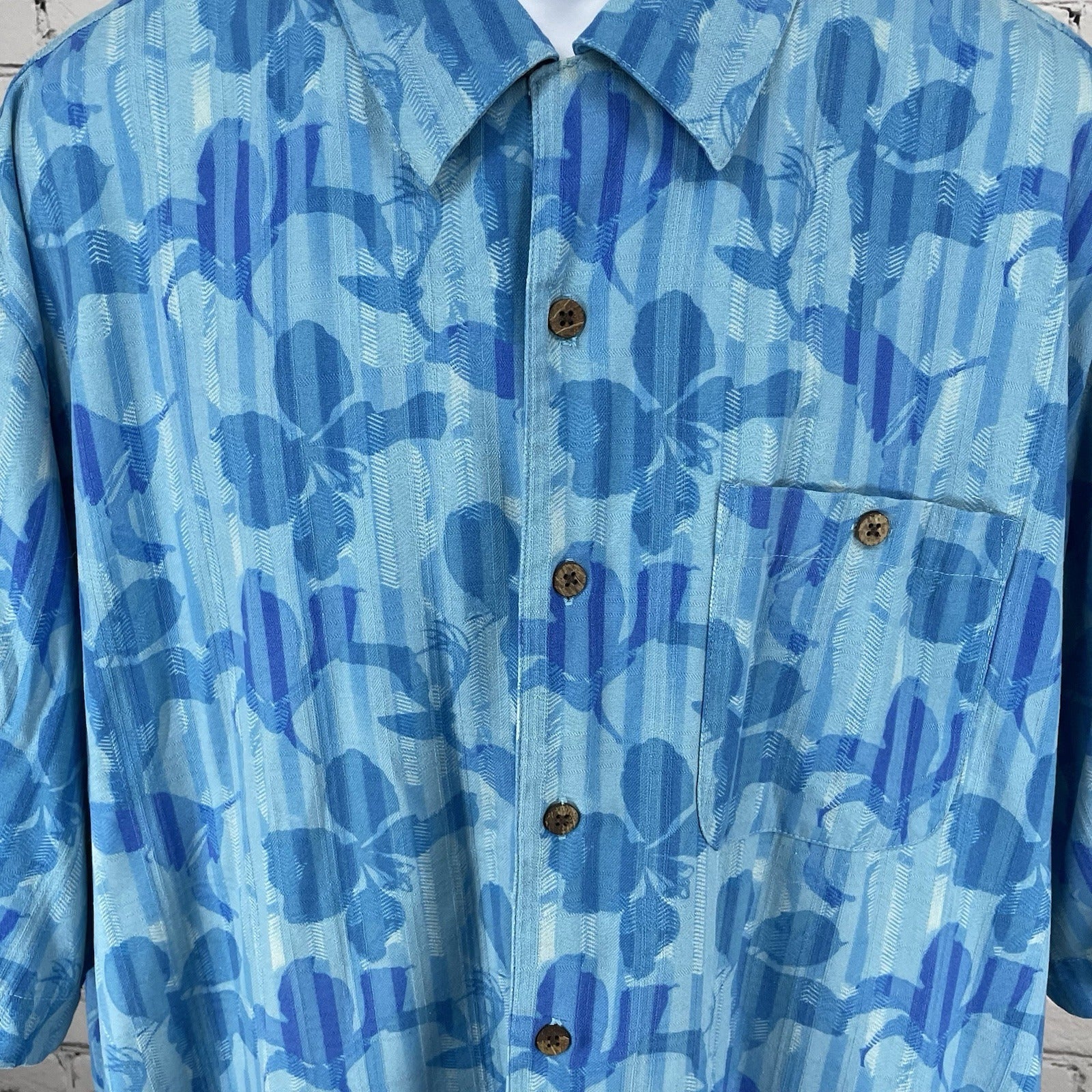 Visitor Blue Floral Washable Silk Hawaiian Button Up Short Sleeve Shirt Size 2XL