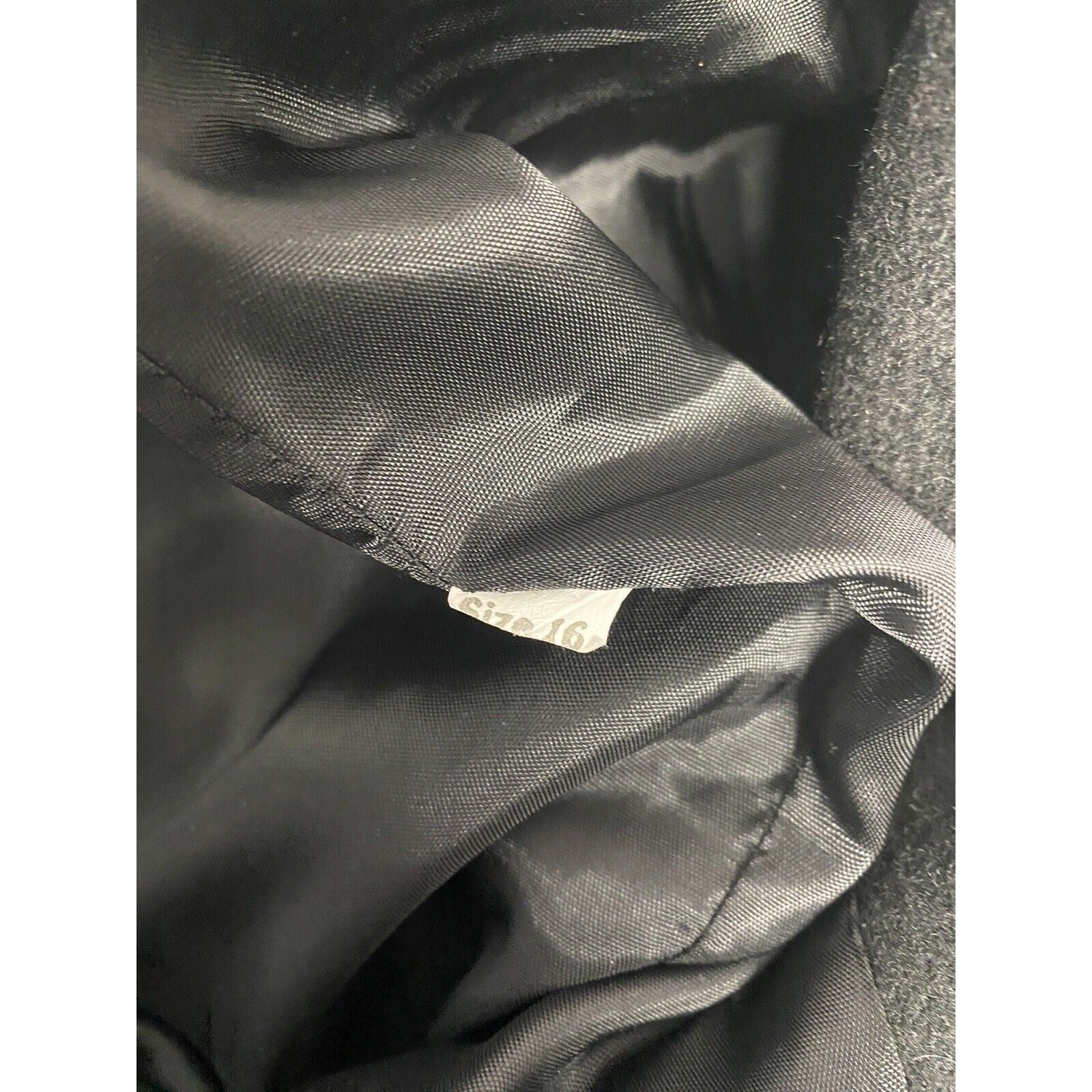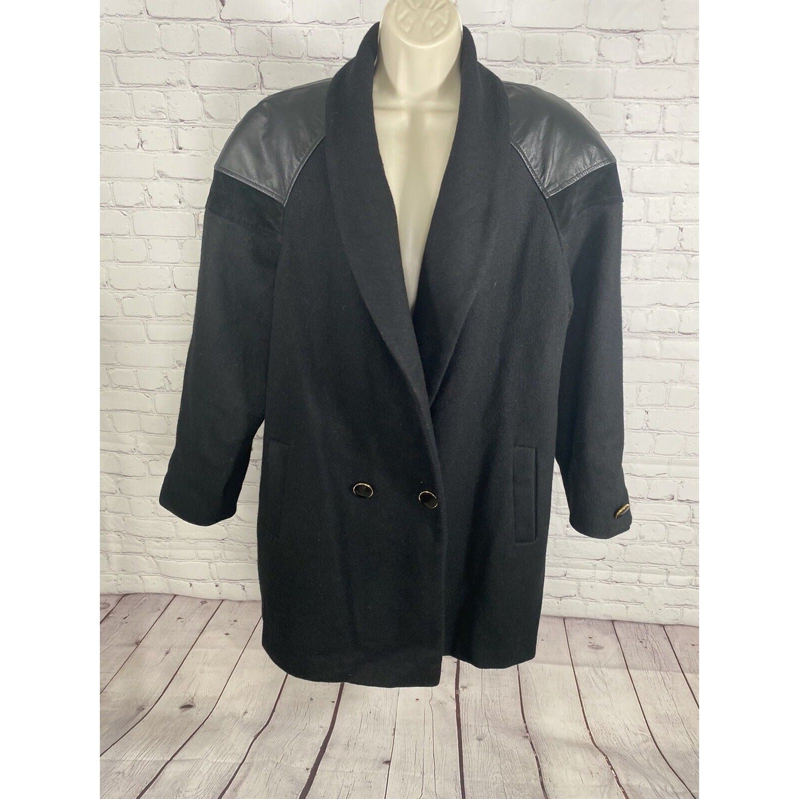 VTG Andrea Marin Black Two Button Wool Faux Leather Shoulders Peacoat Women’s 16