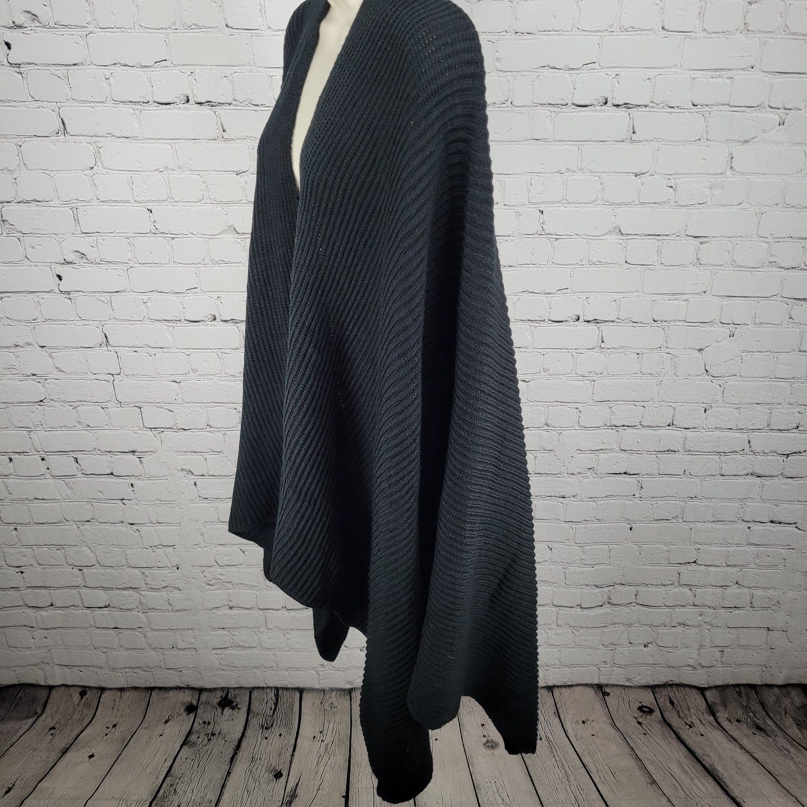 VTG Avon Style Black Knit Open Drapey Shawl Cape Sweater USA Made One Size