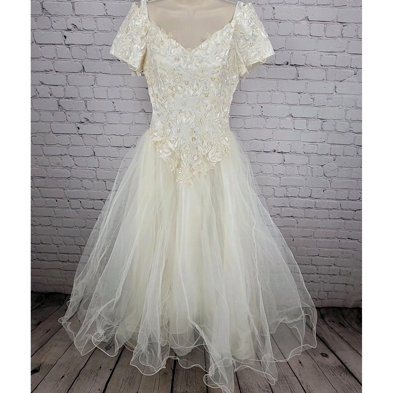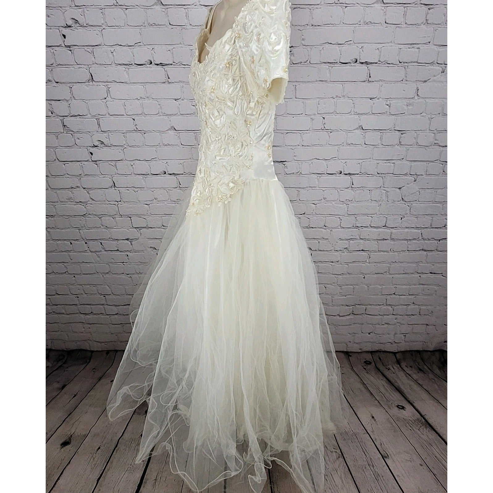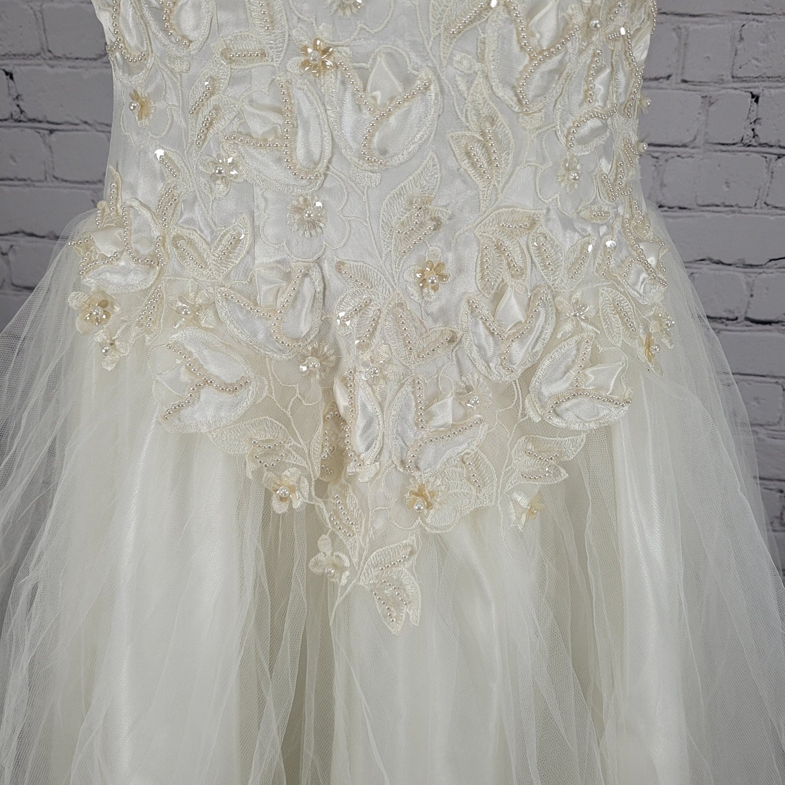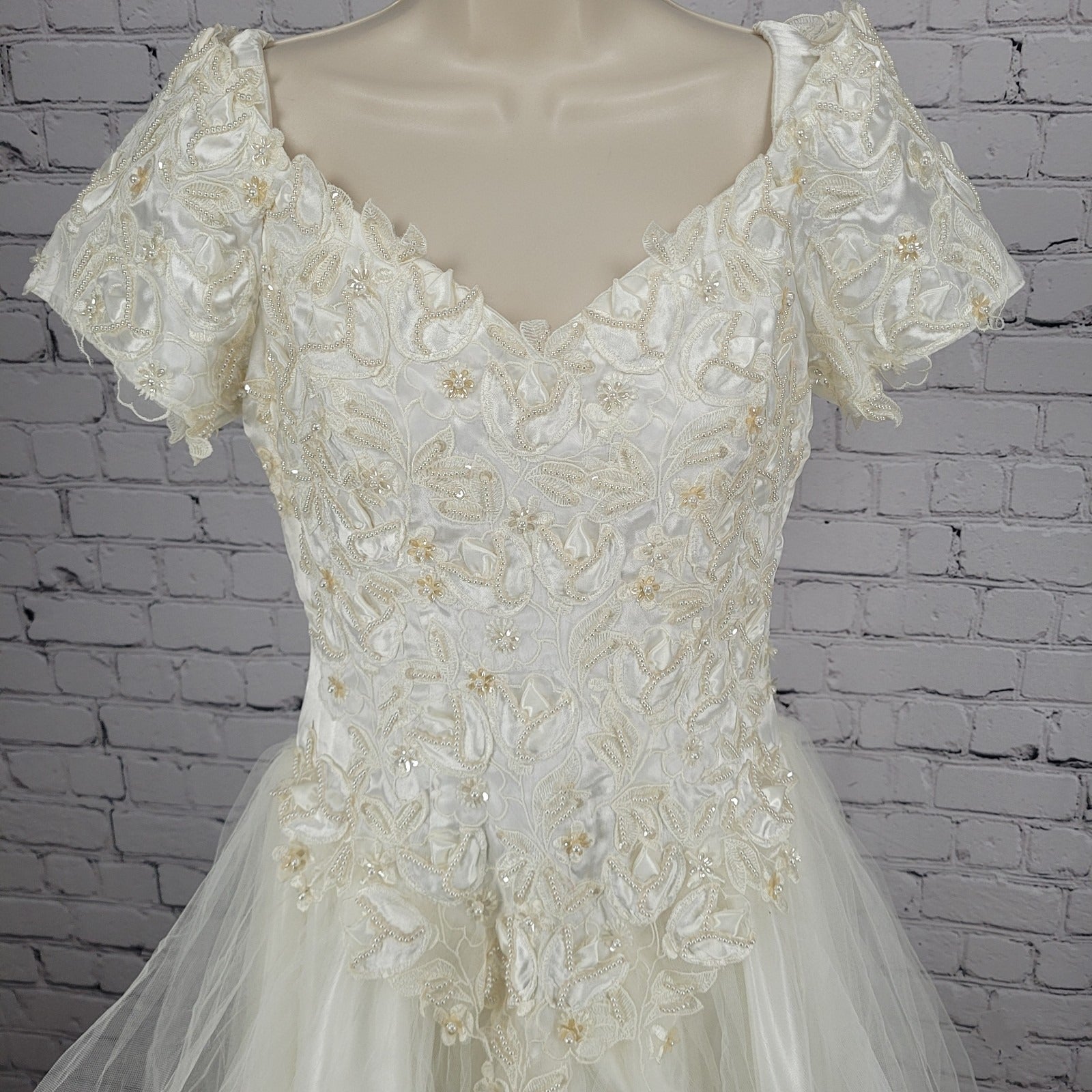 VTG Bonny Ivory Lace Beaded Embroidered Bodice Tulle Skirt Wedding Gown Dress 10