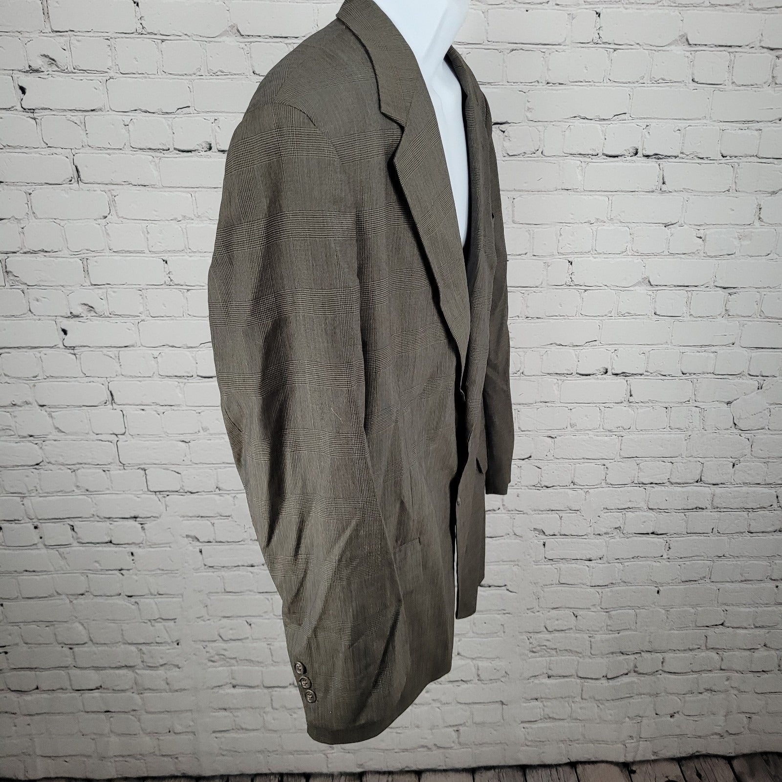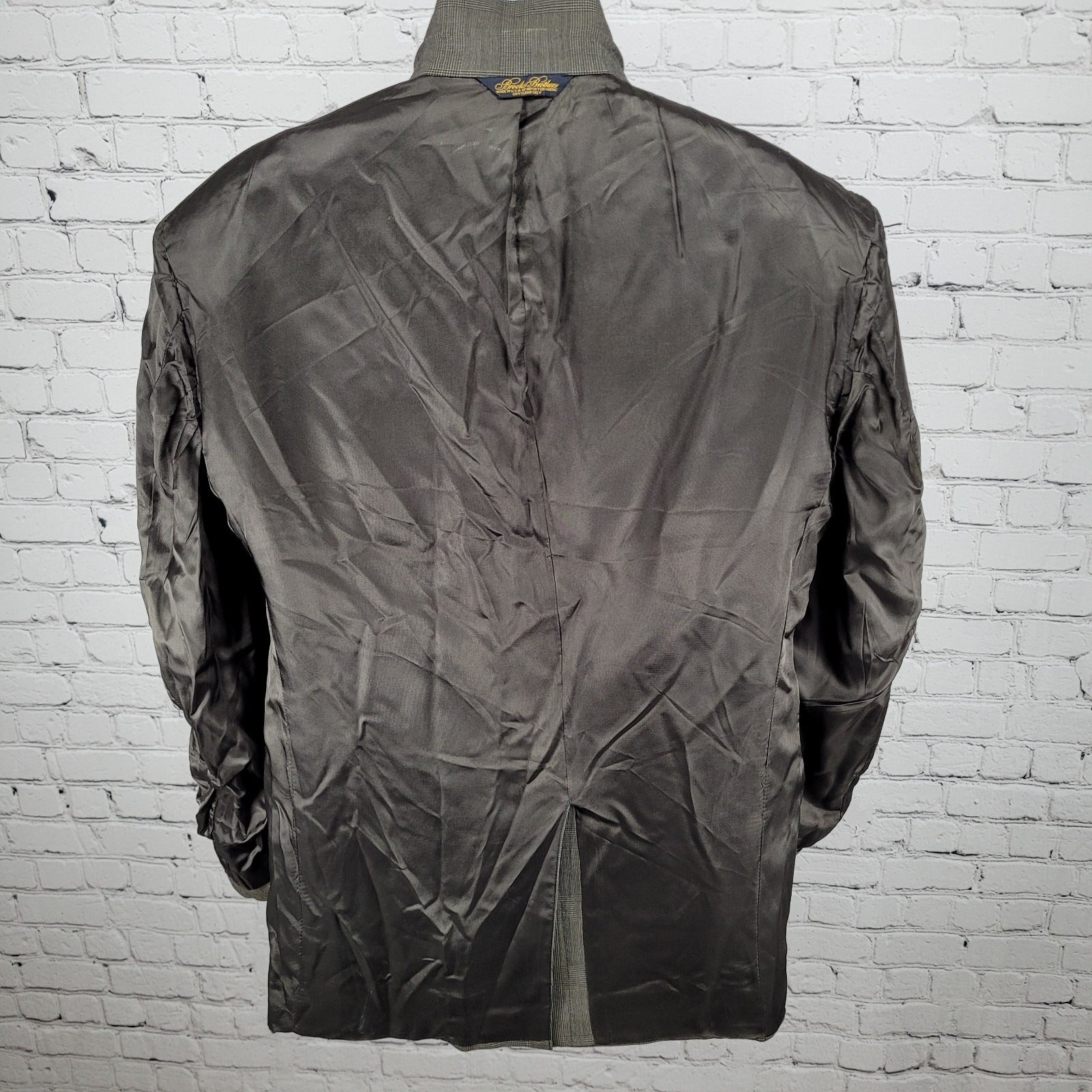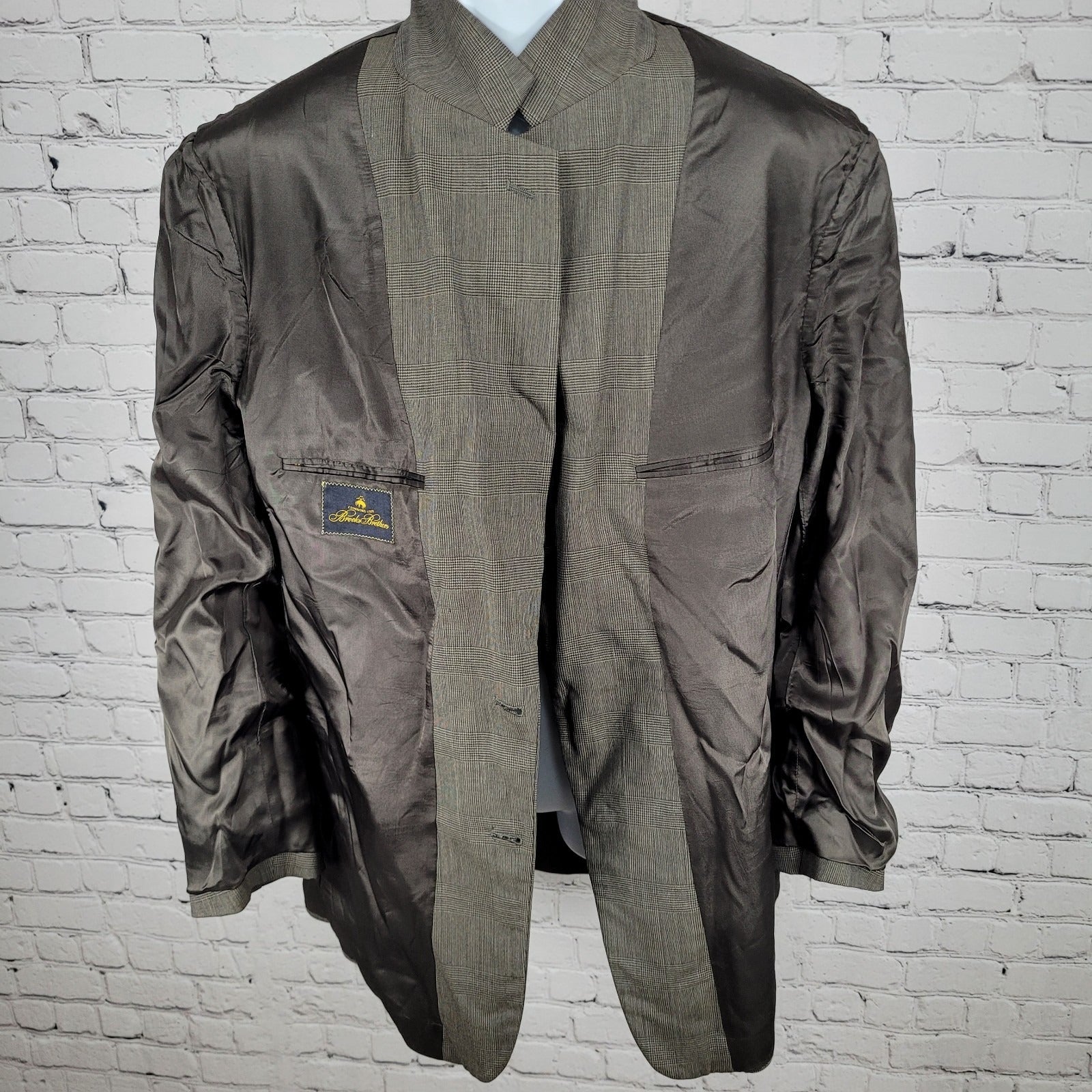 This vintage Brooks Brothers blazer is a stylish and classic choice for men looking for a sophisticated sport coat. Made in the USA from high-quality wool, this brown check blazer features a timeless design that is perfect for both formal and casual occasions. With a size 42R, this blazer is tailored to fit comfortably and provide a polished look for any man's wardrobe.