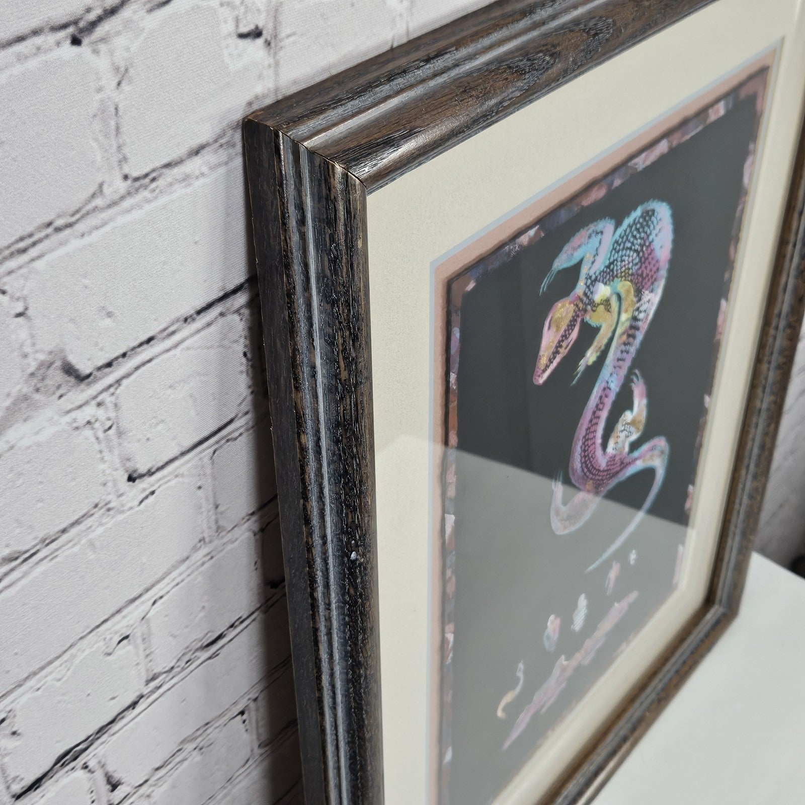 VTG C. Warren Original Desert Lizard Southwestern Folk Art Metallic Wood Framed