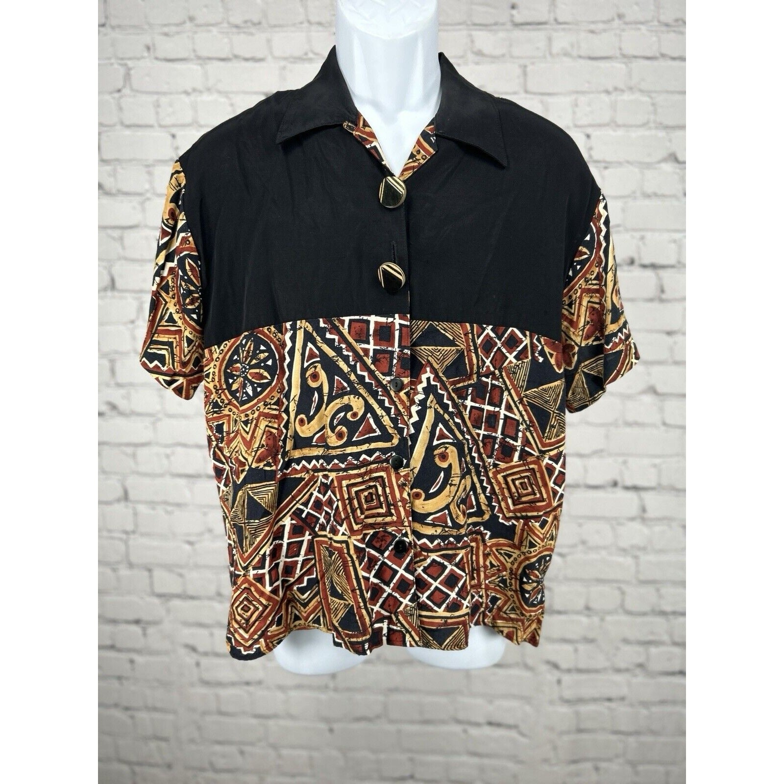 VTG Clio Multicolor Abstract Button Collared Short Sleeve Shirt USA Size Small S