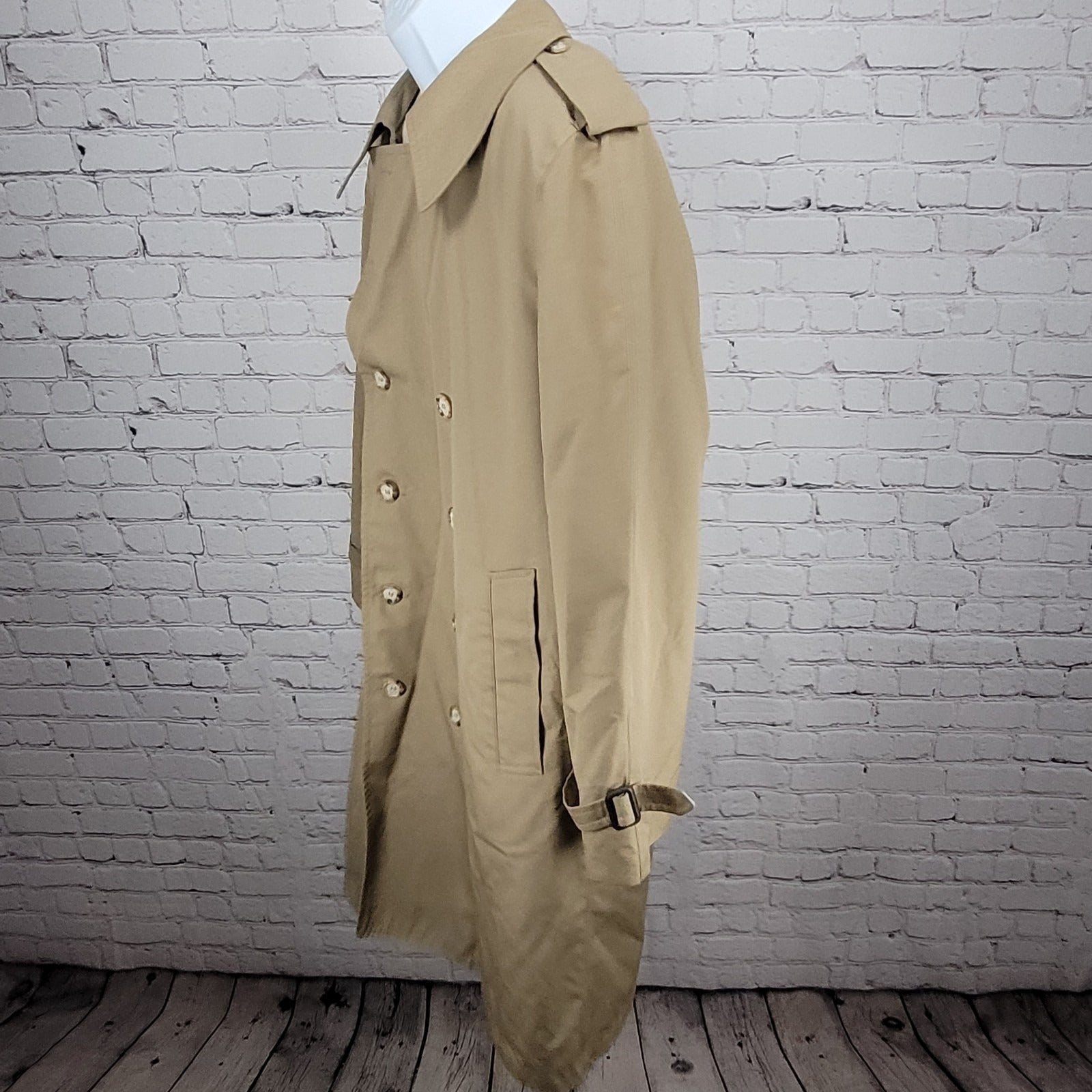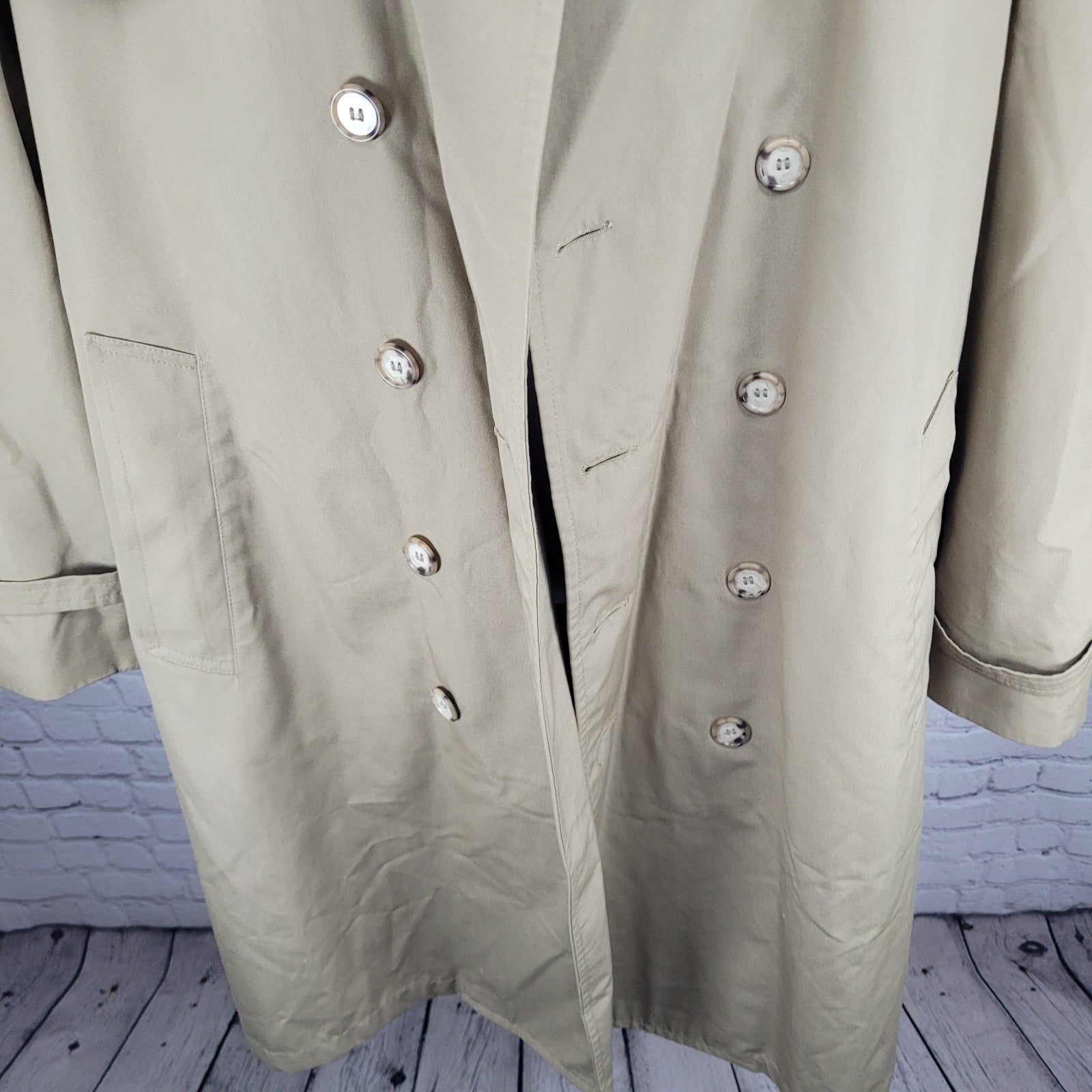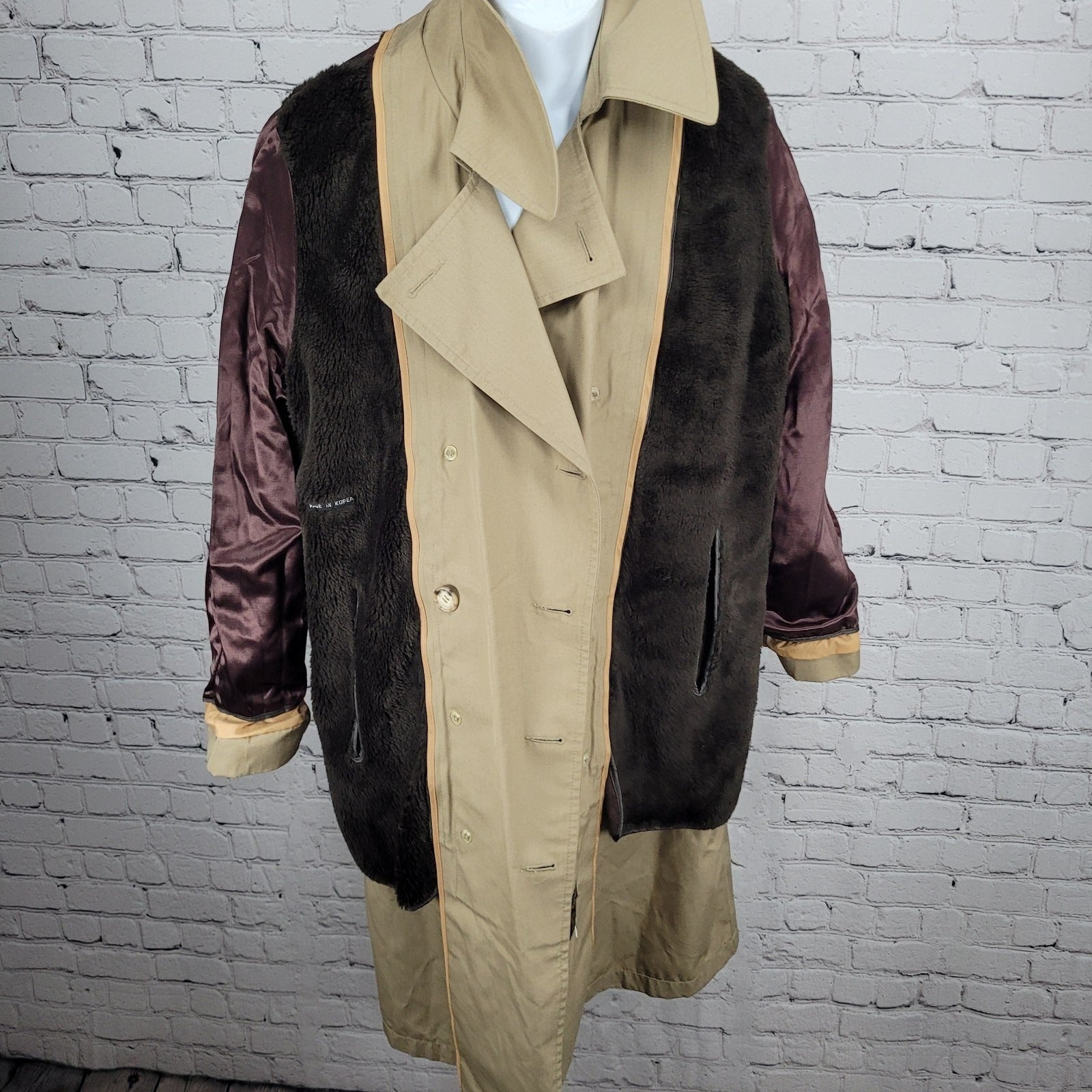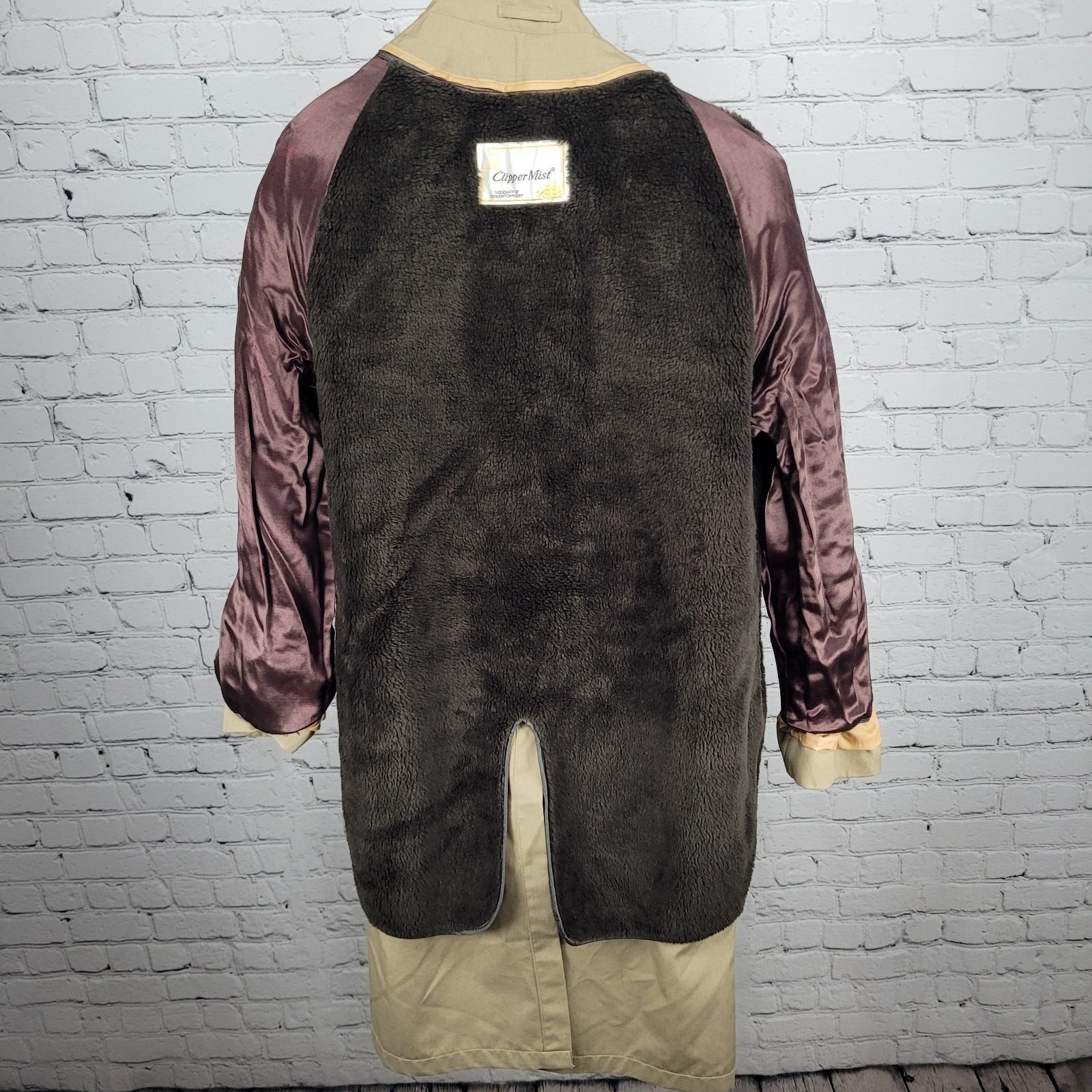 VTG Clipper Mist Tan Double Breasted Removable Faux Fur Liner Trench Coat 40R