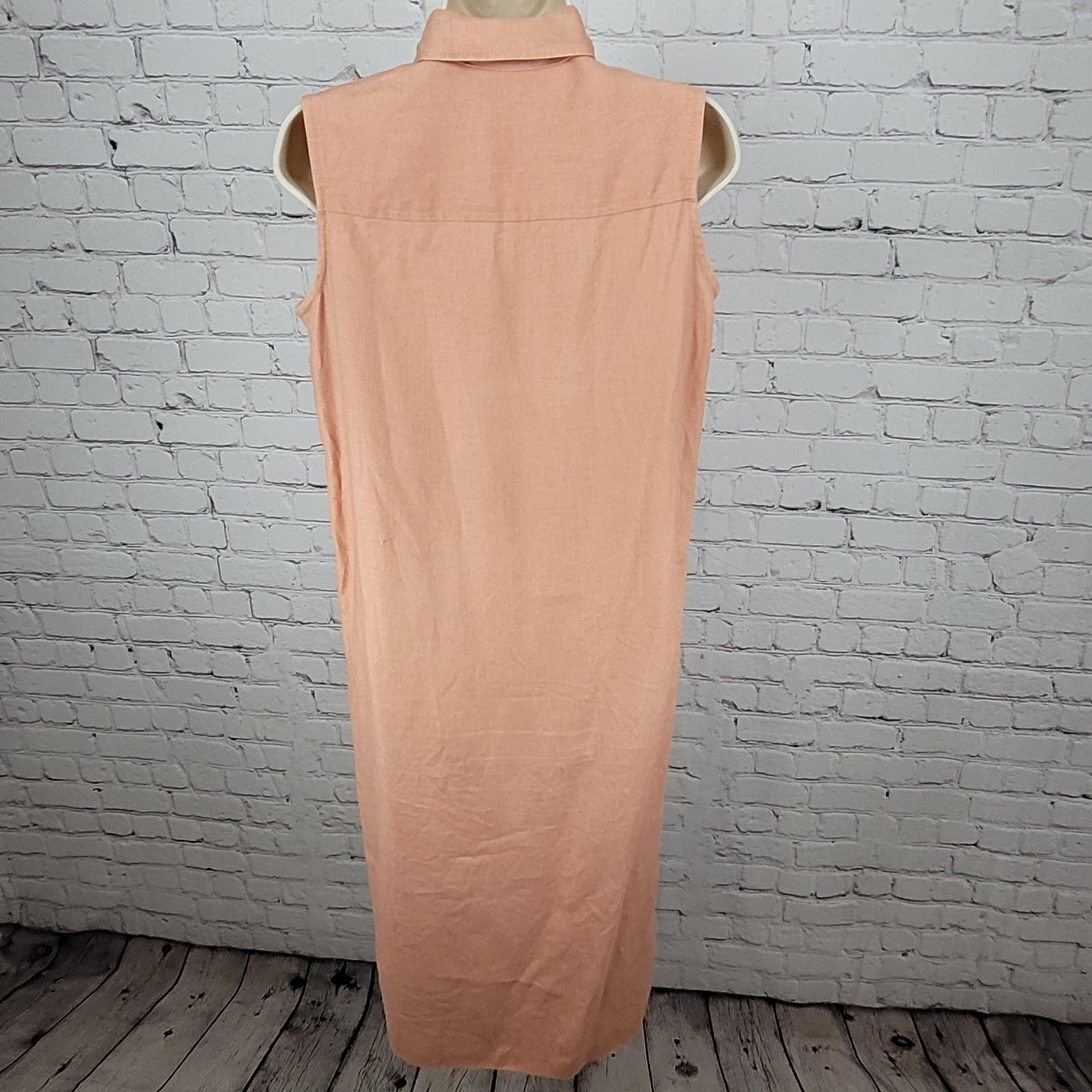 VTG Coldwater Creek Pink Orange 100% Linen Side Slits Shirt Dress USA Size 10P