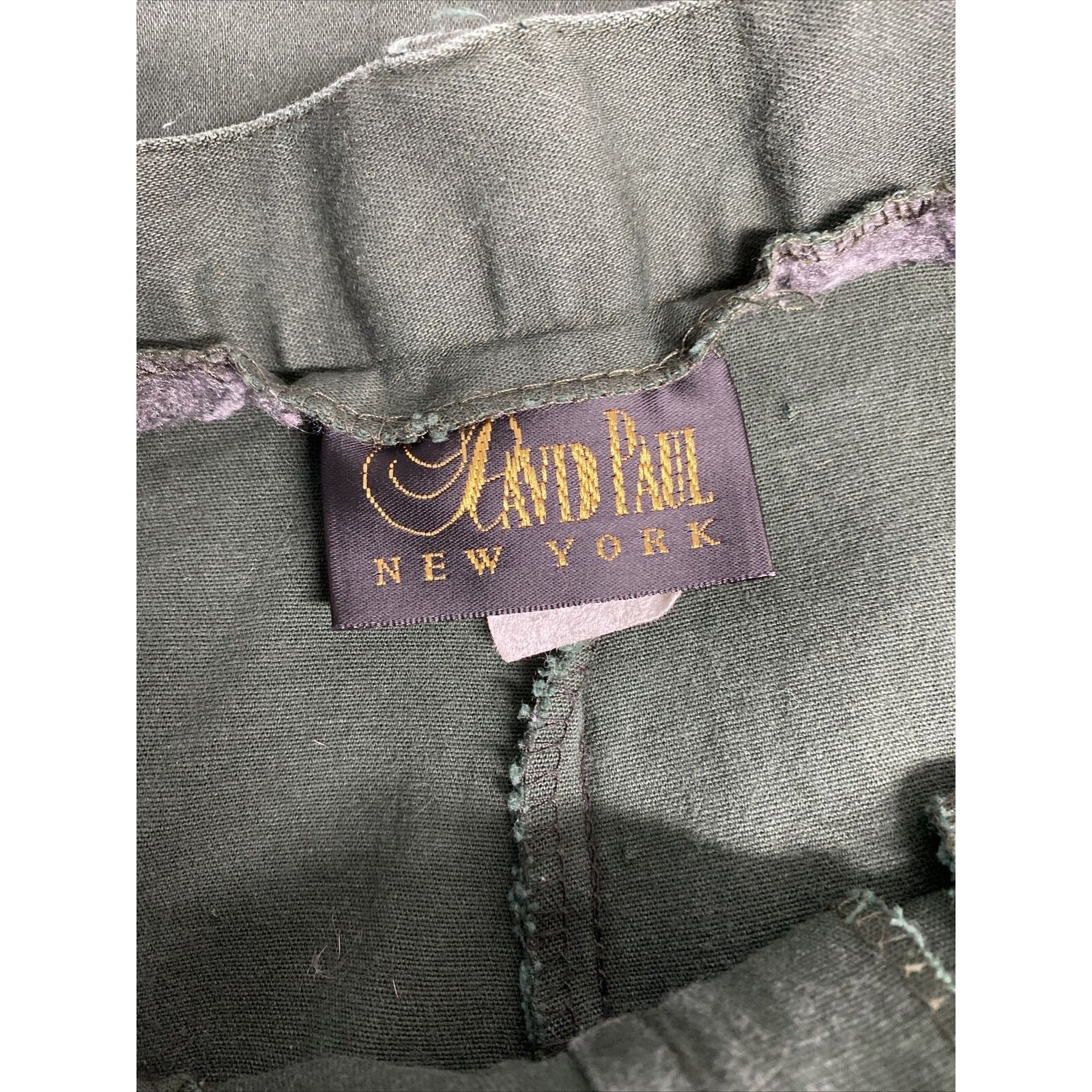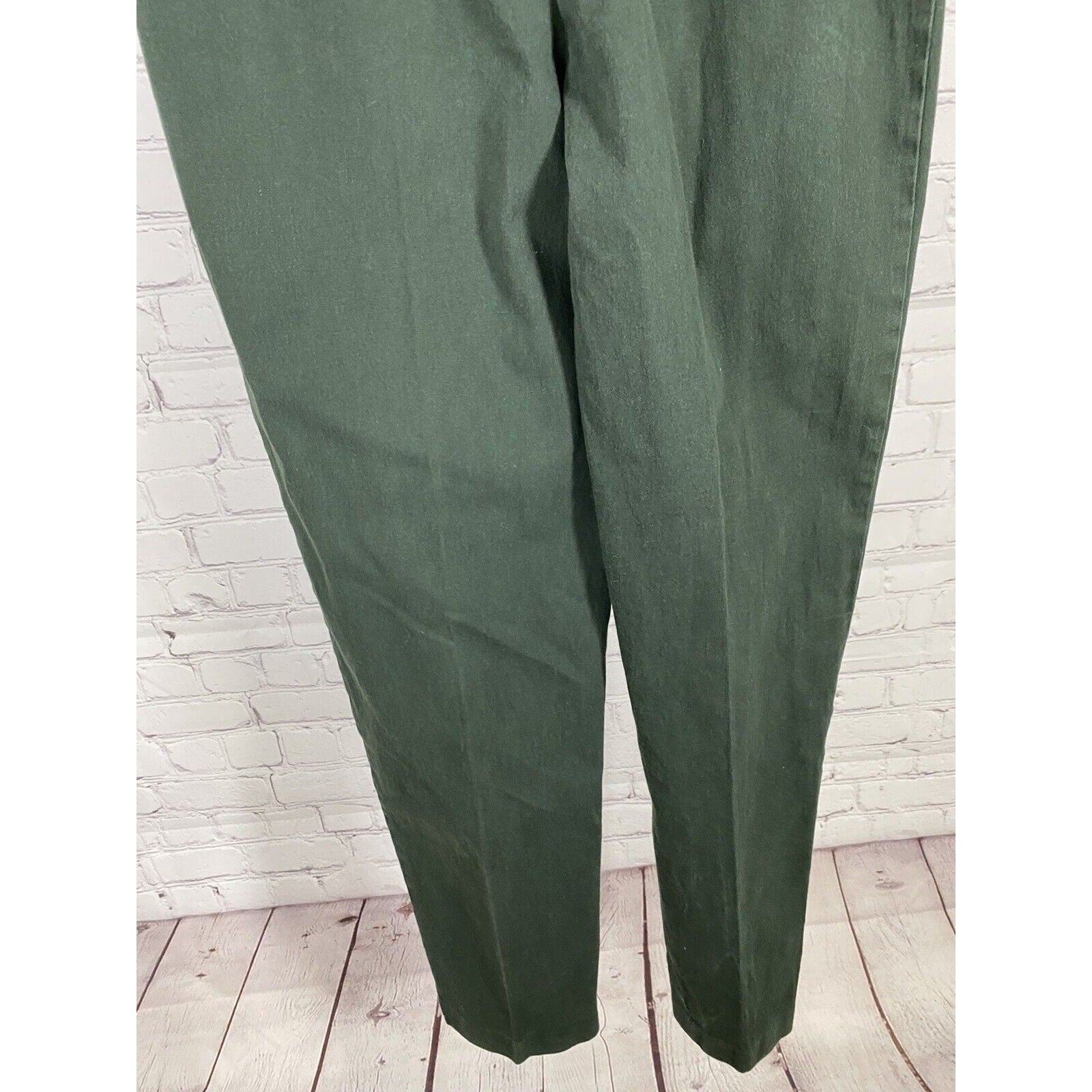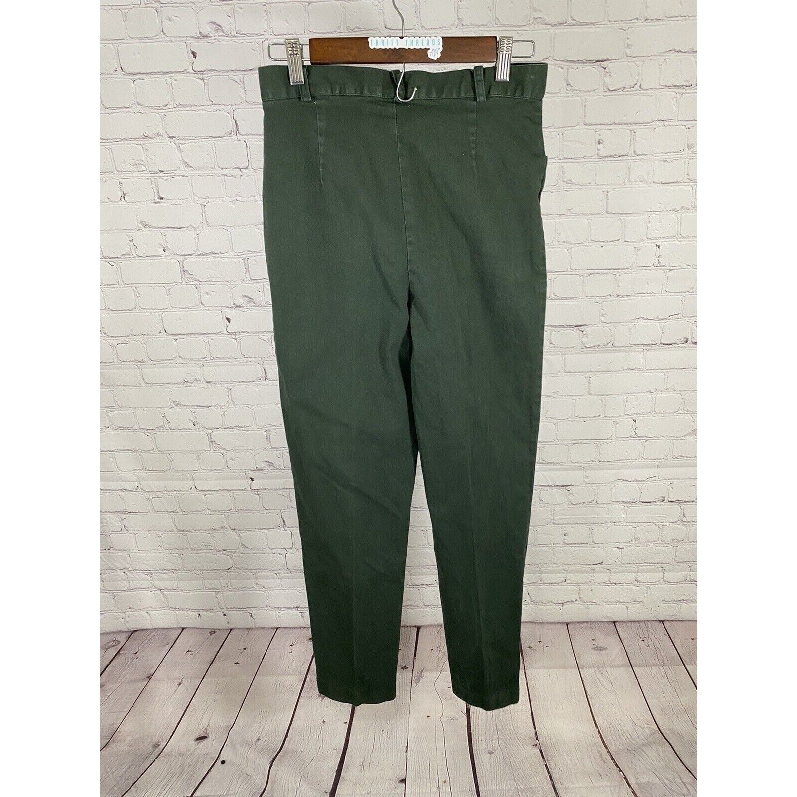 Step out in style with these vintage David Paul straight leg pants. With a solid pattern and a dark green color, these pants are perfect for any occasion. The zip and button closure ensure a secure fit, while the high-rise waistline offers a comfortable fit that flatters your figure.