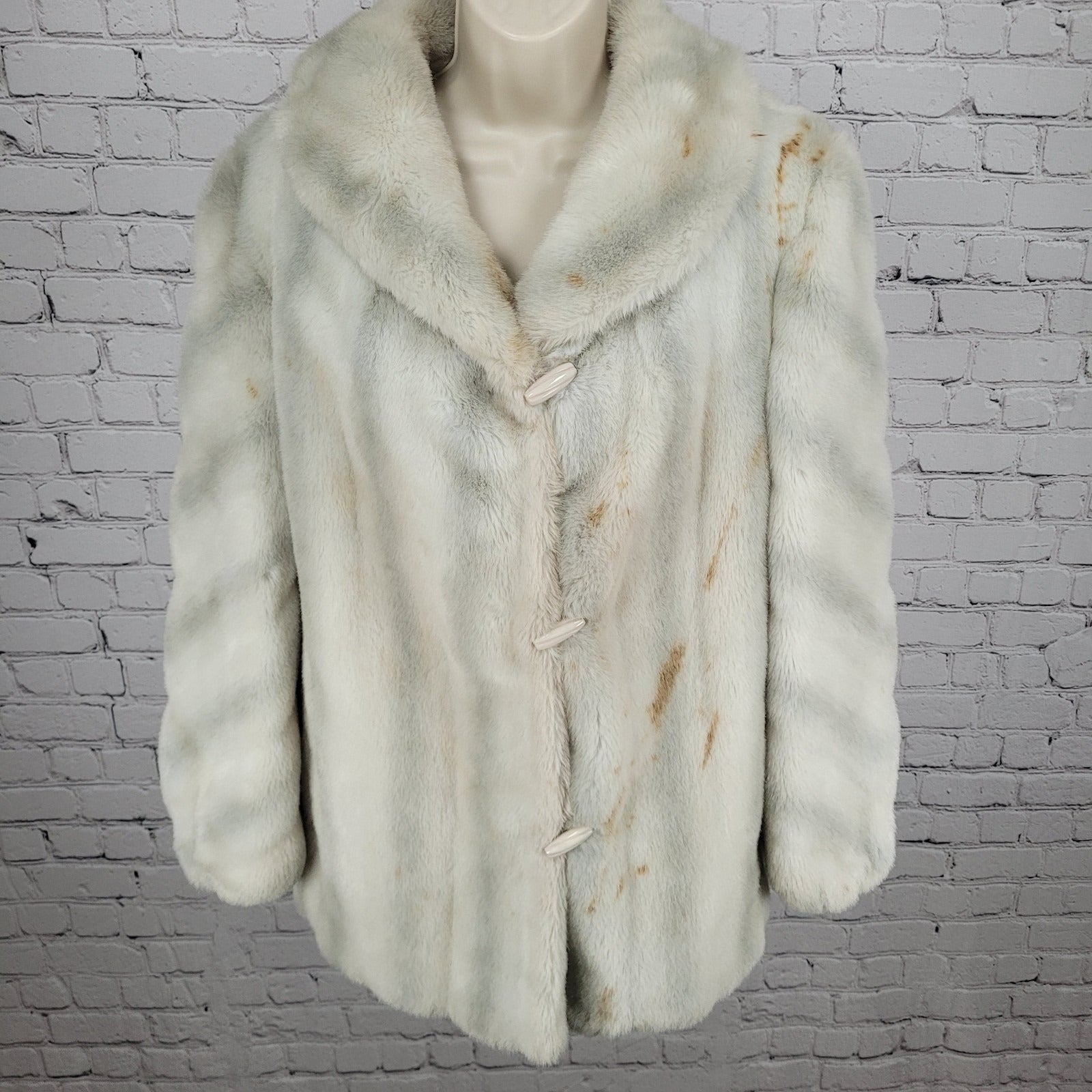 VTG Dubrowsky & Perlbinder Tissavel Grey Faux Fur Toggle Coat Union USA Size 14