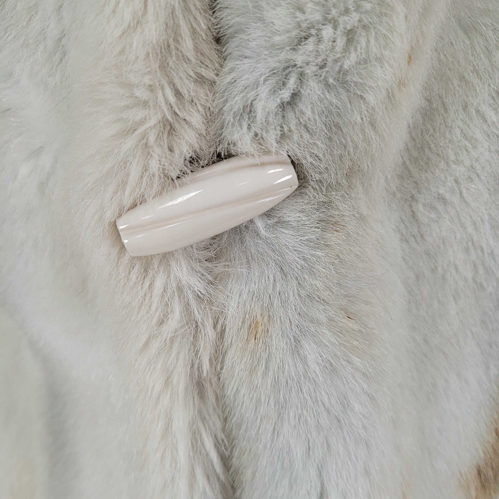 The VTG Dubrowsky & Perlbinder Tissavel Light Grey Fur Toggle Coat is a stylish and classic women's overcoat, made in the USA with a mid-length design and long sleeves. The coat features a toggle closure, lined interior, collared neckline, and pockets for added convenience. Perfect for various occasions including travel, party, casual, and formal events, this vintage coat in size 14 offers a retro charm with a timeless appeal. The light grey color and classic fit make it a versatile and elegant addition to any wardrobe, suitable for winter, fall, and spring seasons.