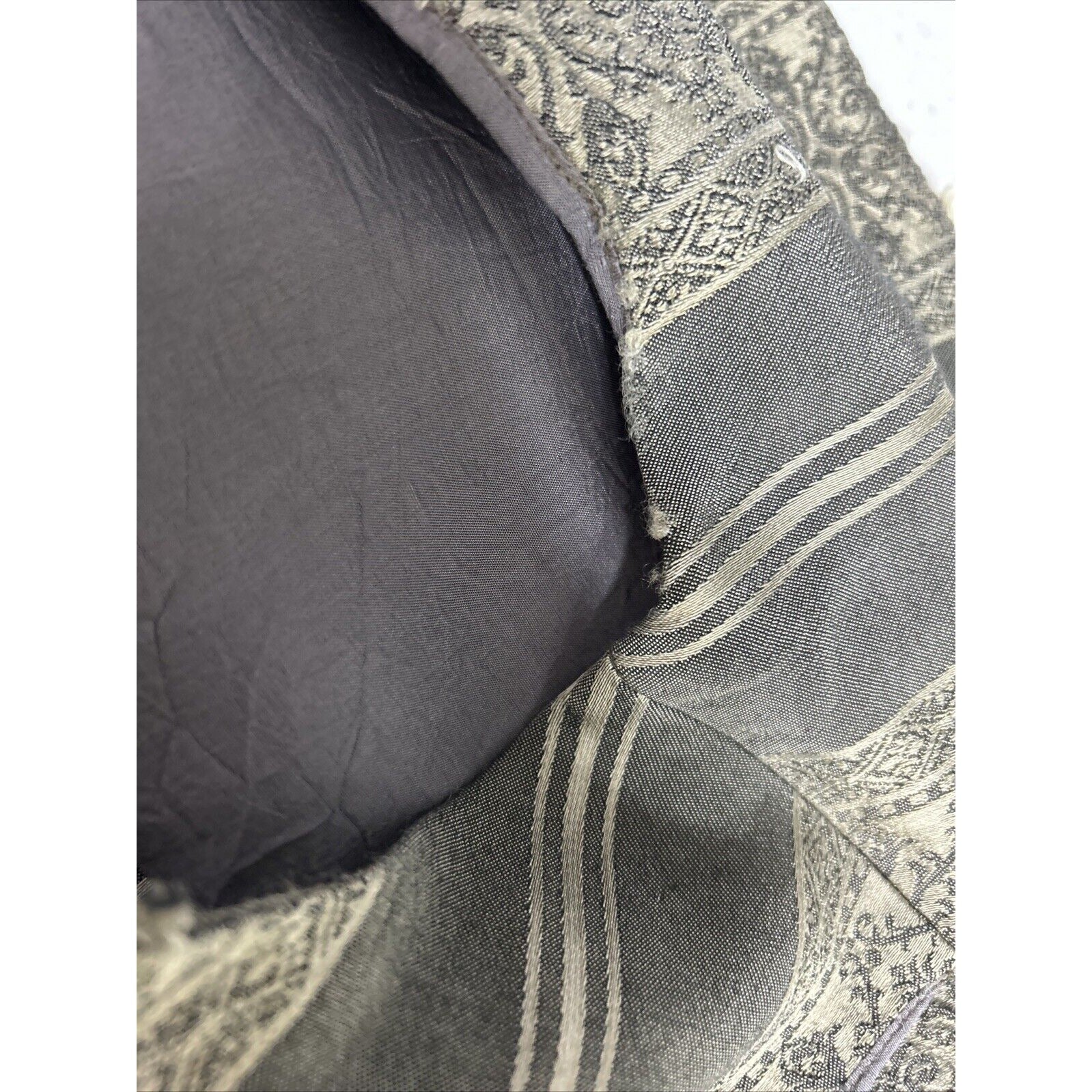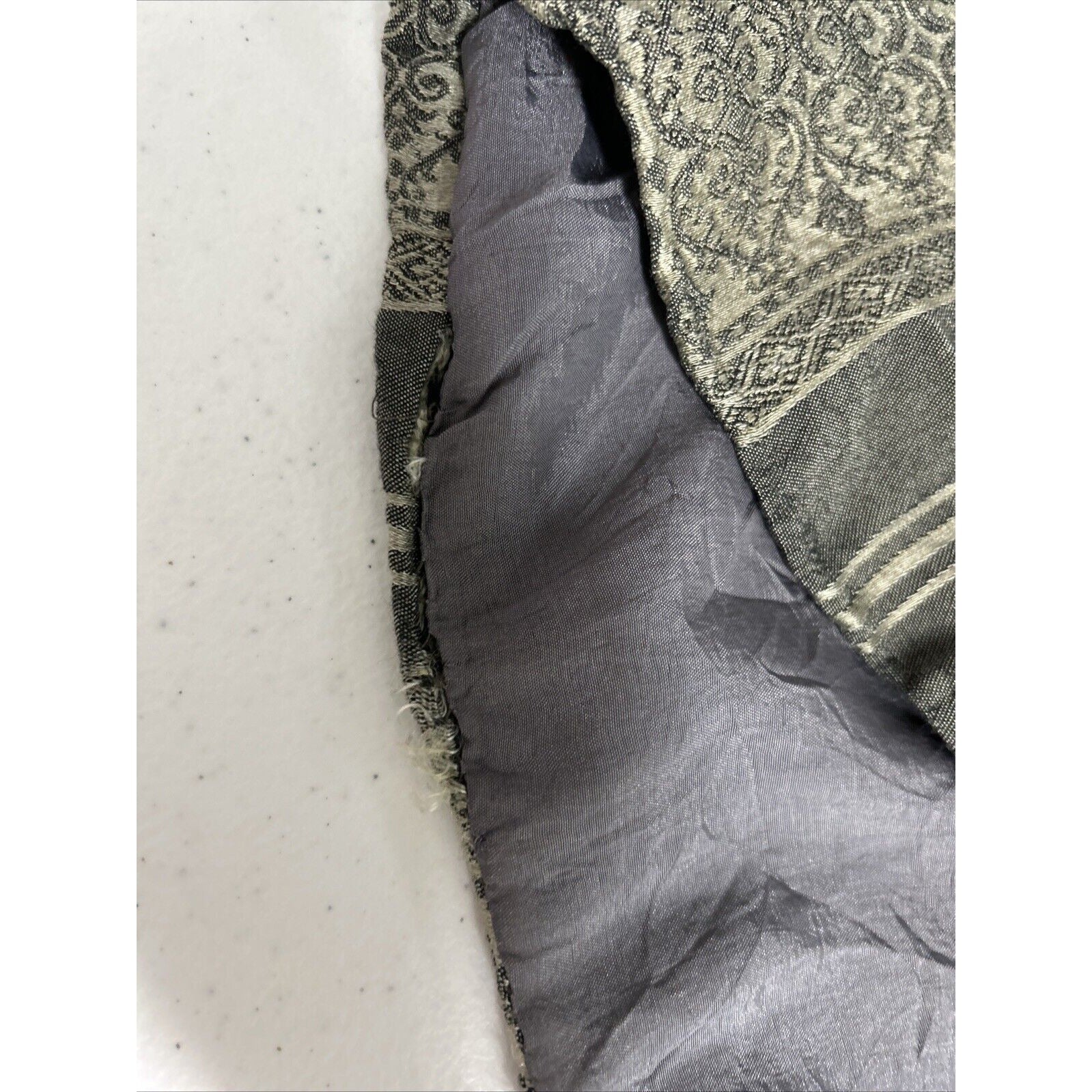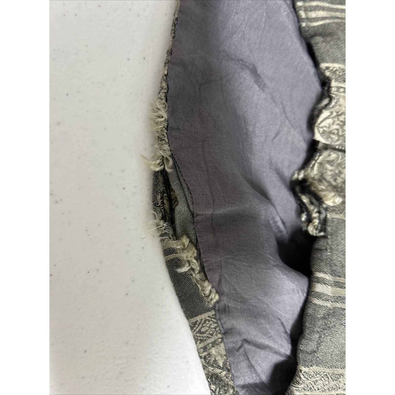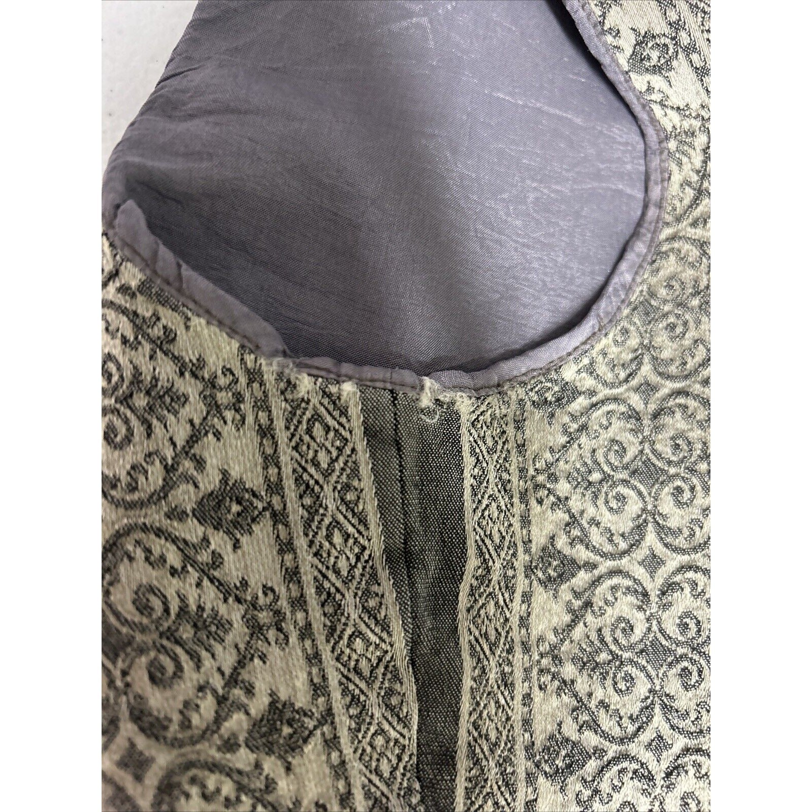 This vintage Emanuel Ungaro petite gray cropped front full zip closure vest is a classic addition to any wardrobe. The striped and paisley pattern adds a touch of elegance to this basic vest, making it suitable for both casual and business occasions. The sleeveless design and short length make it perfect for layering over a blouse or dress, while the full zip closure ensures a comfortable and secure fit.