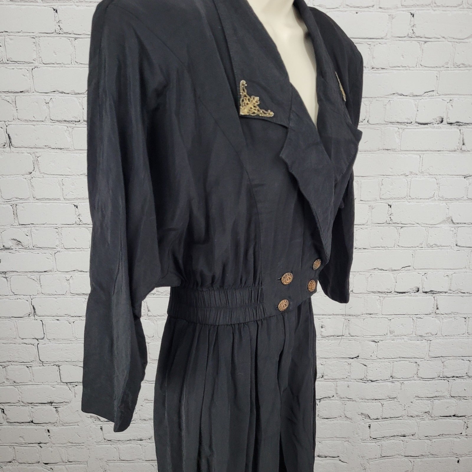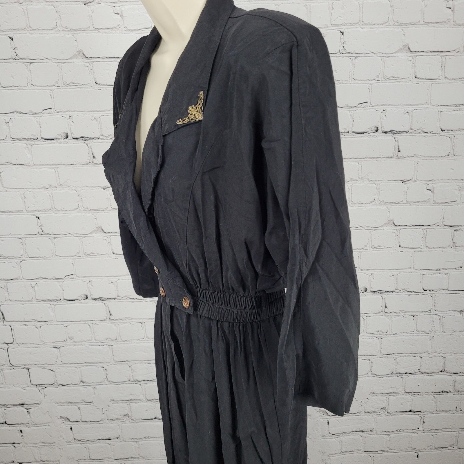 The VTG En Focus Black 3/4 Sleeve Embellished Collar Lightweight Jumper in size XS is a stylish and versatile one-piece outfit designed for women. Made with lightweight material, this jumper features a flattering 3/4 sleeve length and a chic collared neckline. The embellished collar adds a touch of sophistication to this classic black jumper, making it a perfect addition to any wardrobe for a trendy and comfortable look.