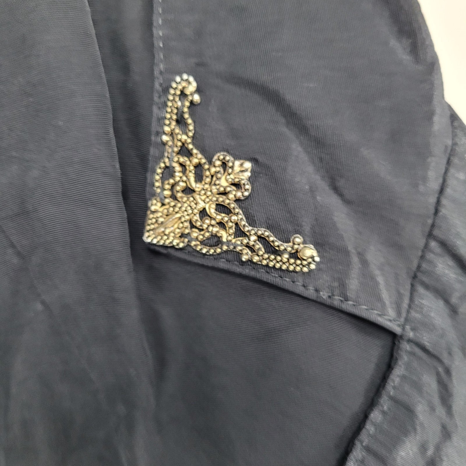 VTG En Focus Black 3/4 Sleeve Embellished Collar Lightweight Jumper Size XS
