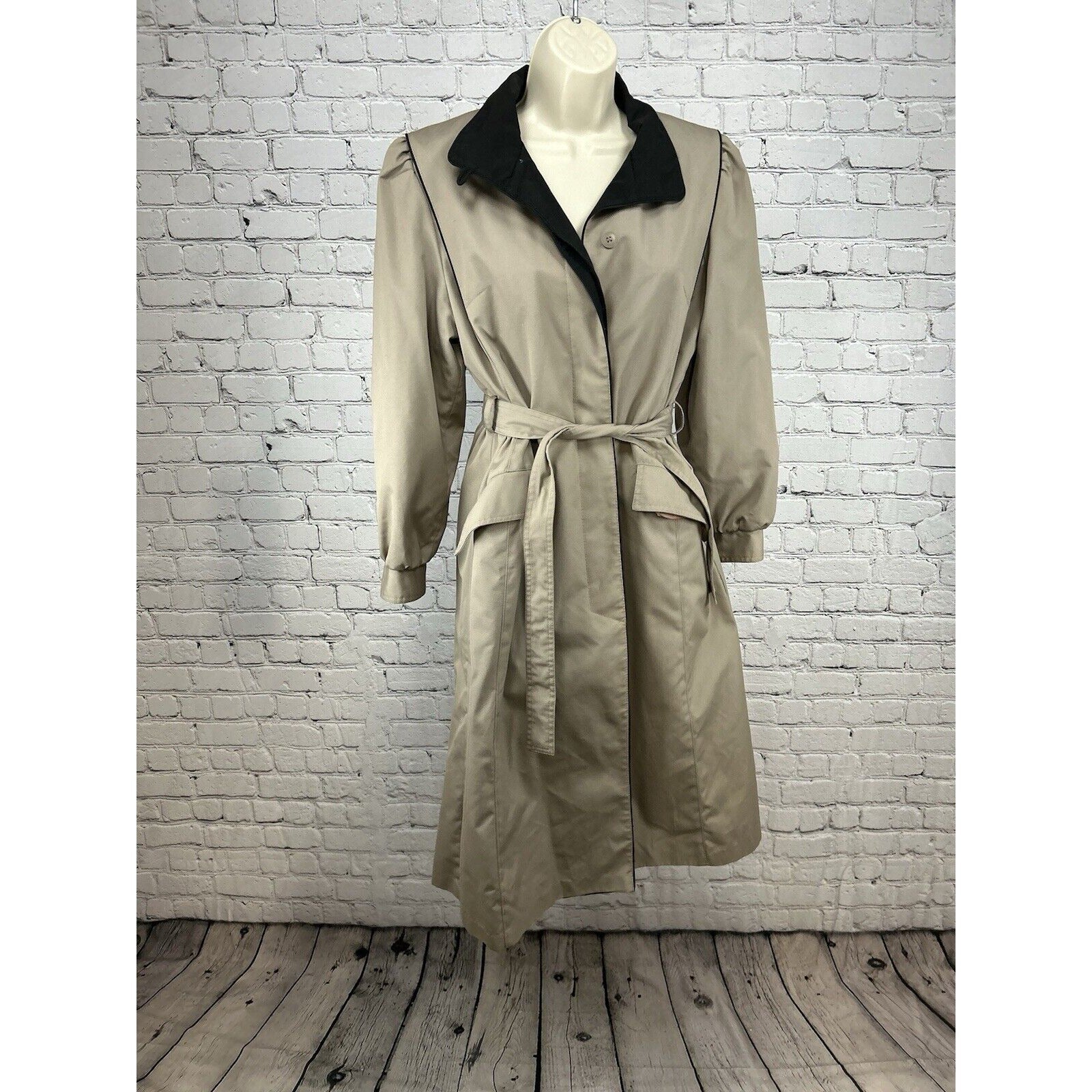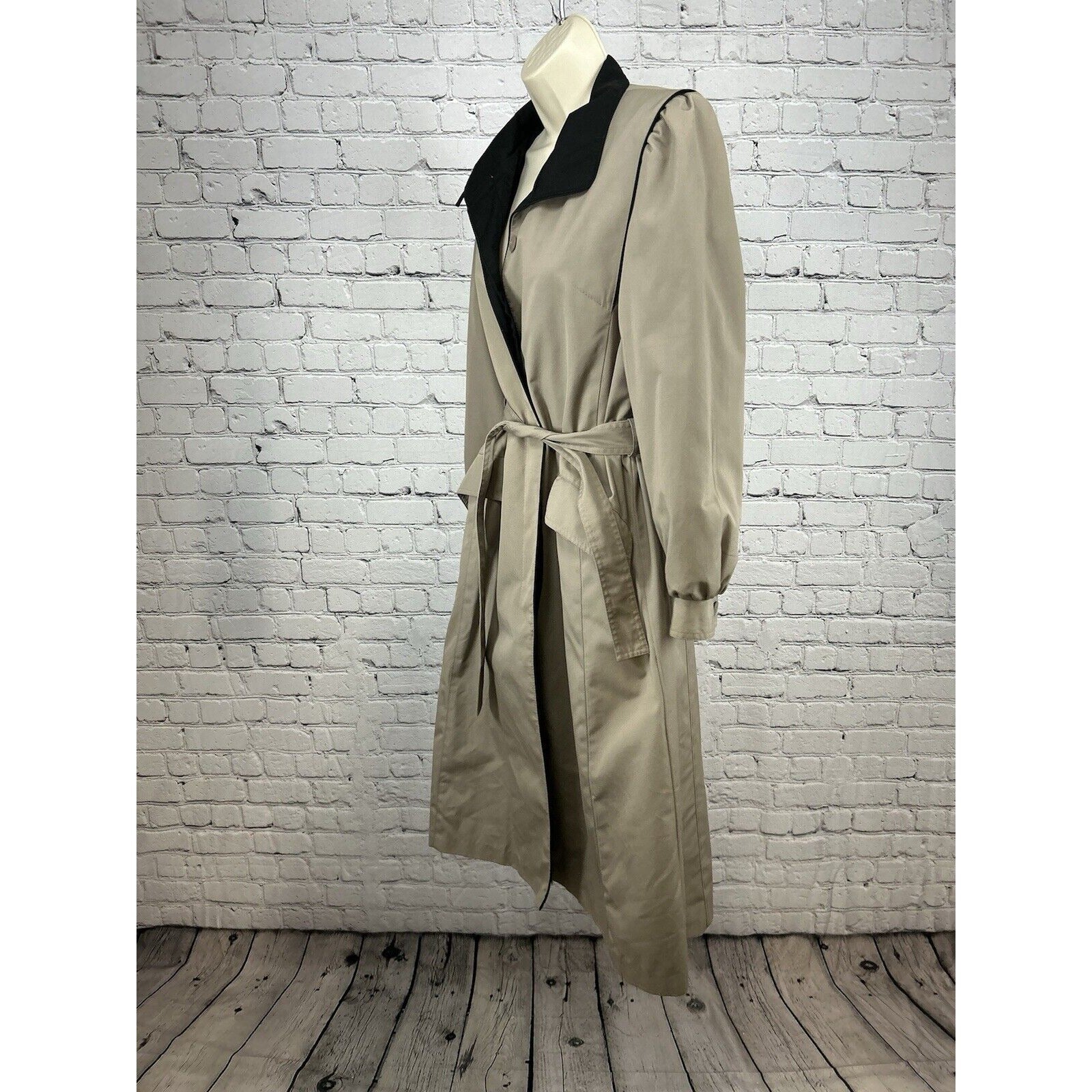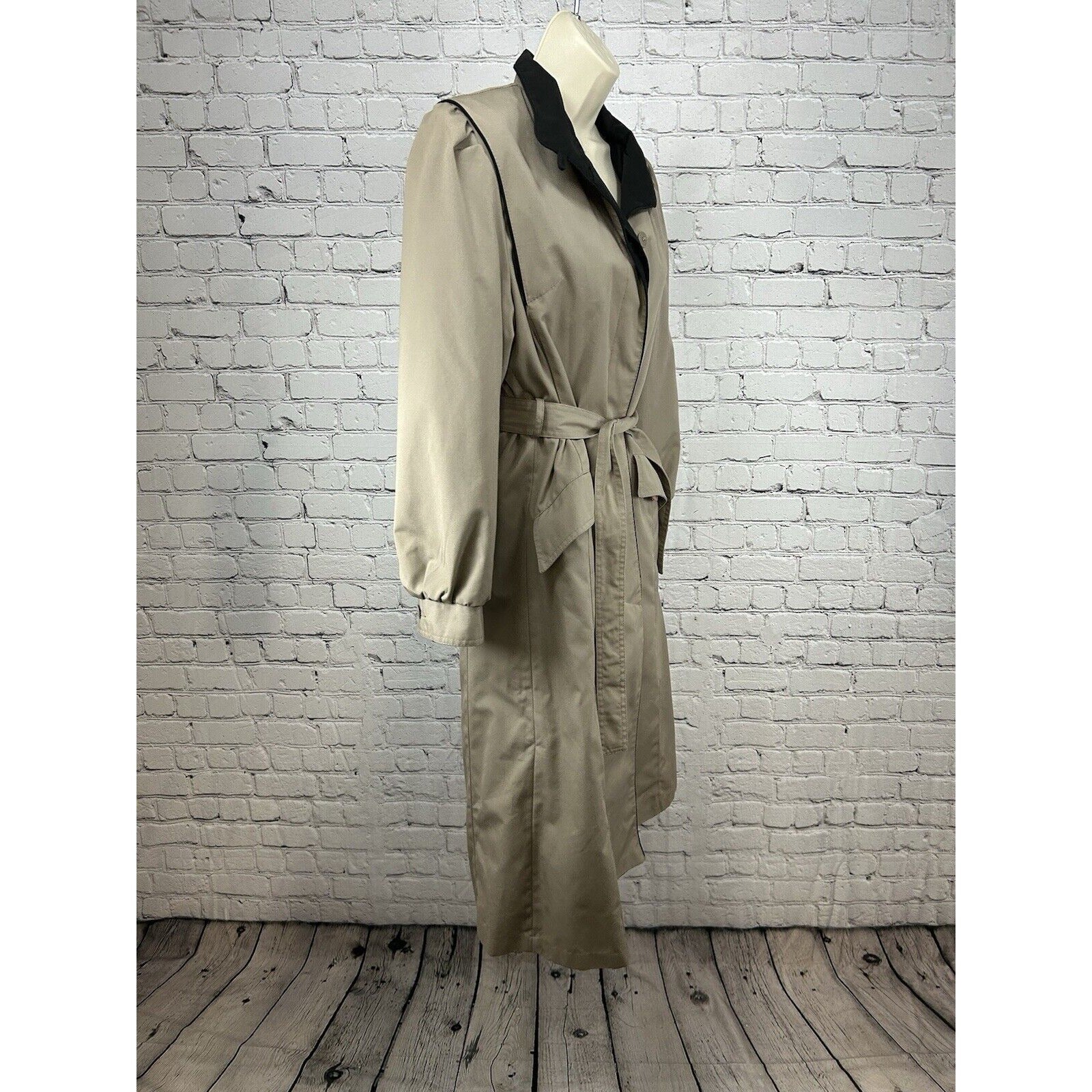 VTG Foxland By Lanson Beige Zip Out Liner Collared Women’s Long Trench Coat 12