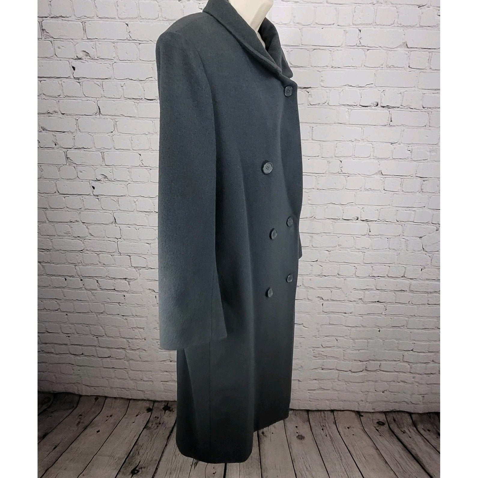 VTG Glenbrooke Grey Pure New Wool Double Breasted Pockets Lined Pea Coat USA 10