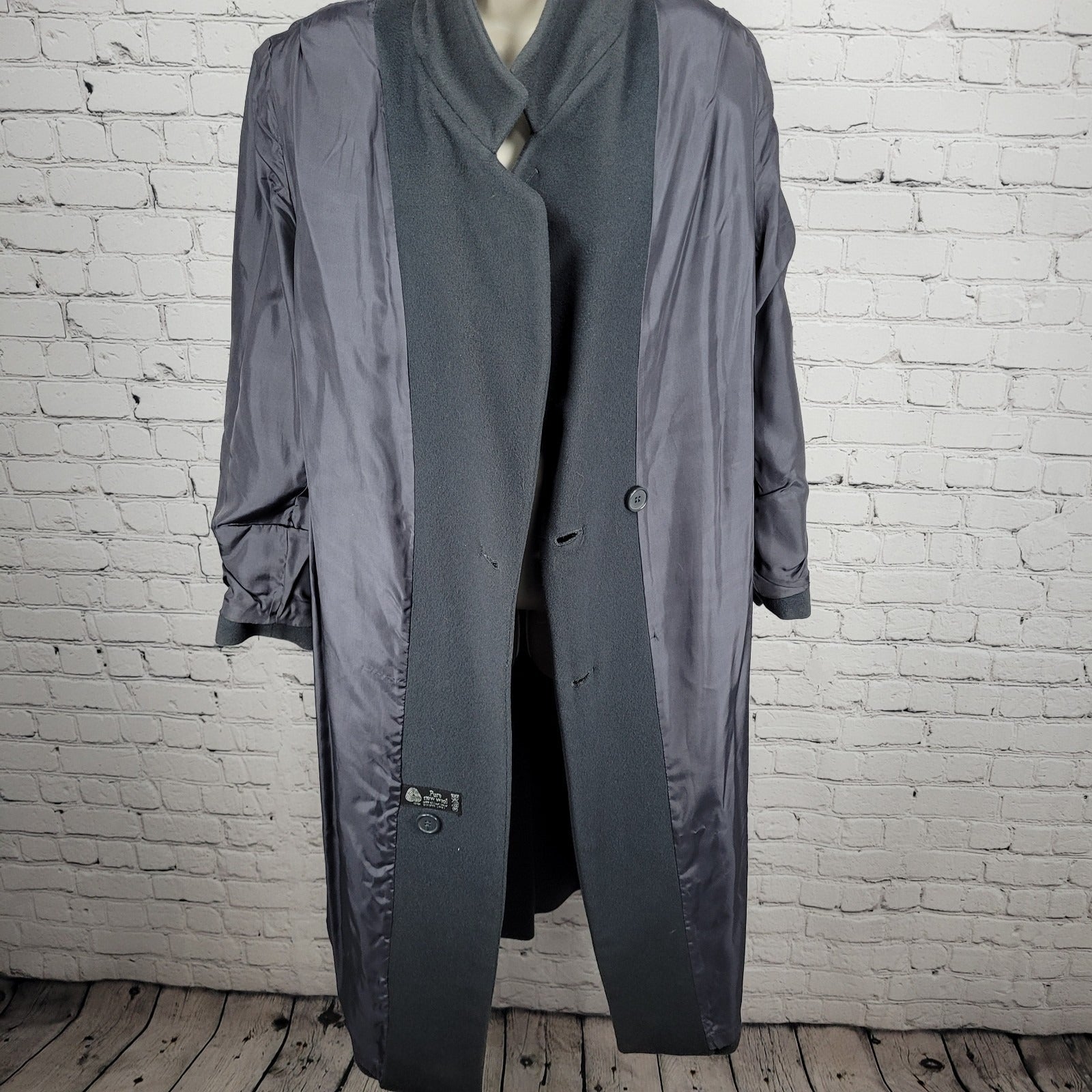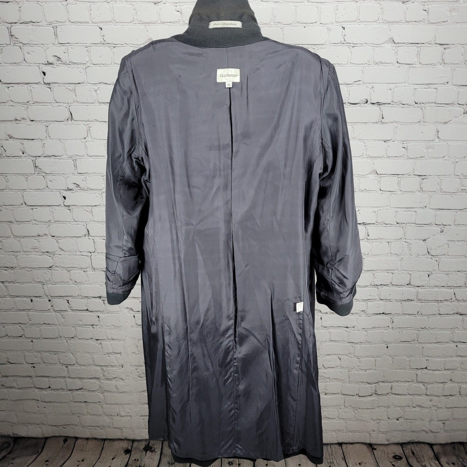 The VTG Glenbrooke Grey 100% Wool Buttoned Double Breasted Pockets Lined Pea Coat in size 10 is a classic and stylish outerwear option for women. Made from high-quality wool with a viscose lining, this long coat features a solid gray color, button closure, and double-breasted pockets. Perfect for various occasions like travel, parties, casual outings, and workwear, this vintage piece exudes timeless charm and sophistication. With its soft shell and collared neckline, this pea coat is a must-have for the fall, winter, and spring seasons.