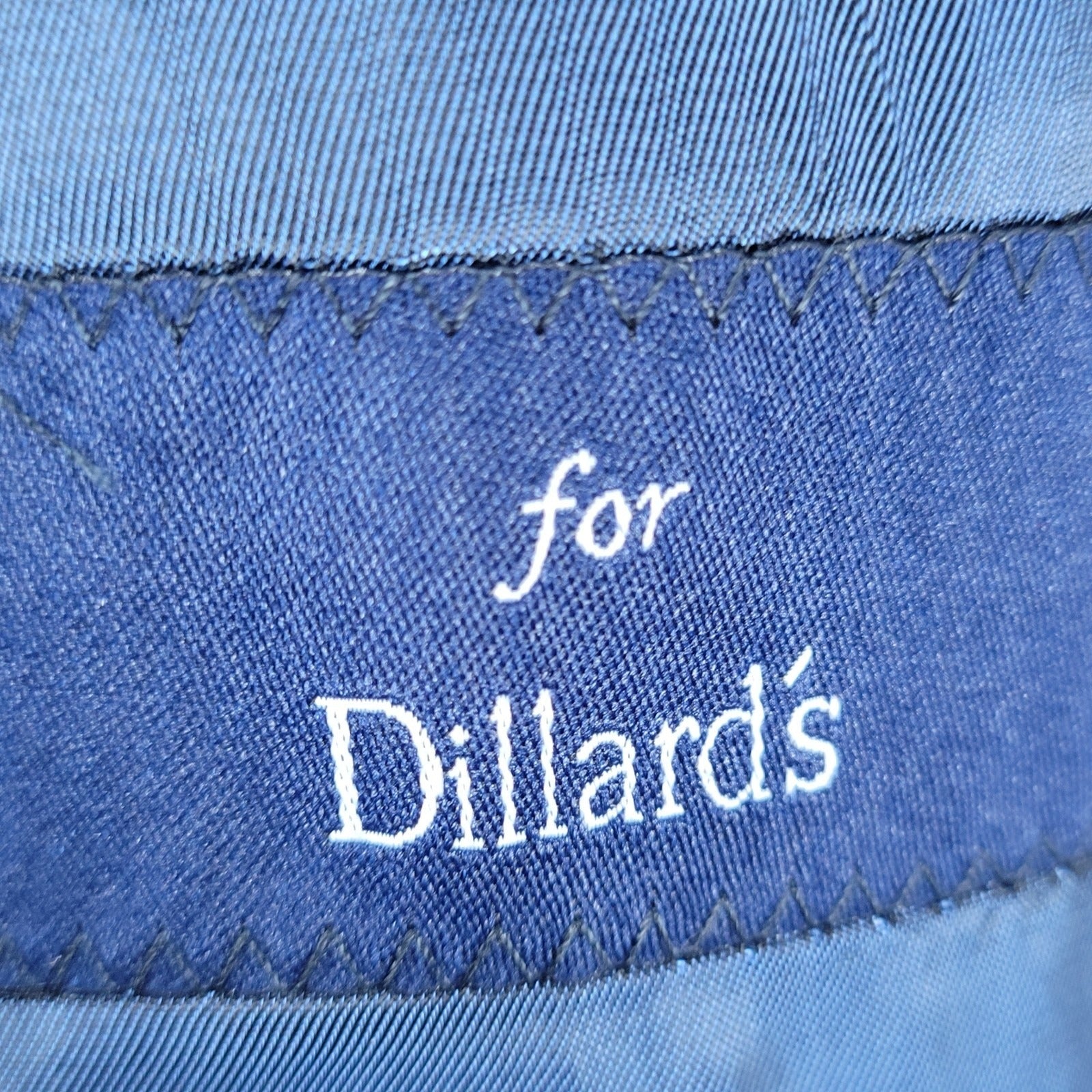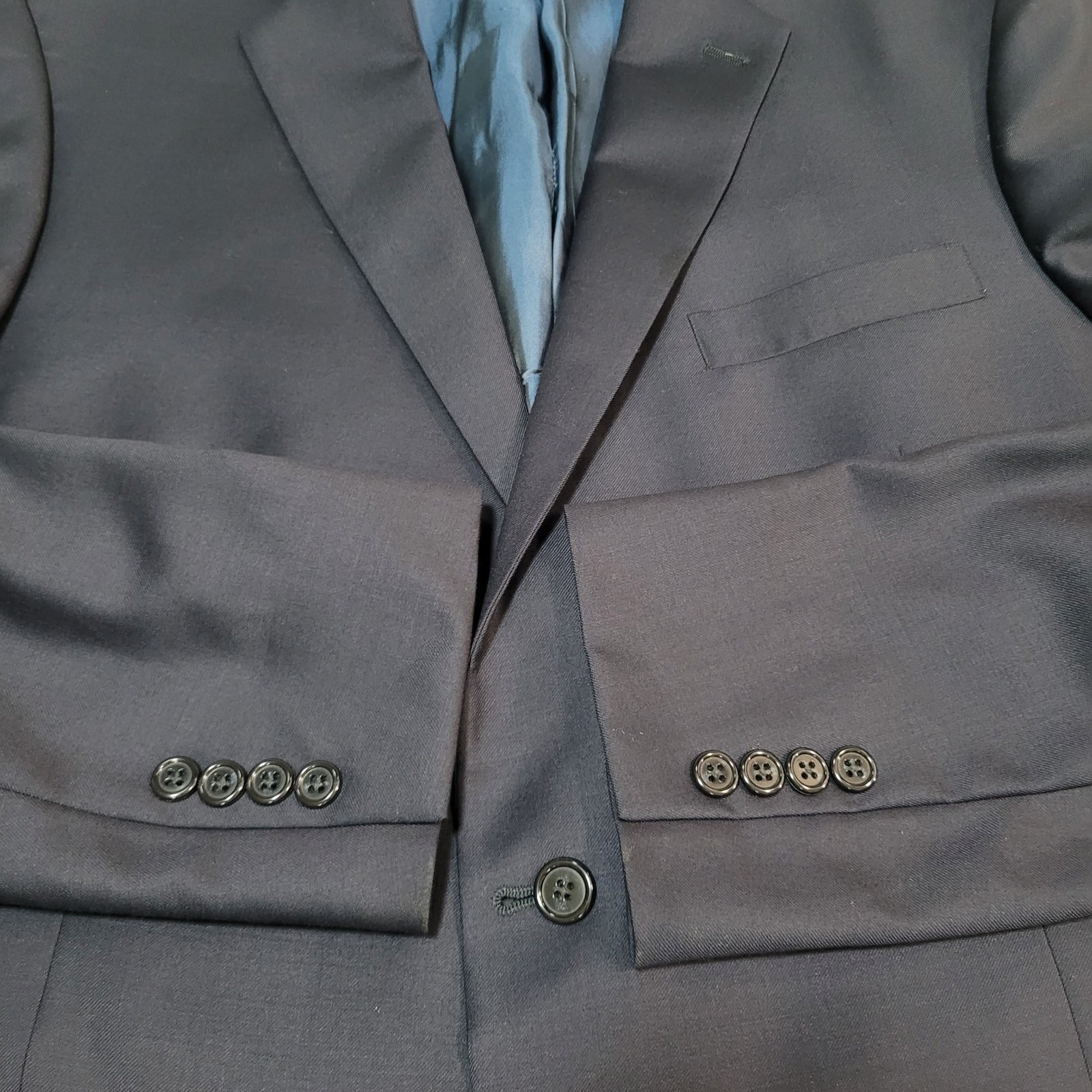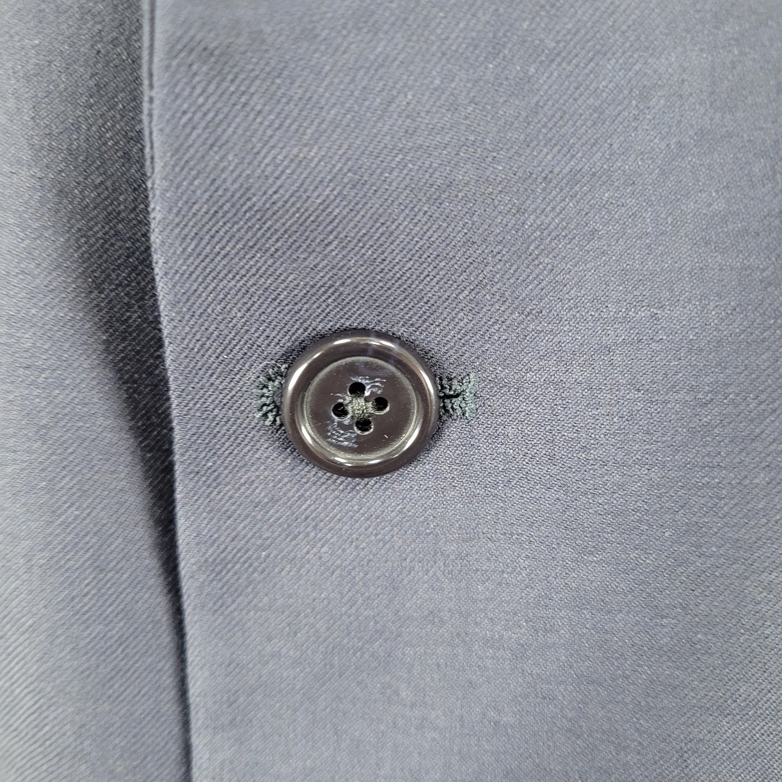 The VTG Hart Schaffner Marx Navy Worsted Wool 2 Button Blazer is a classic and stylish piece made in the USA. This vintage blazer features a four-button sleeve, notch lapel, and single vented back for a sophisticated look. Made of wool in a solid blue color, it is suitable for various occasions such as formal events, business meetings, or even a party. With its timeless design and high-quality material, this blazer exudes a timeless and elegant theme that is sure to make a statement.