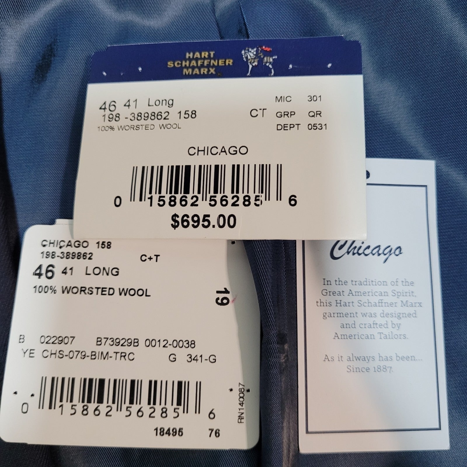 VTG Hart Schaffner Marx Chicago Navy Worsted Wool 2 Button Blazer USA Size 46L