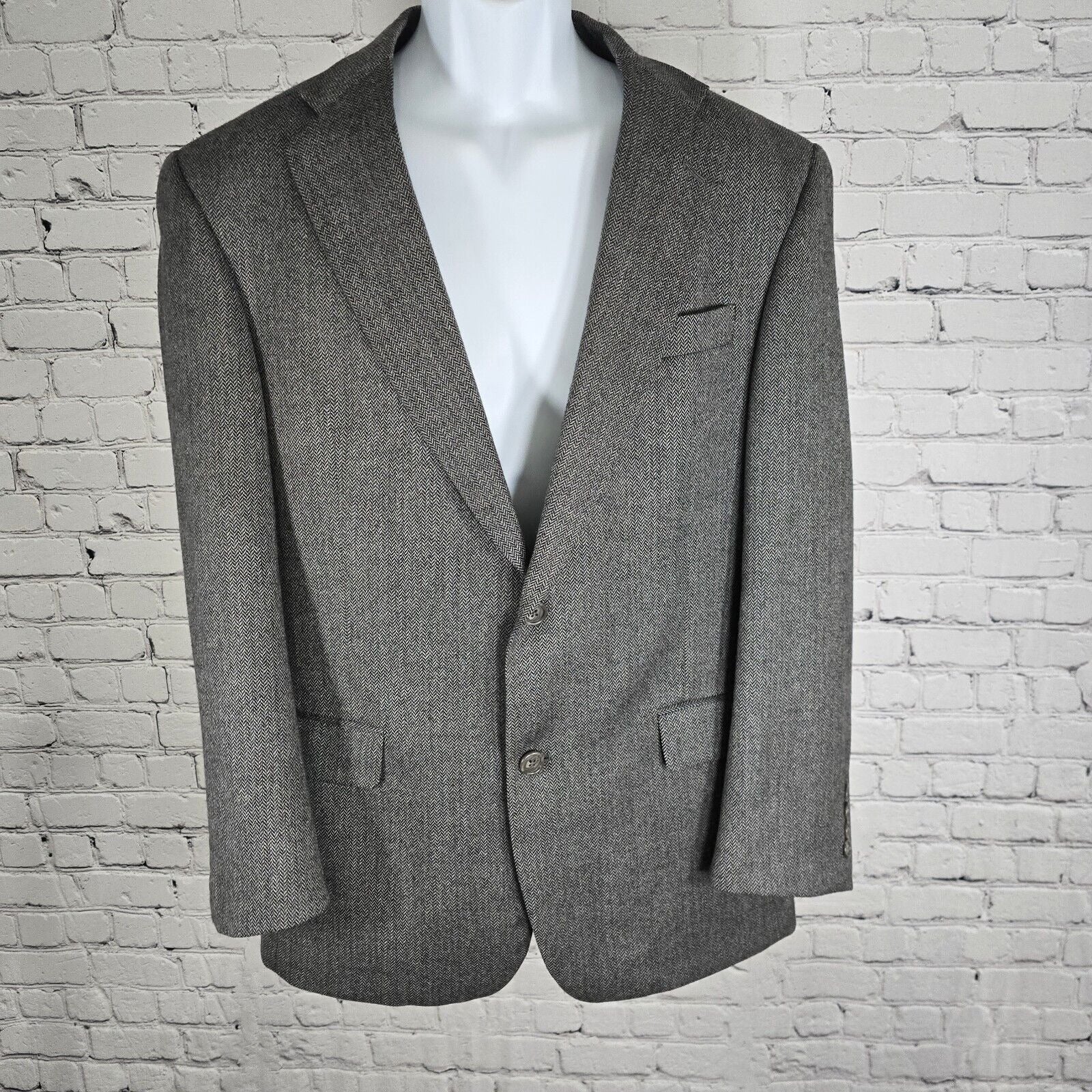 VTG Hart Schaffner Marx Herringbone Gray 2 Button Silk Blend Sport Coat Sz 40R