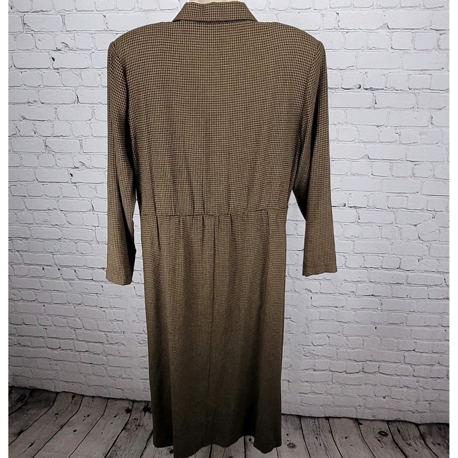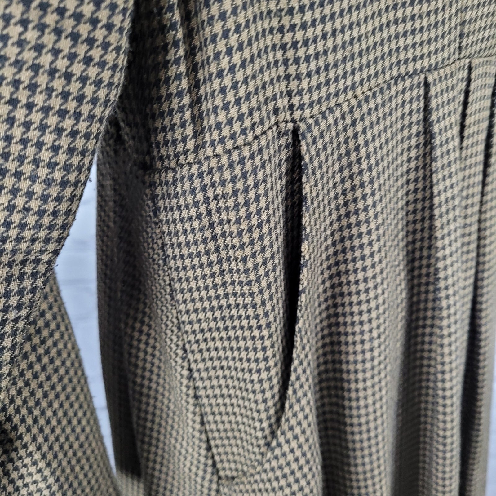 VTG Horchow Black Tan Houndstooth Long Sleeve Pleated Peak Lapel Jacket Dress 12