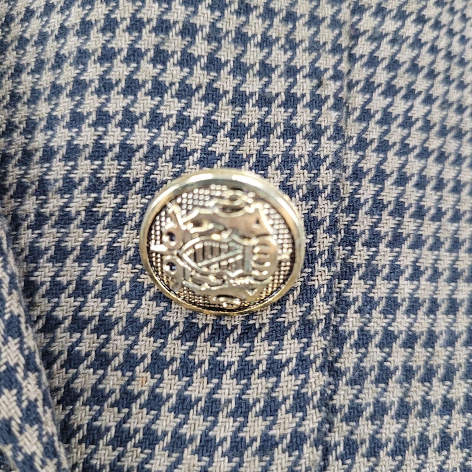 This VTG Horchow Black Tan Houndstooth Long Sleeve Pleated Peak Lapel Jacket Dress in size 12 is a stylish and versatile piece for various occasions such as travel, weddings, parties, or casual outings. The retro-inspired design features a collared neckline, snap closure, and pleated accents, adding a touch of elegance to the brown color palette. Made from a blend of polyester and rayon, this jacket dress is designed for dry clean only and includes pockets for added functionality. Perfect for all seasons, this vintage piece from Horchow is a timeless addition to any woman's wardrobe.