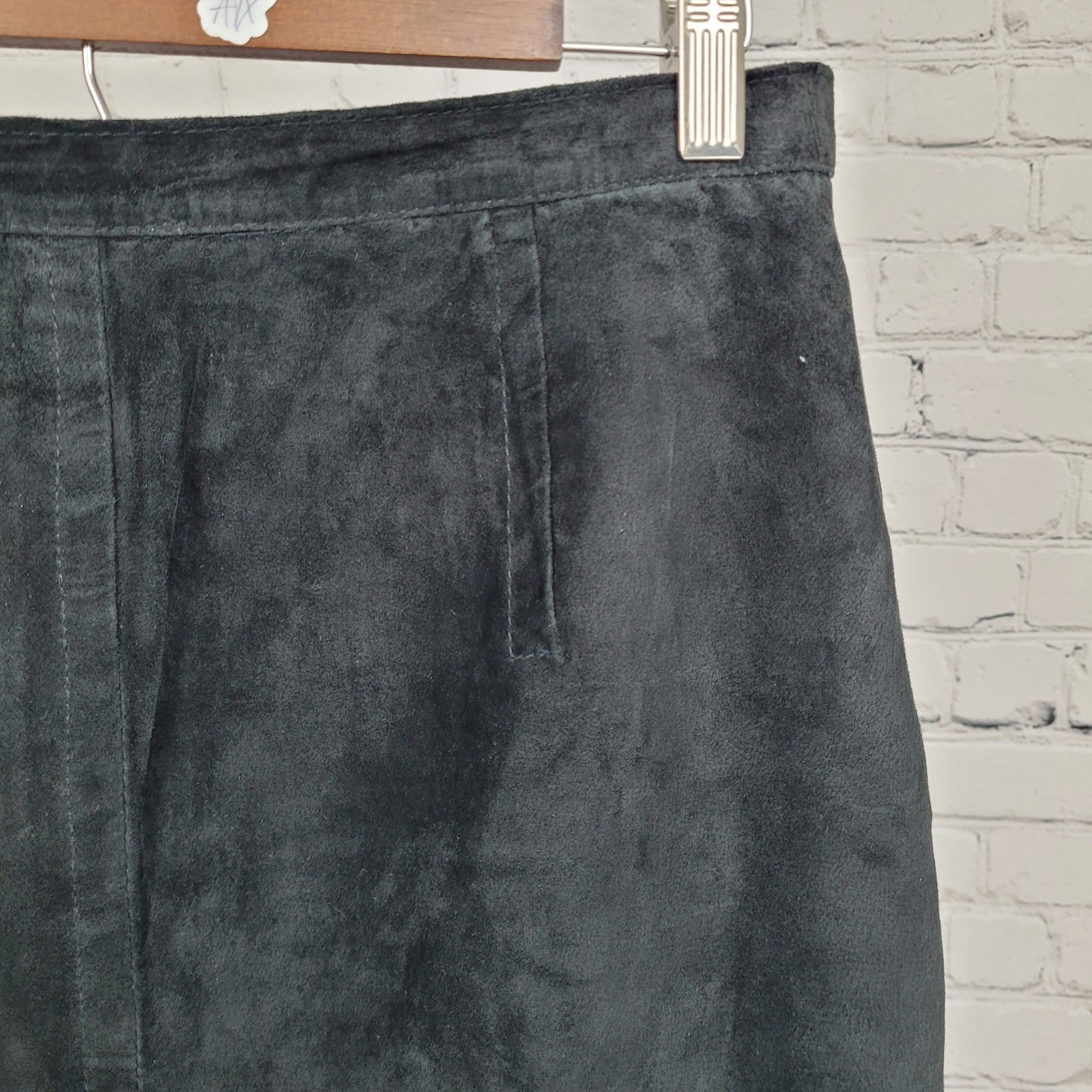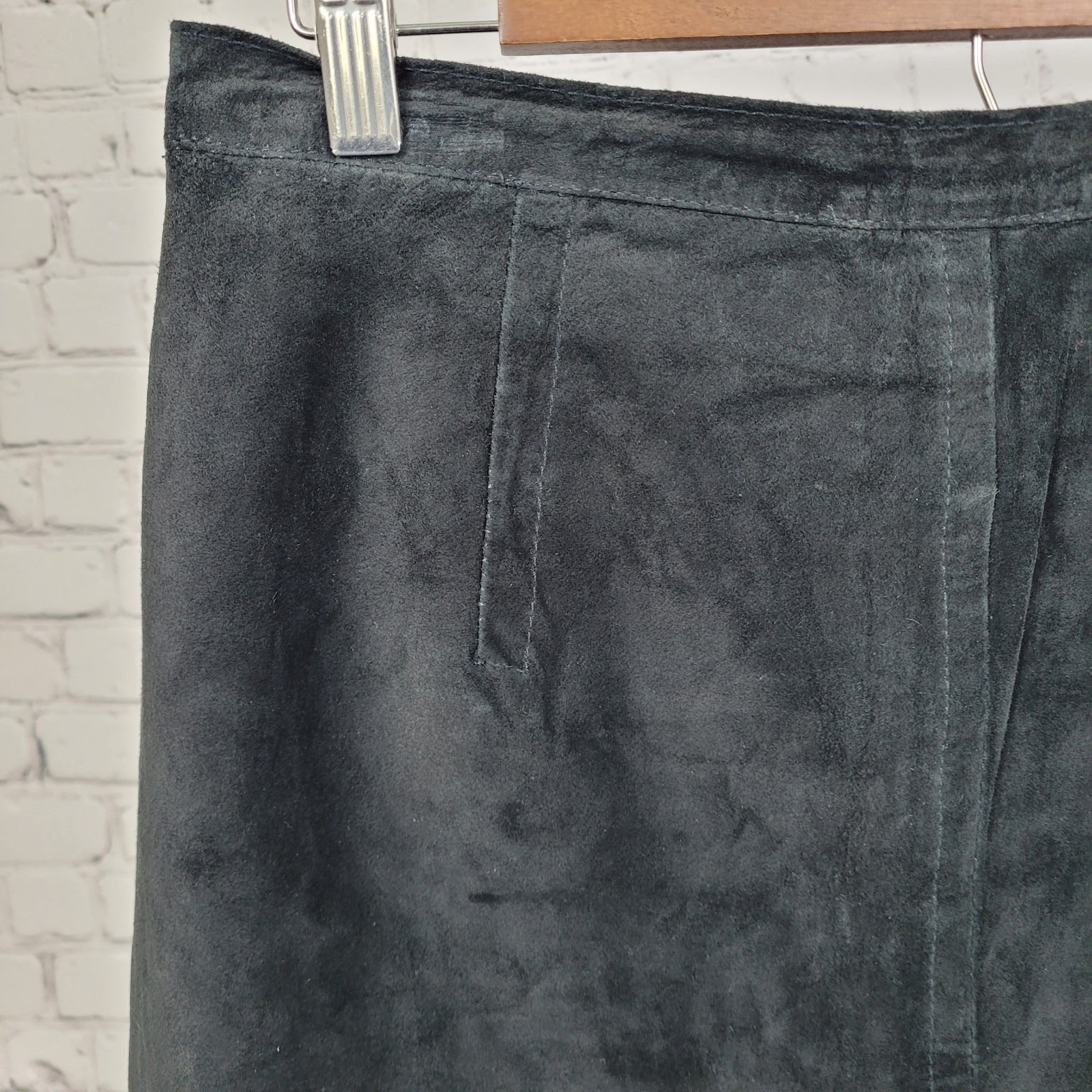 VTG Hunt Club Black Genuine Suede Leather Back Zip Button Lined Mini Skirt 14