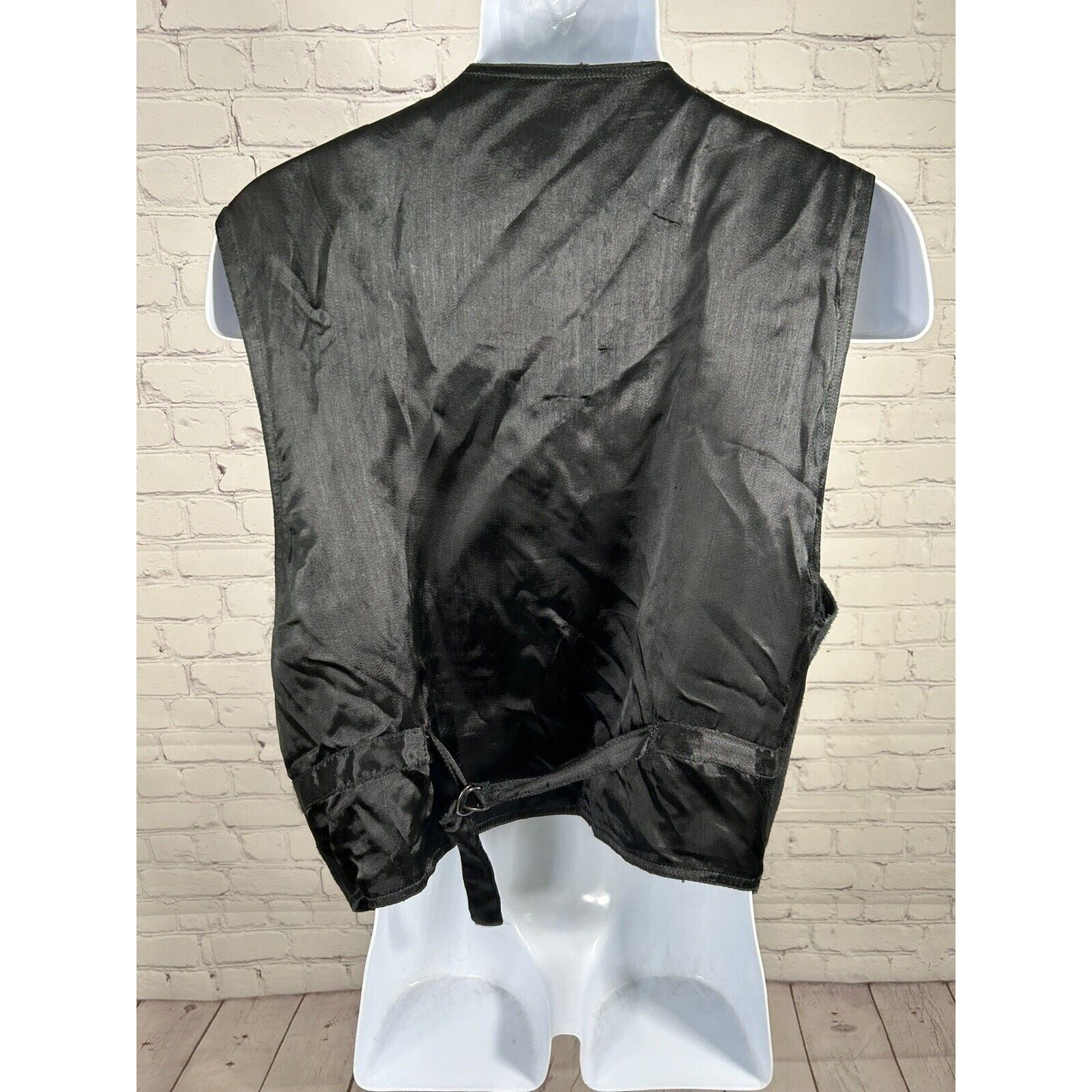 VTG IN PRIVATE Solid Black Genuine Leather Snap Down V Neck Western Vest Men’s L
