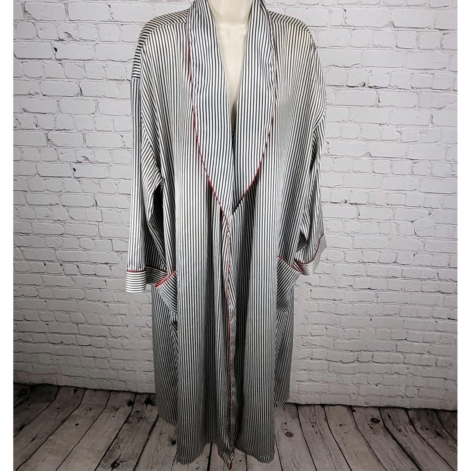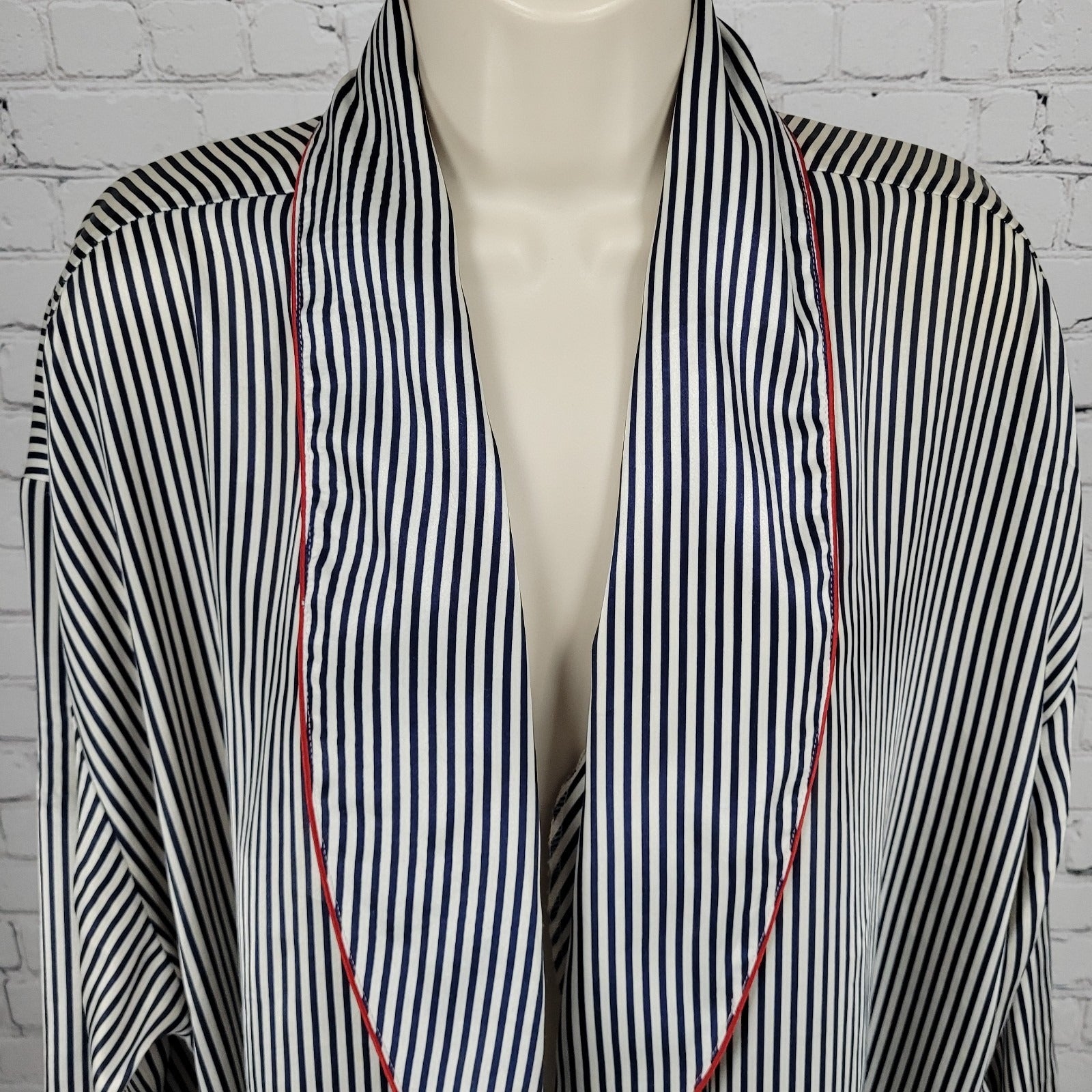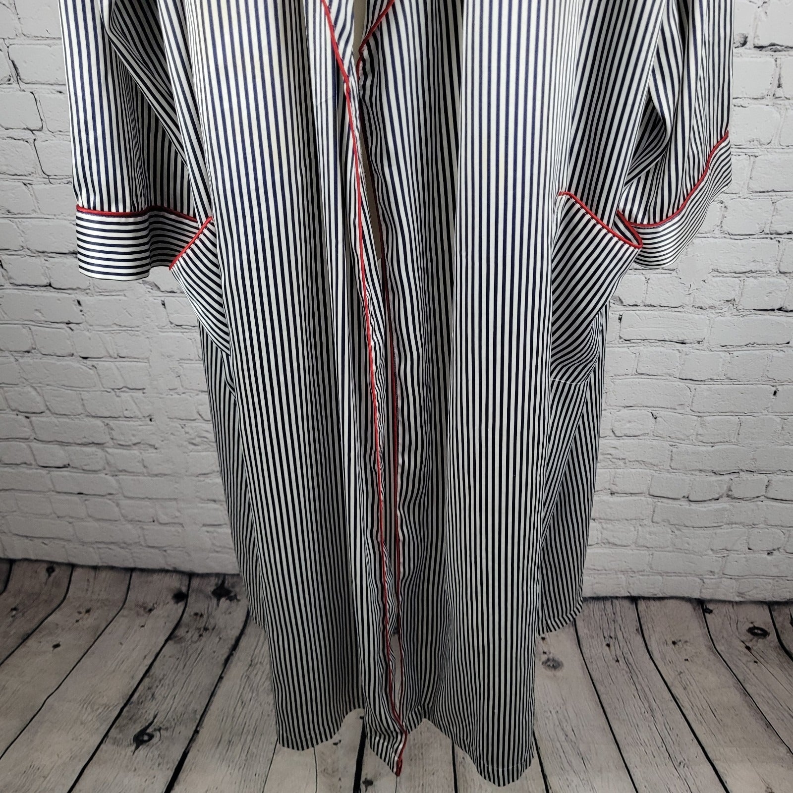 VTG Inner Most Navy White Satin Lightweight Long Sleeve Pockets Robe Size XL