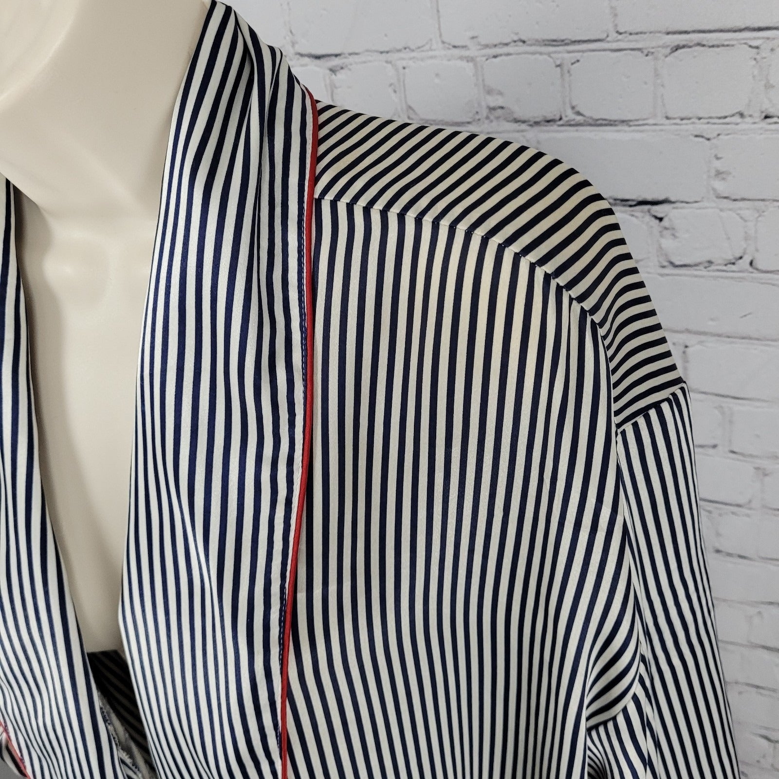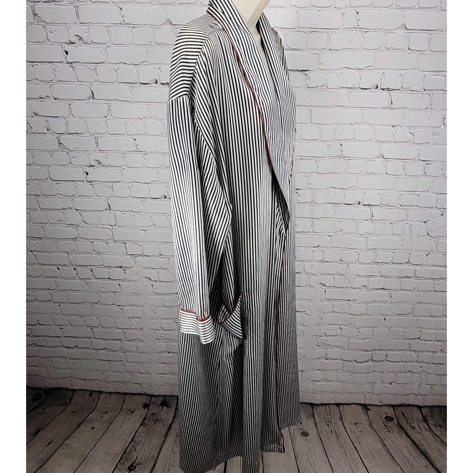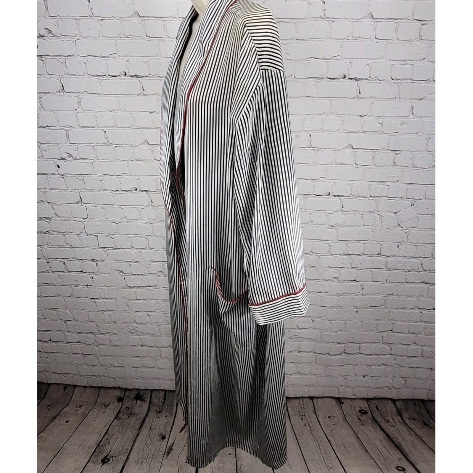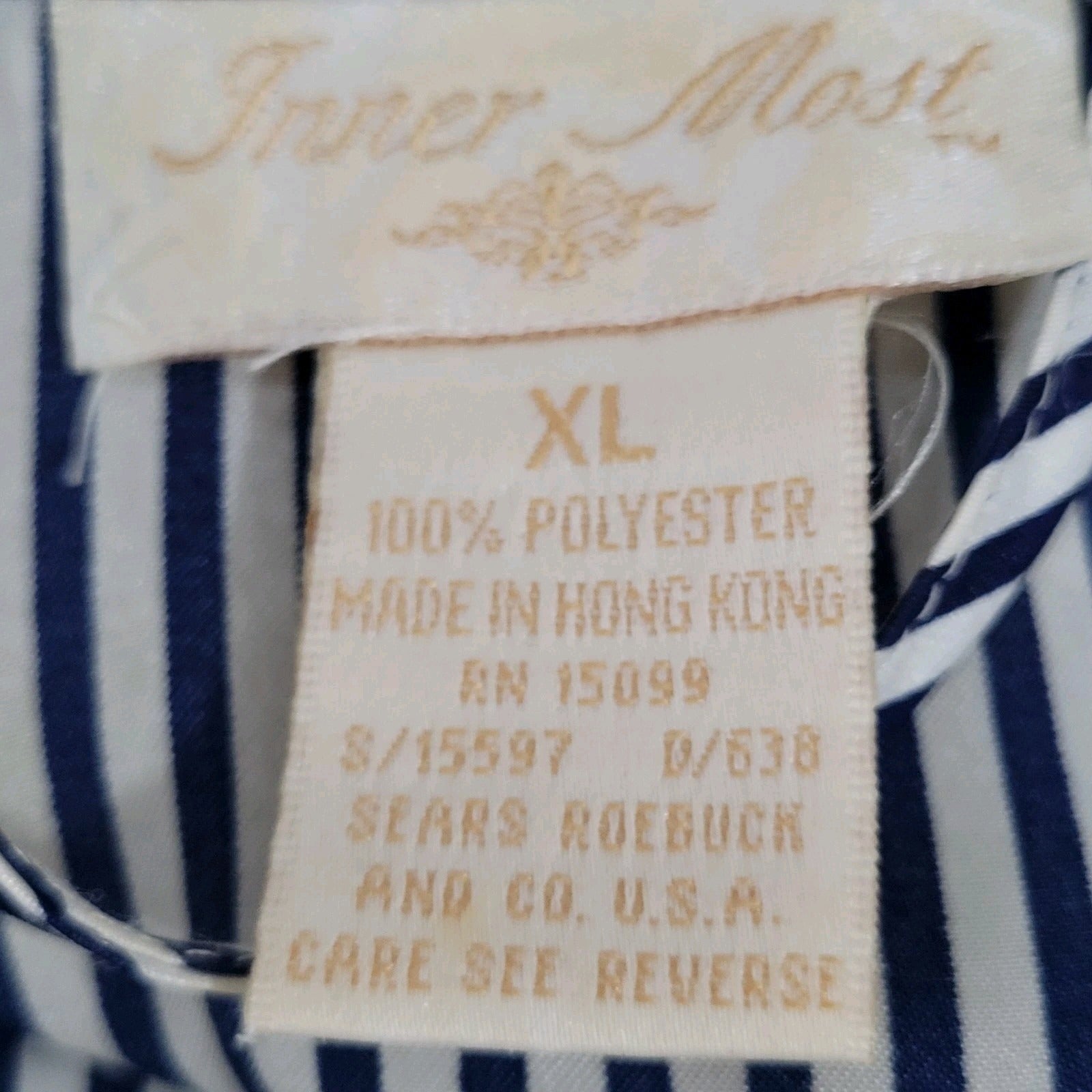 VTG Inner Most Navy White Satin Lightweight Long Sleeve Pockets Robe Size XL