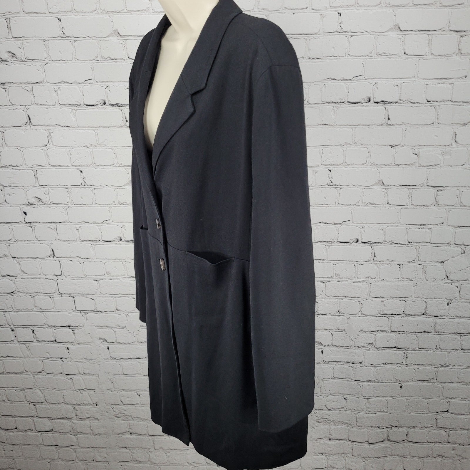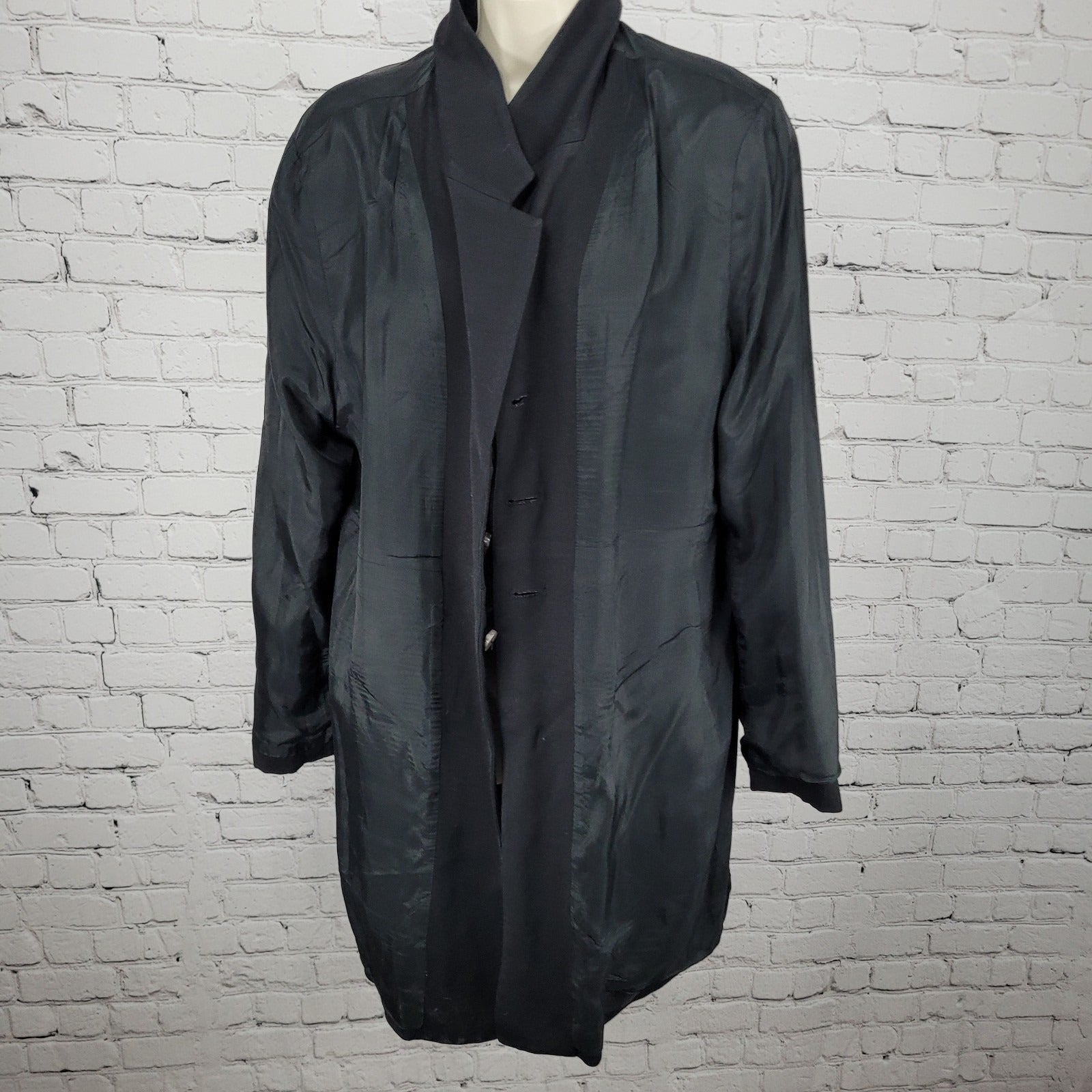 VTG J. Jill Black Wool Blend Stretch Lightweight Buttoned Lined Coat Size 18