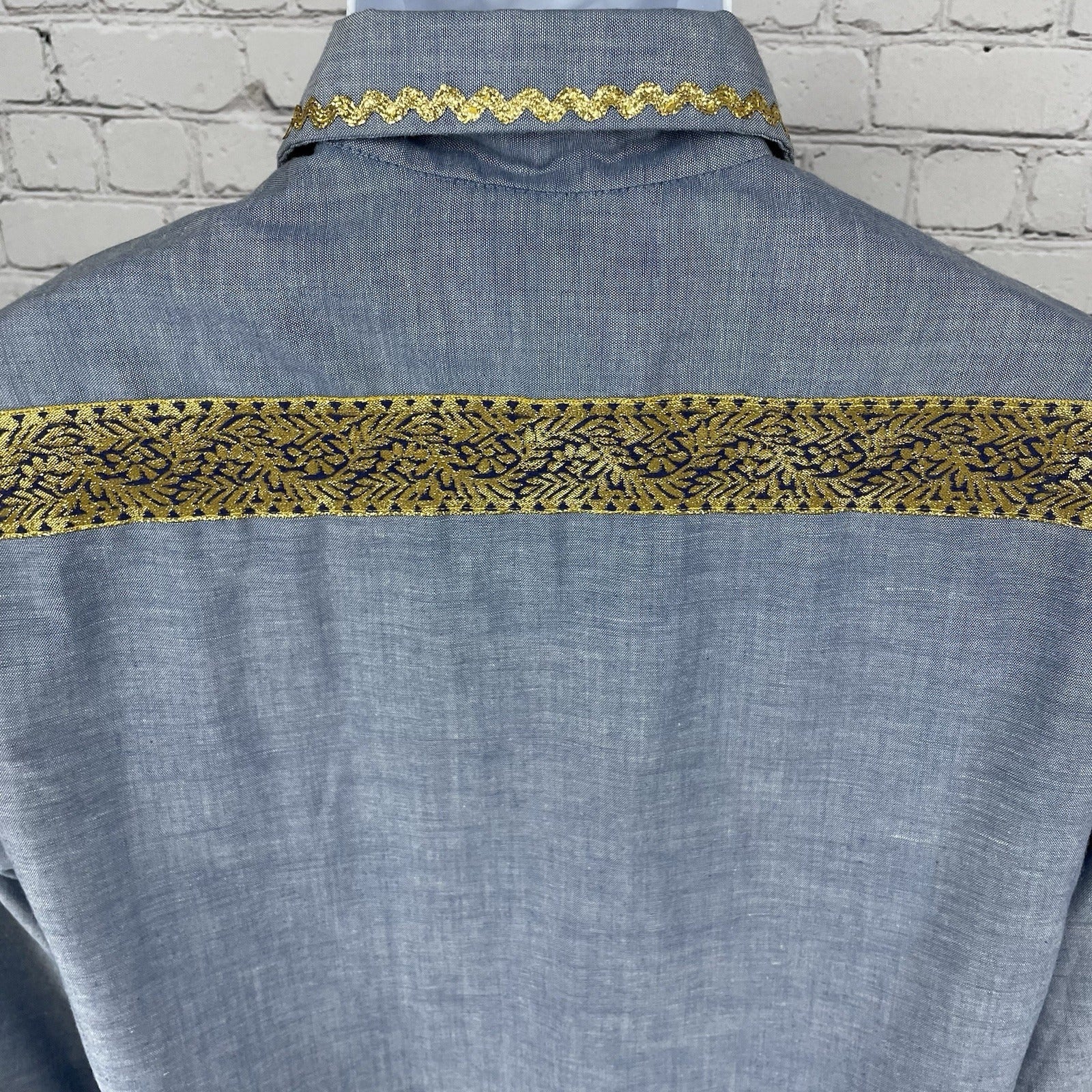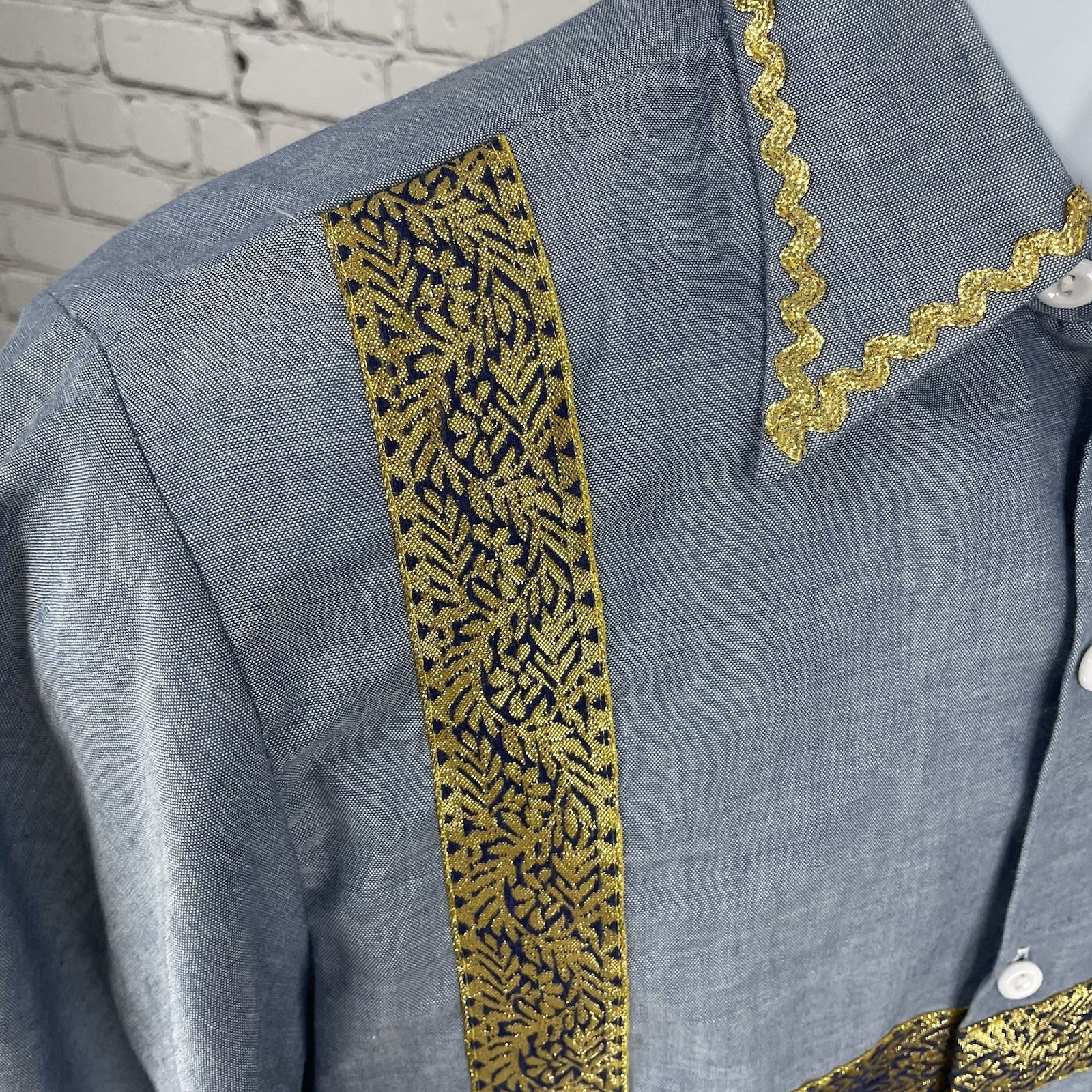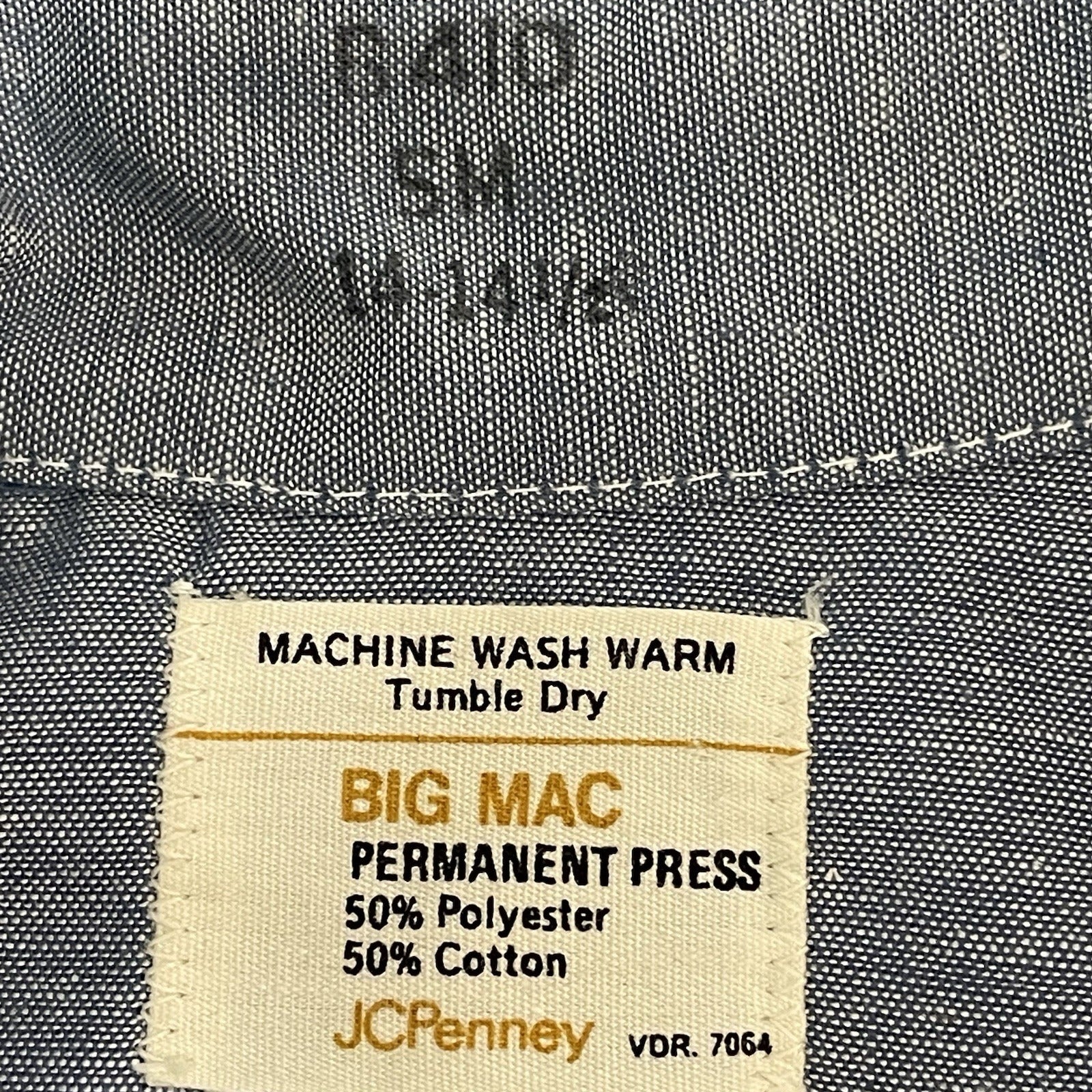 VTG JCPenney Blue Big Mac Gold Accents Button Up Short Sleeve Shirt Size Small S