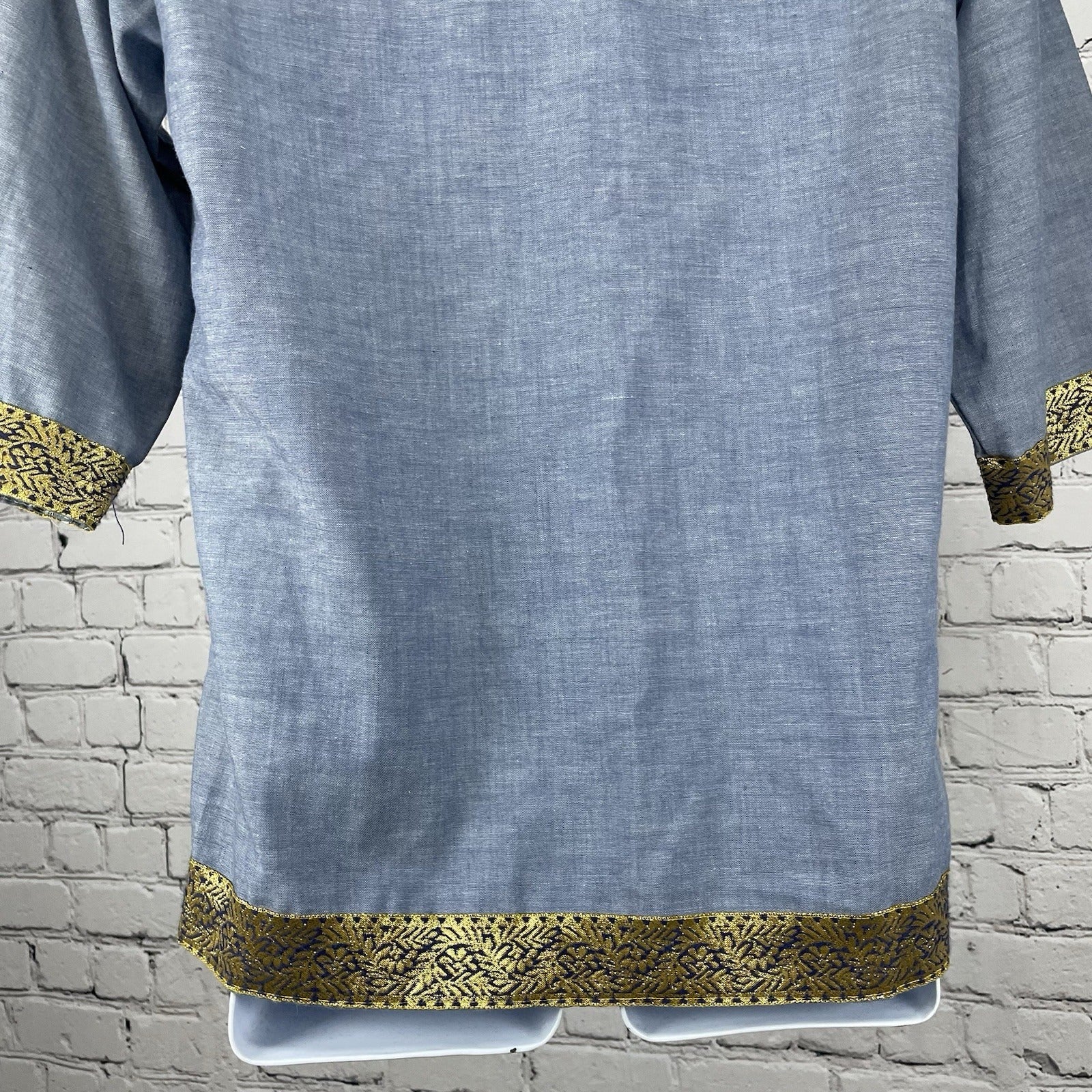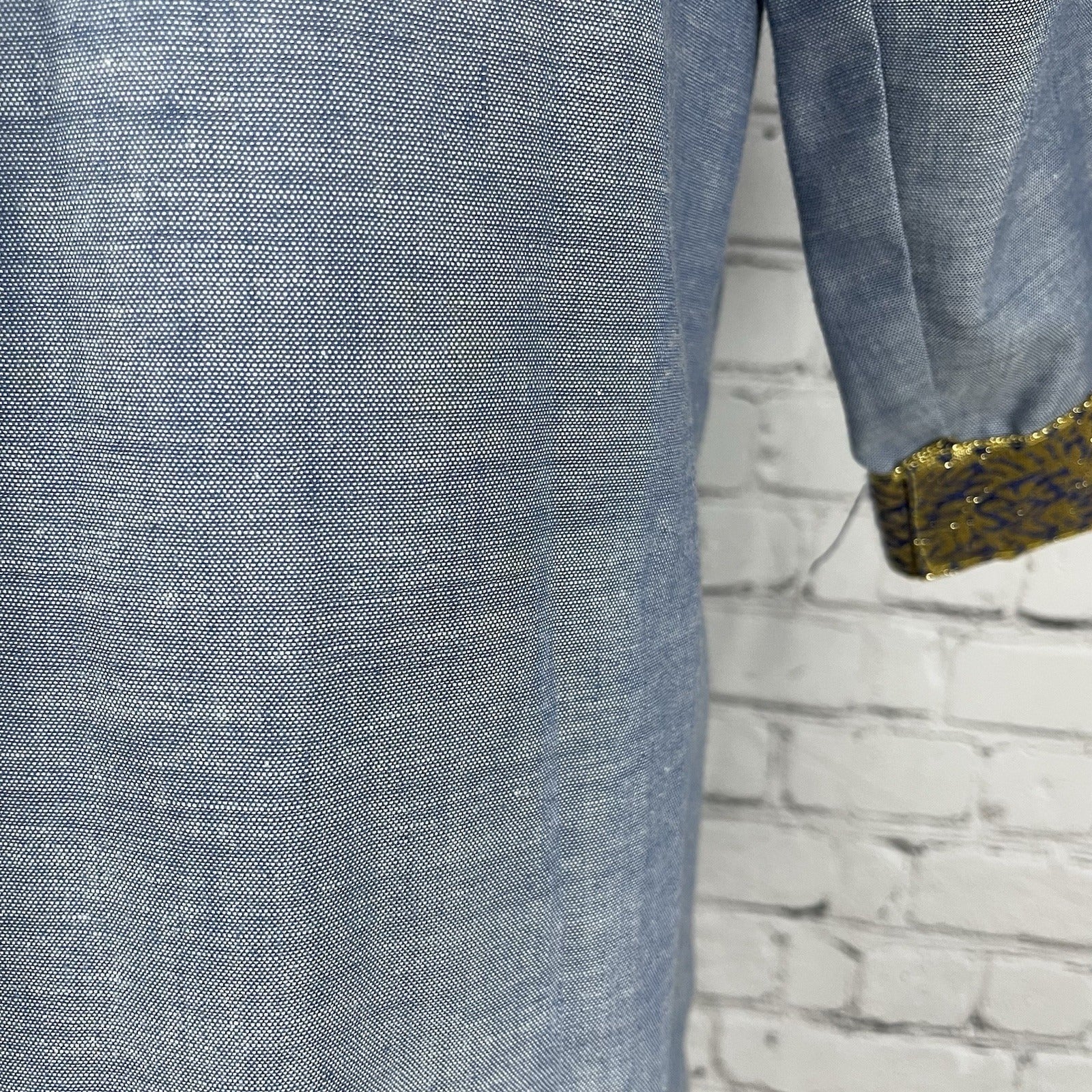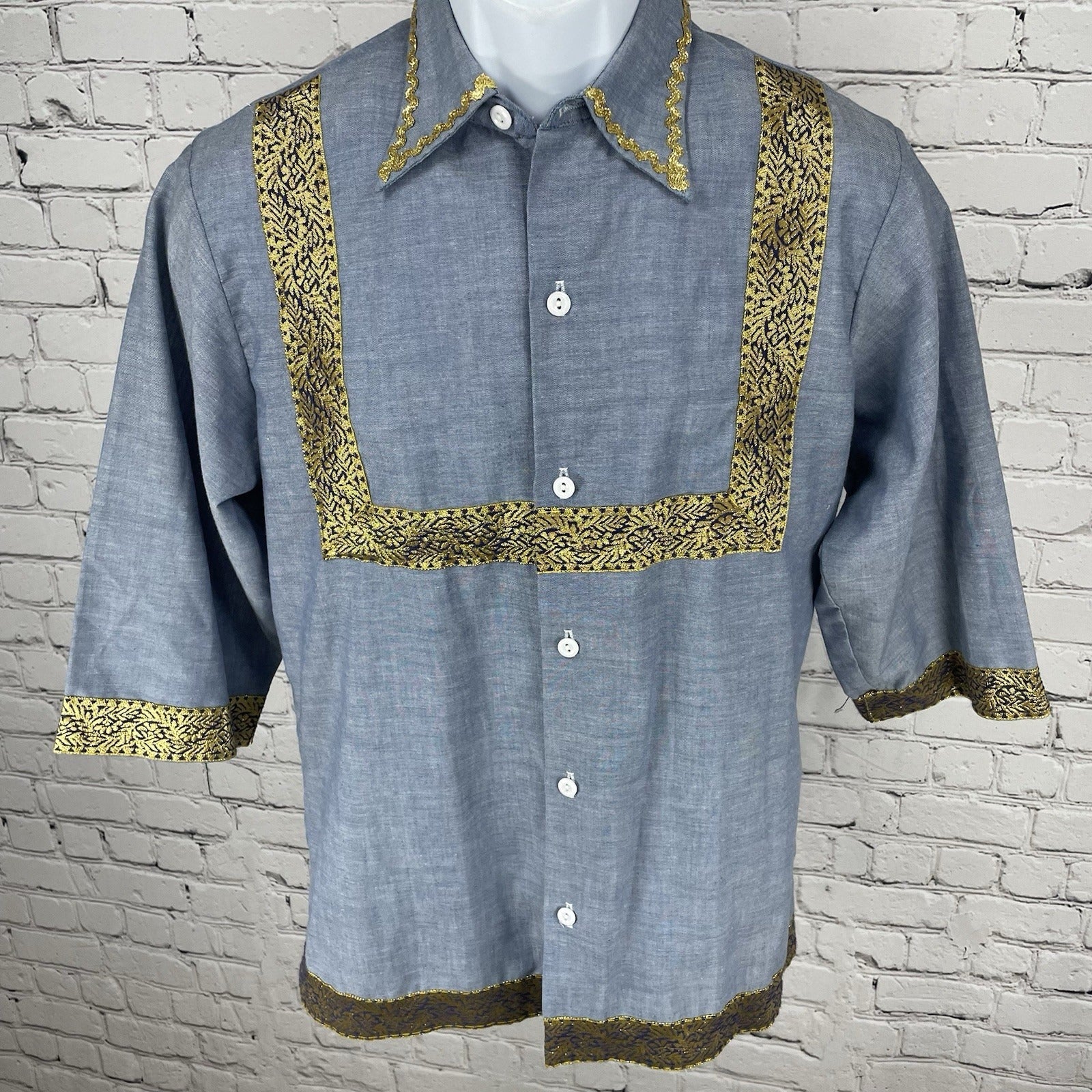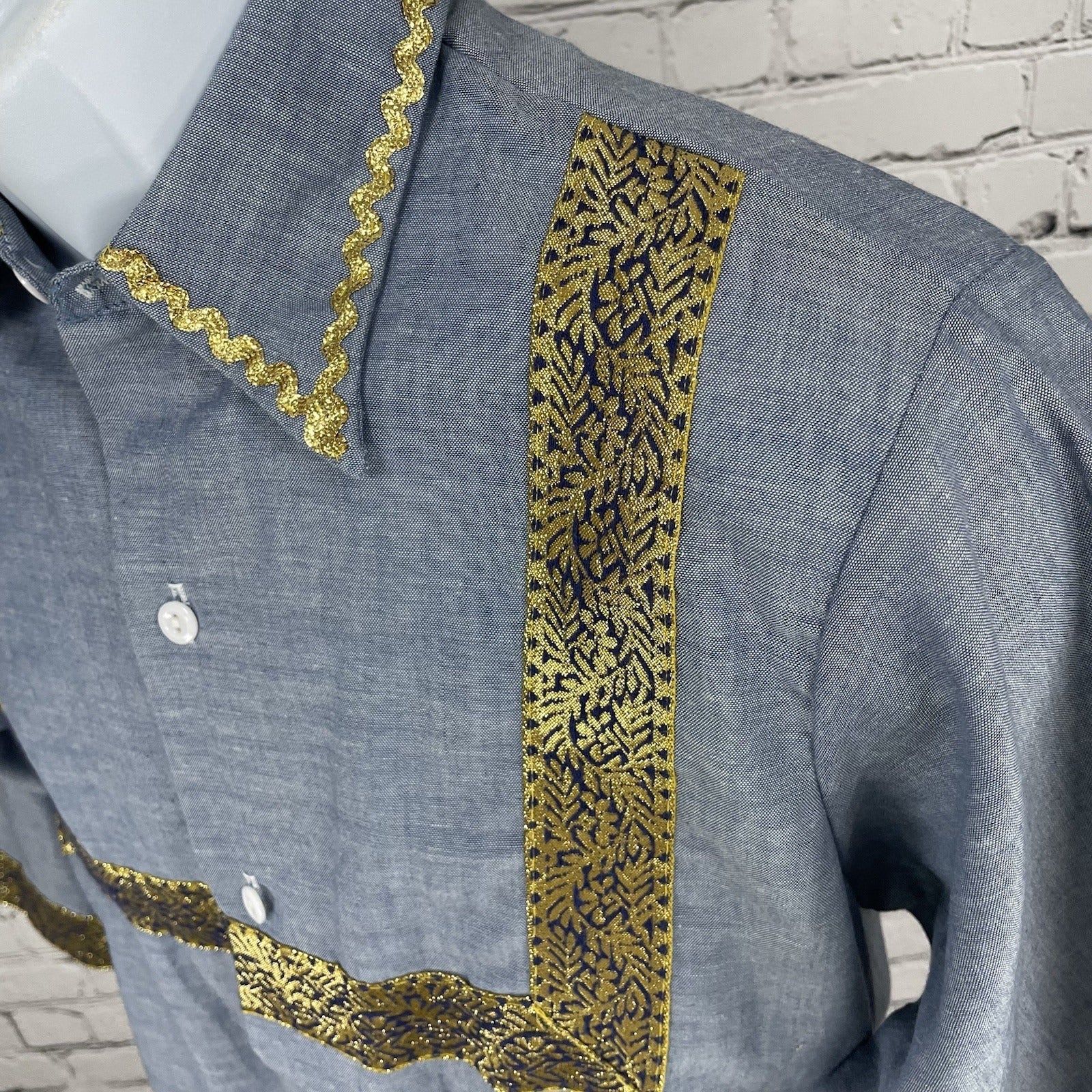 VTG JCPenney Blue Big Mac Gold Accents Button Up Short Sleeve Shirt Size Small S