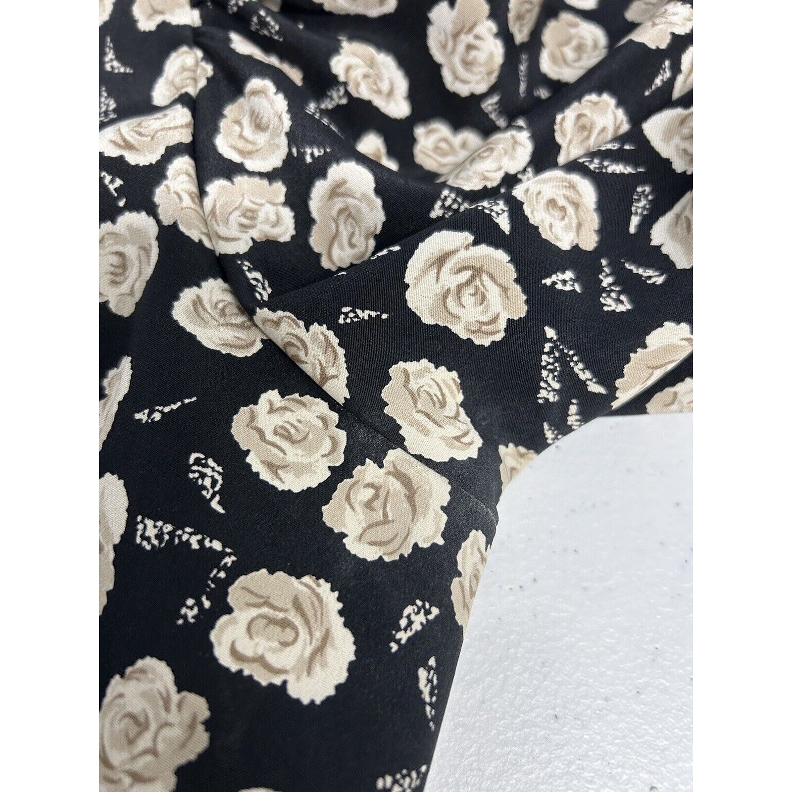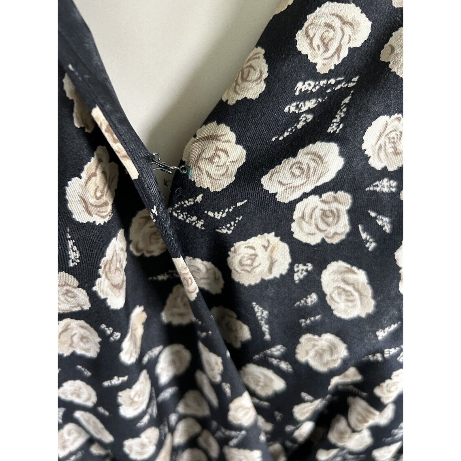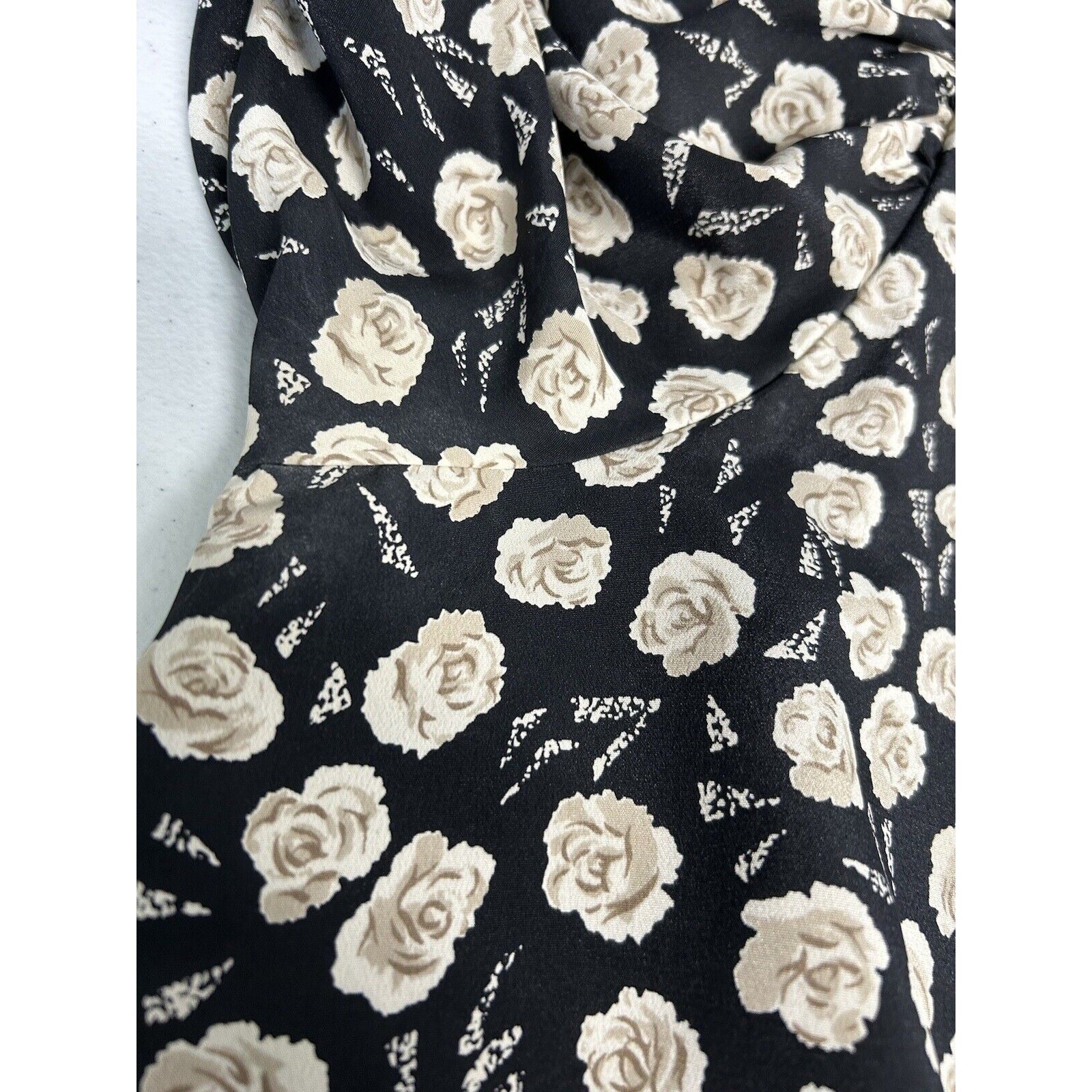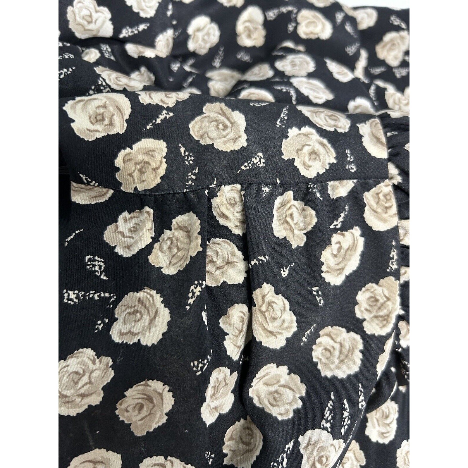 VTG Jo Hanna York Joan Davis Black Floral V Neck Shoulder Pad Faux Wrap Dress XL