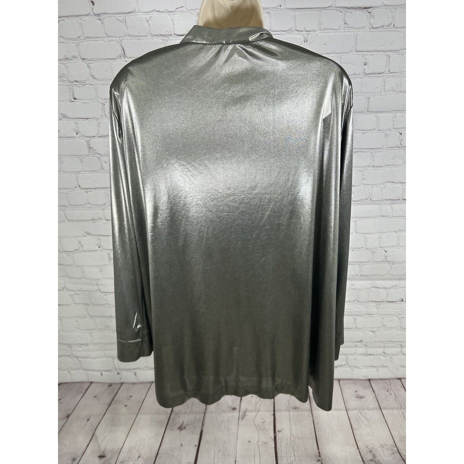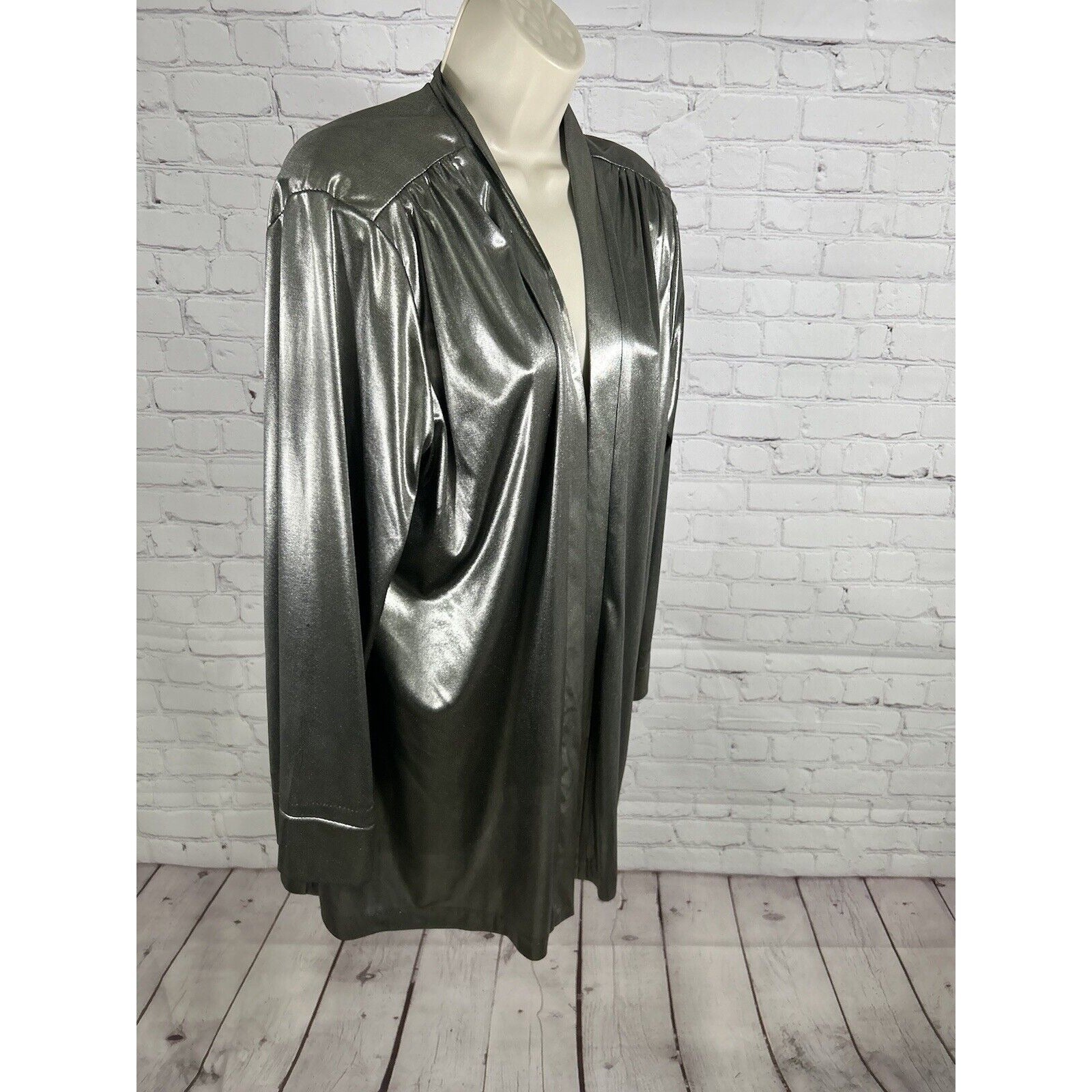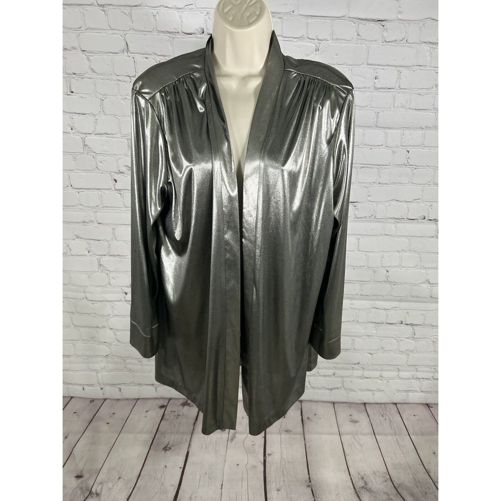 VTG Joanna Silver Semi Sheer Shoulder Pad Open Front Cardigan Women’s Size L
