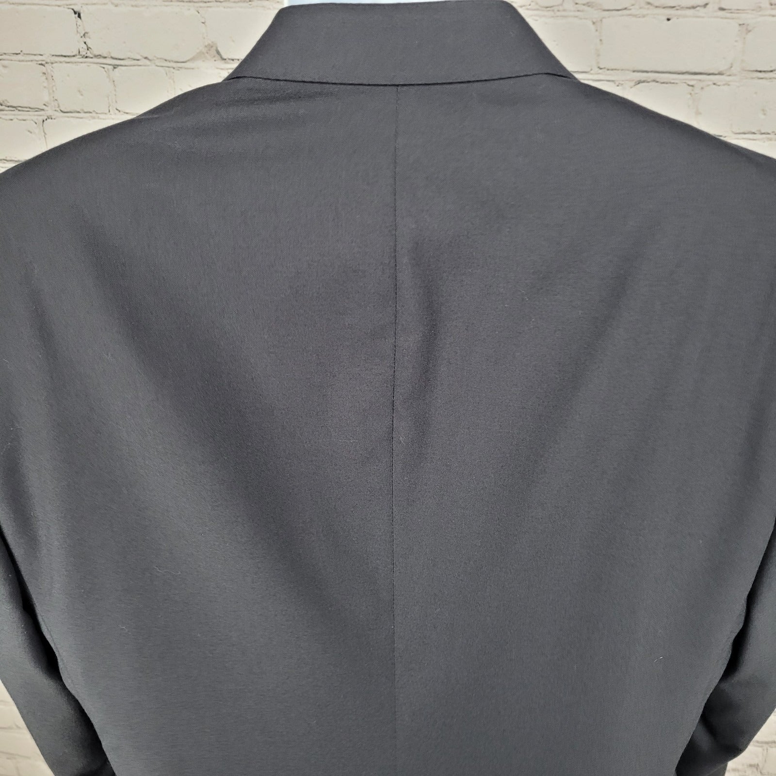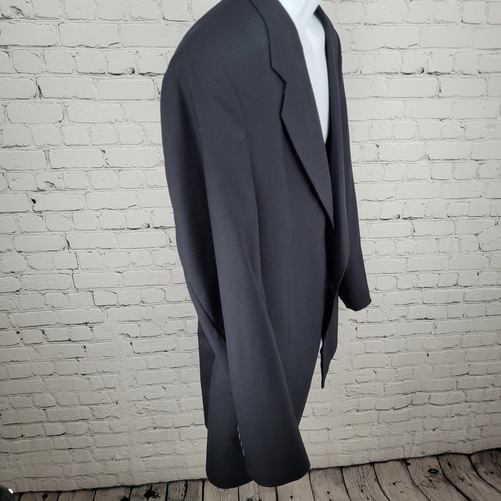 This vintage Jos. A. Bank navy blue wool sport coat exudes a classic American style with its two-button vent notch design. Made in the USA, this blazer is tailored for a men's size 44L, showcasing the brand's reputation for quality craftsmanship. The notch lapel adds a touch of sophistication to this timeless piece, making it a versatile and stylish addition to any man's wardrobe.