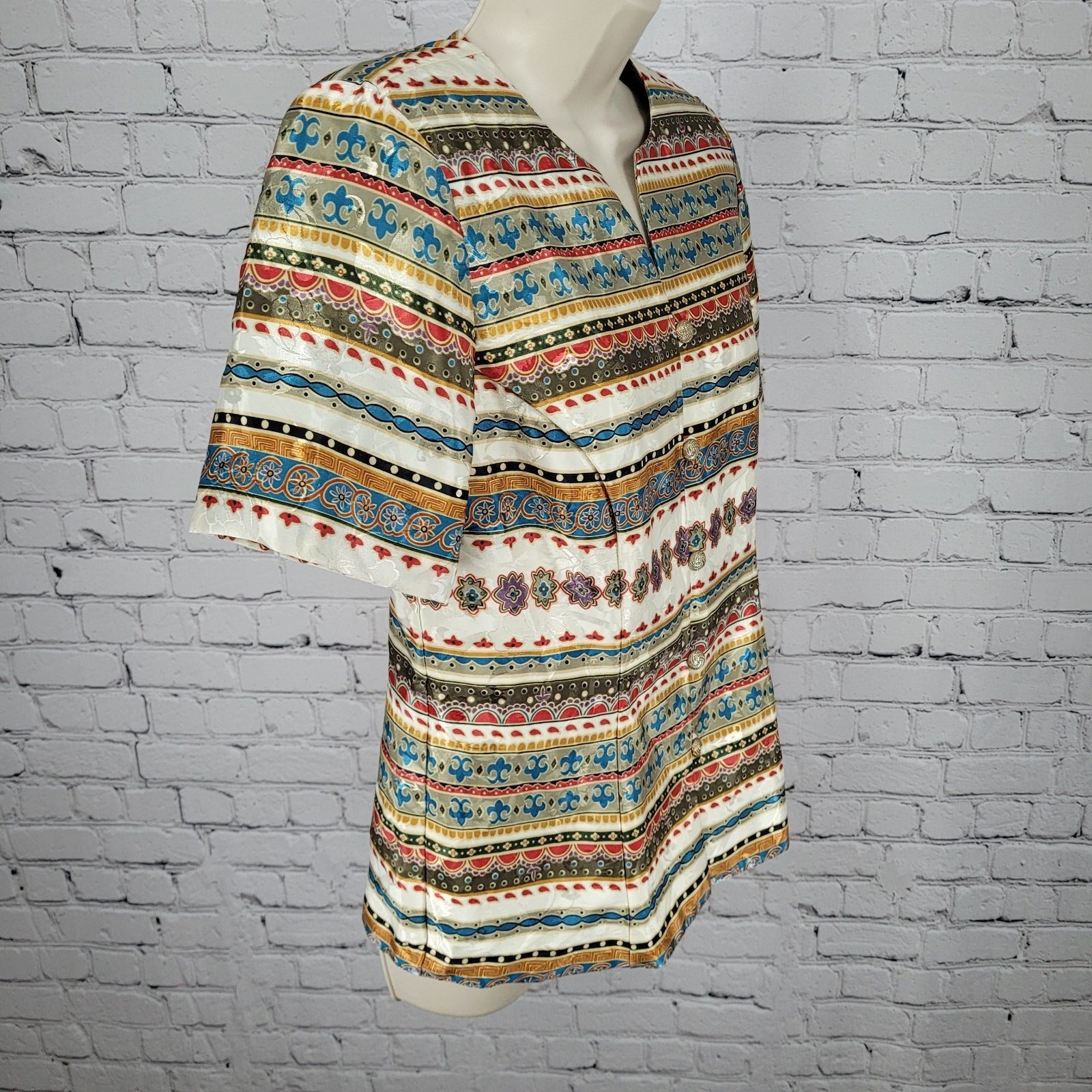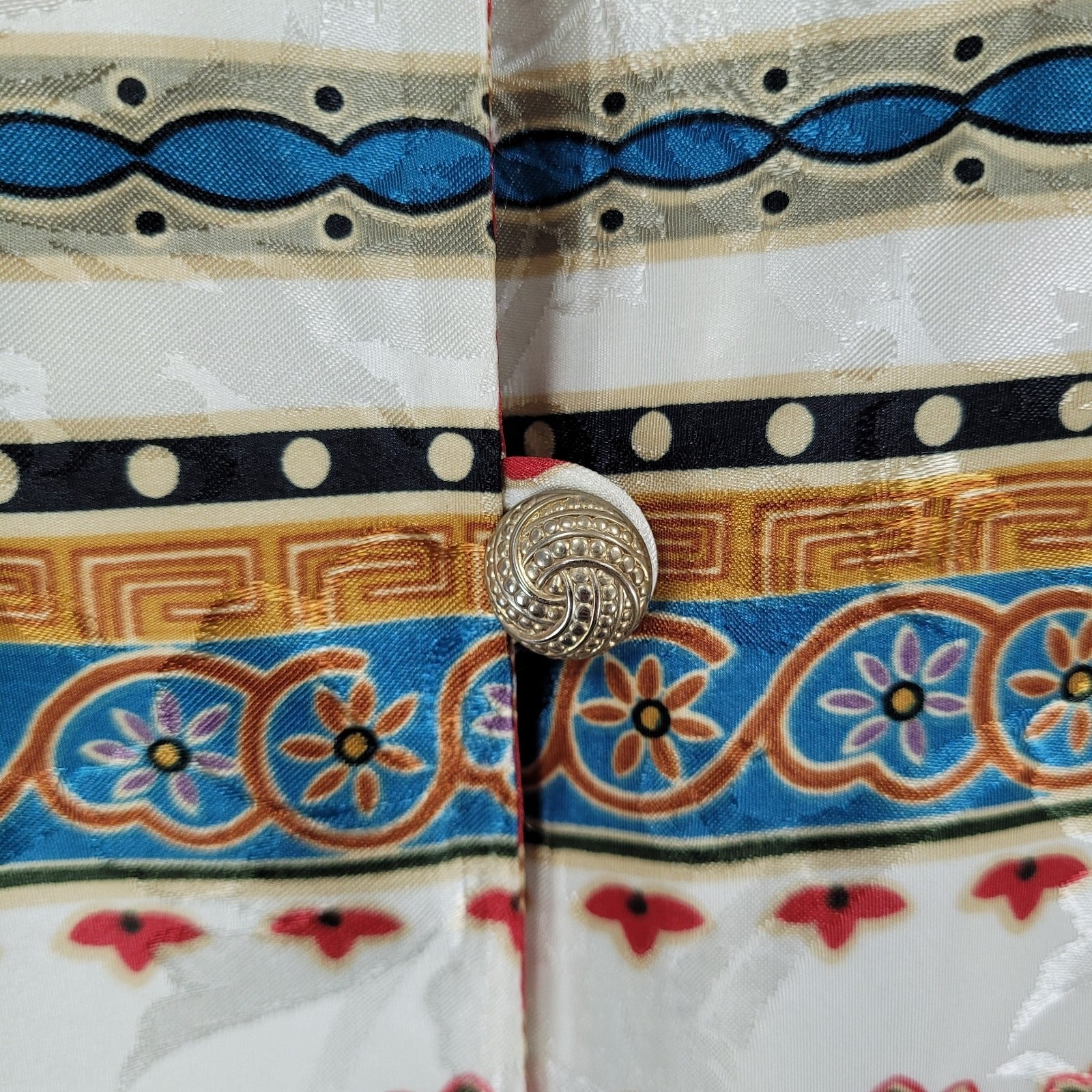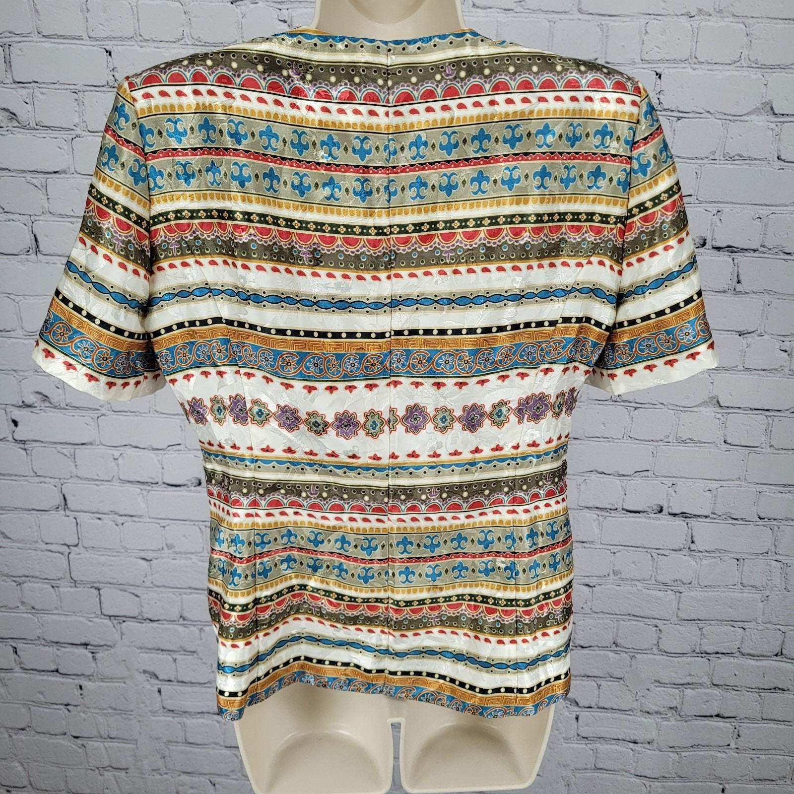 VTG Lady Carol Satin Multicolor Ornate Gold Button Top Blouse USA Made Size 8P