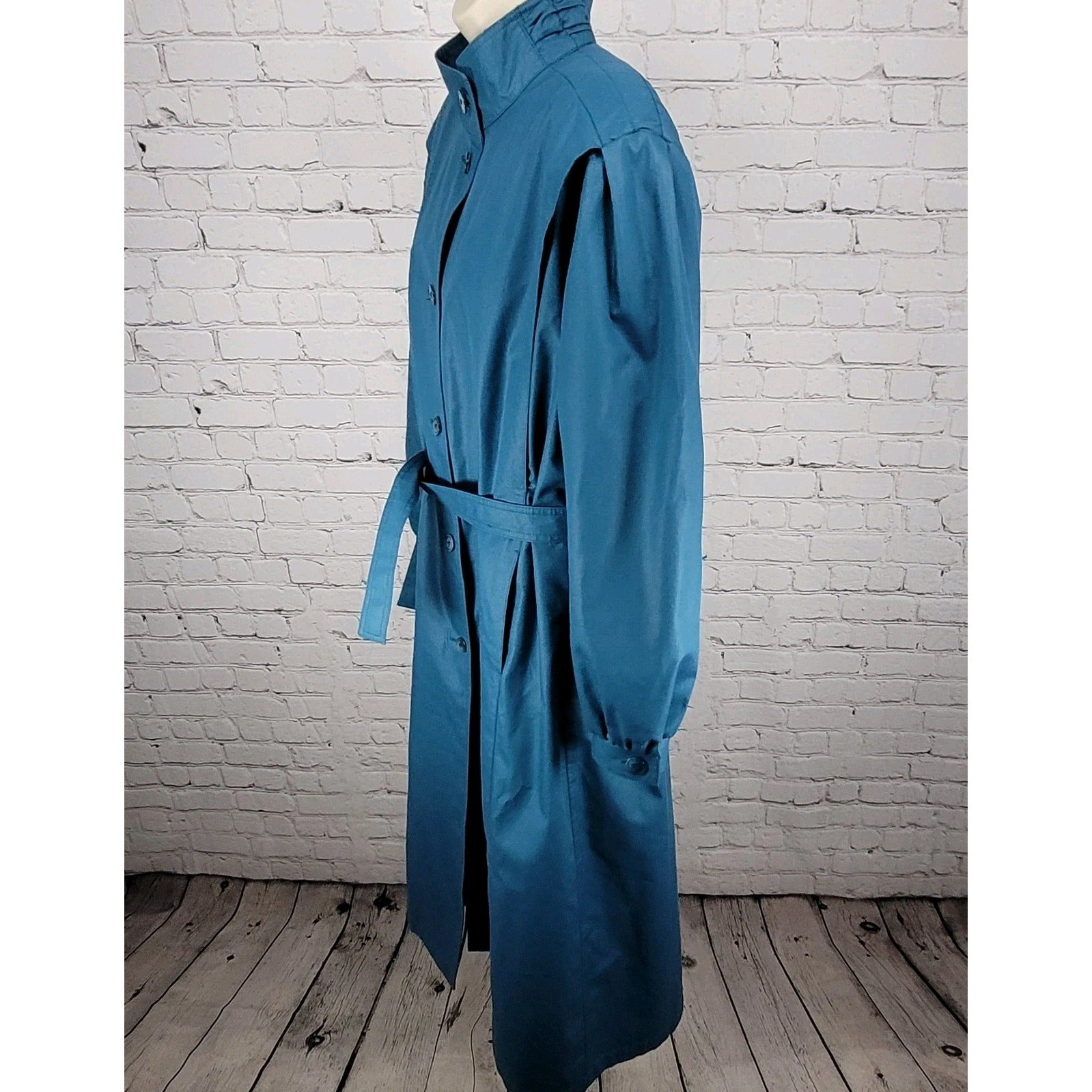 VTG London Fog Maincoats Blue Belt Thinsulate Zip Liner Overcoat Trench USA 14R