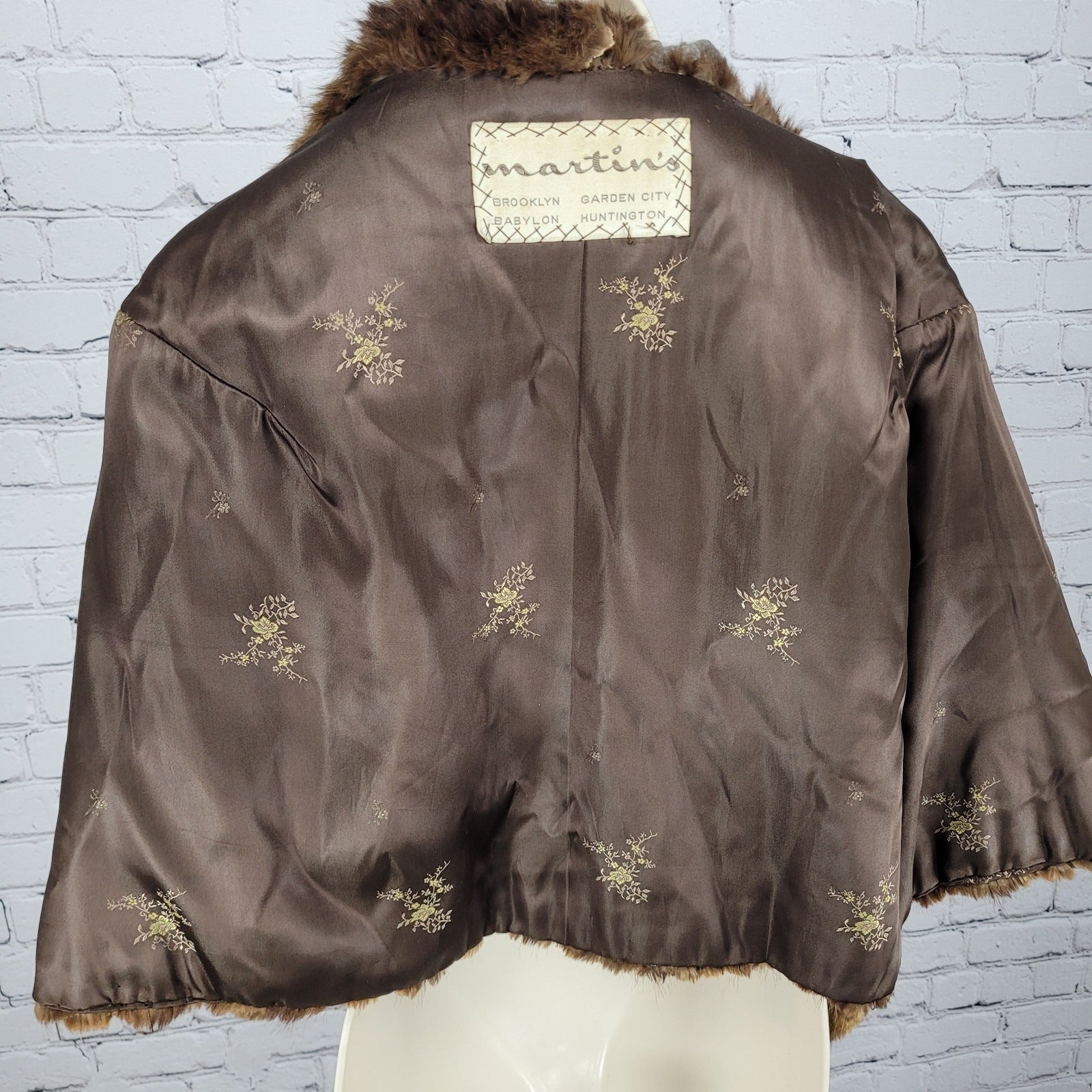 VTG Martini's Brown Genuine Mink Fur Shawl Collar Shrug Open Cape Coat O/S *read