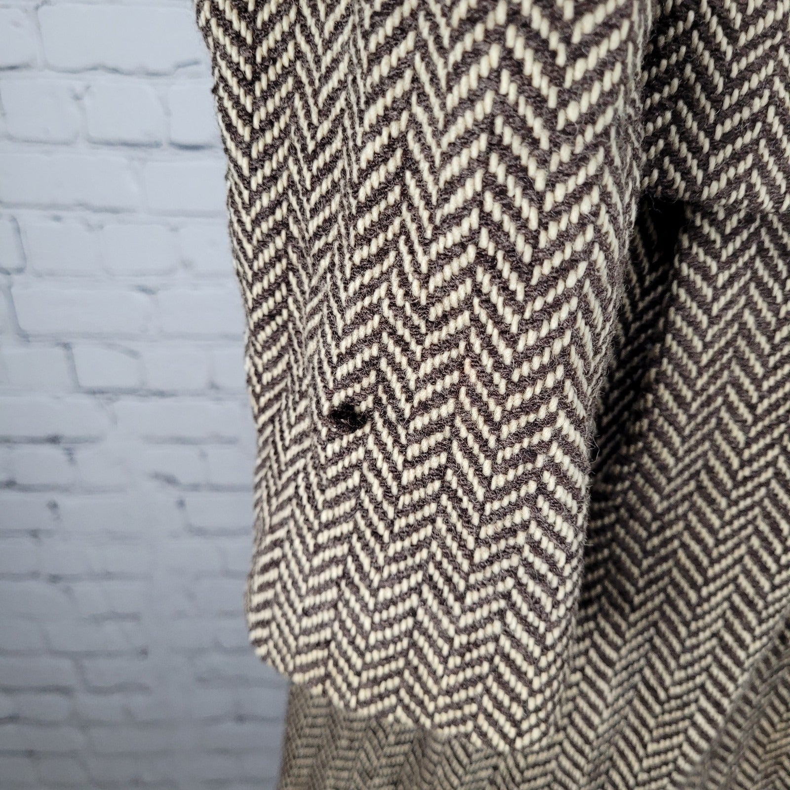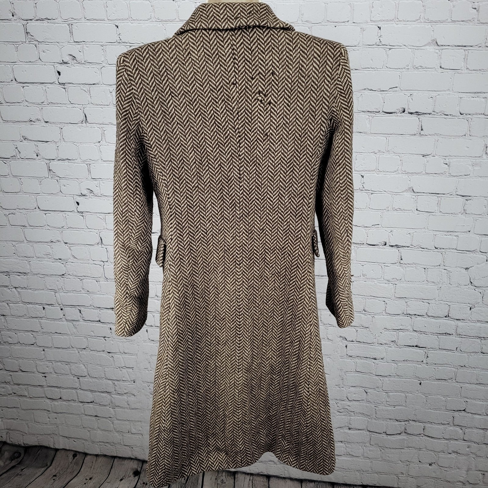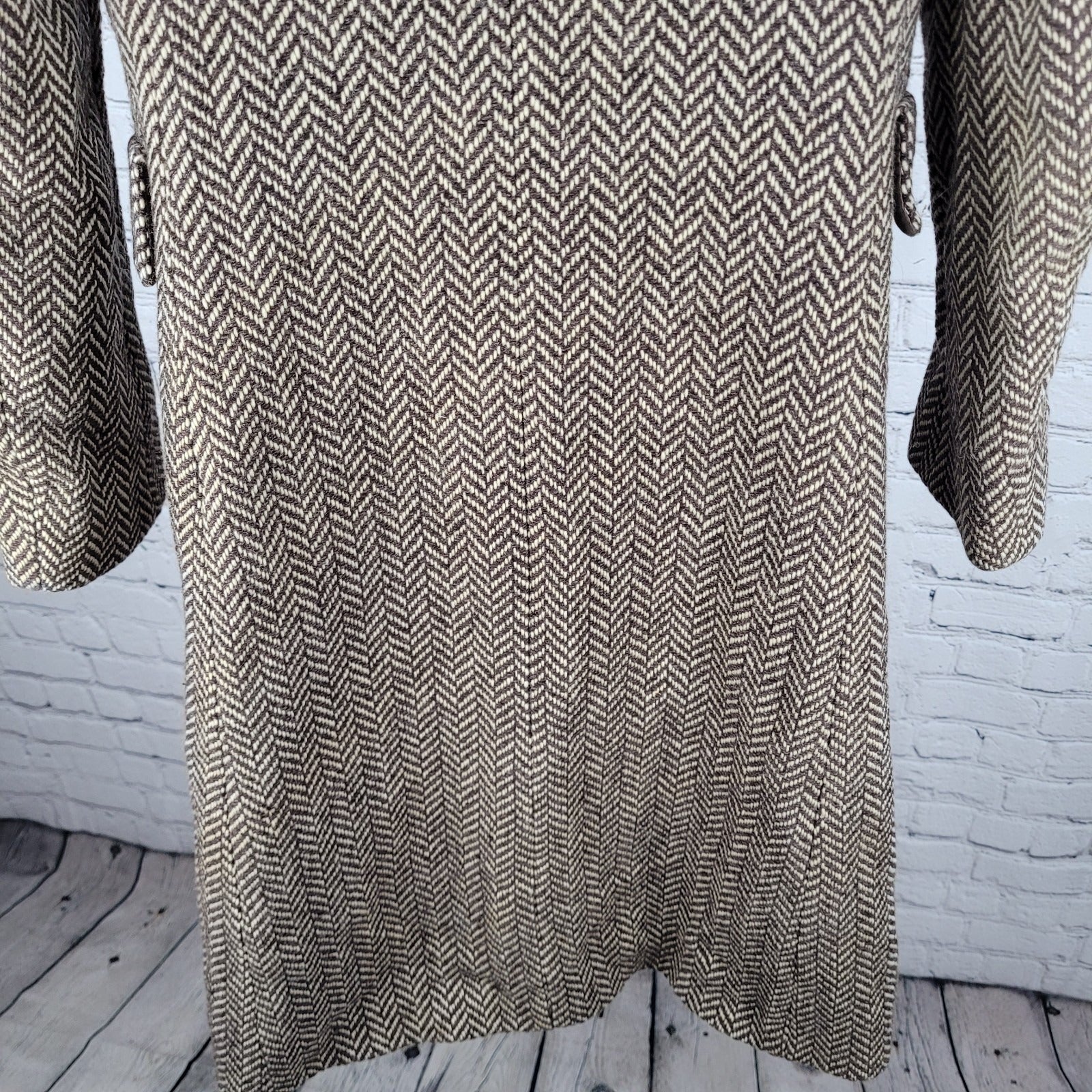 VTG Michael Kors Brown Wool Blend Herringbone Lined Pea Coat Italy Made Size 6